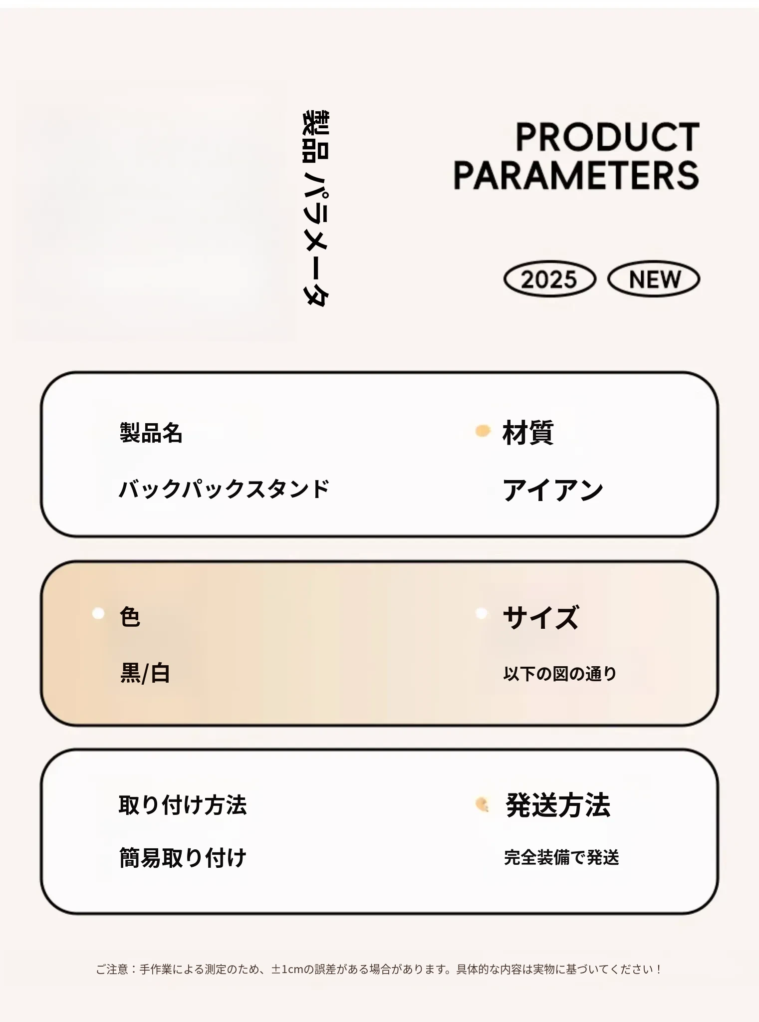 クリームホワイト - 中サイズ 幅25cm【カーボンスチール素材/超強耐荷重】