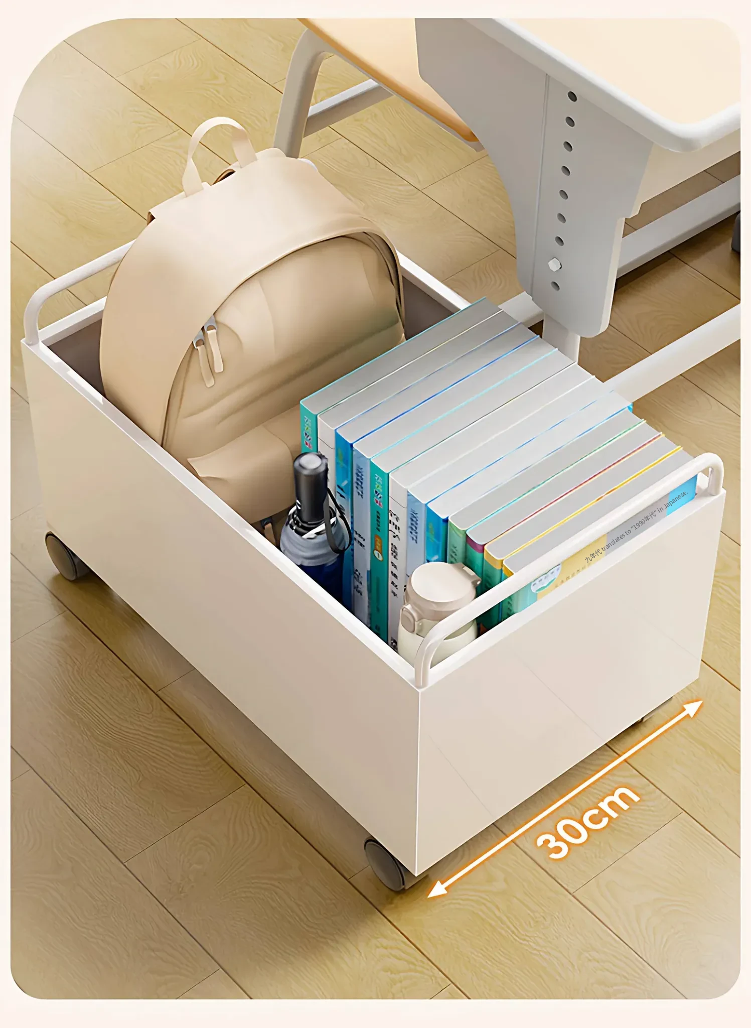 学生教室必备!多功能大容量书本收纳箱,轻松整理书籍,带滑轮设计,移动更方便,桌下完美收纳,助力学习空间整洁有序!