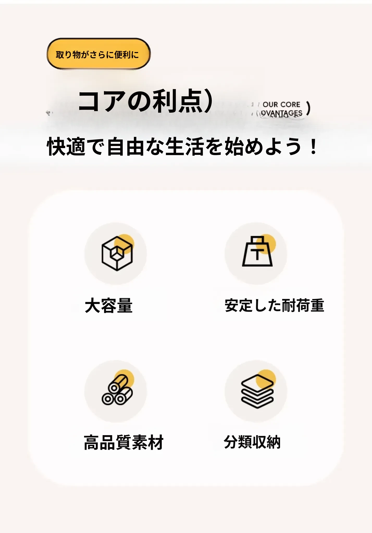 クリームホワイト - 超大サイズ 幅30cm【カーボンスチール素材/超強耐荷重】