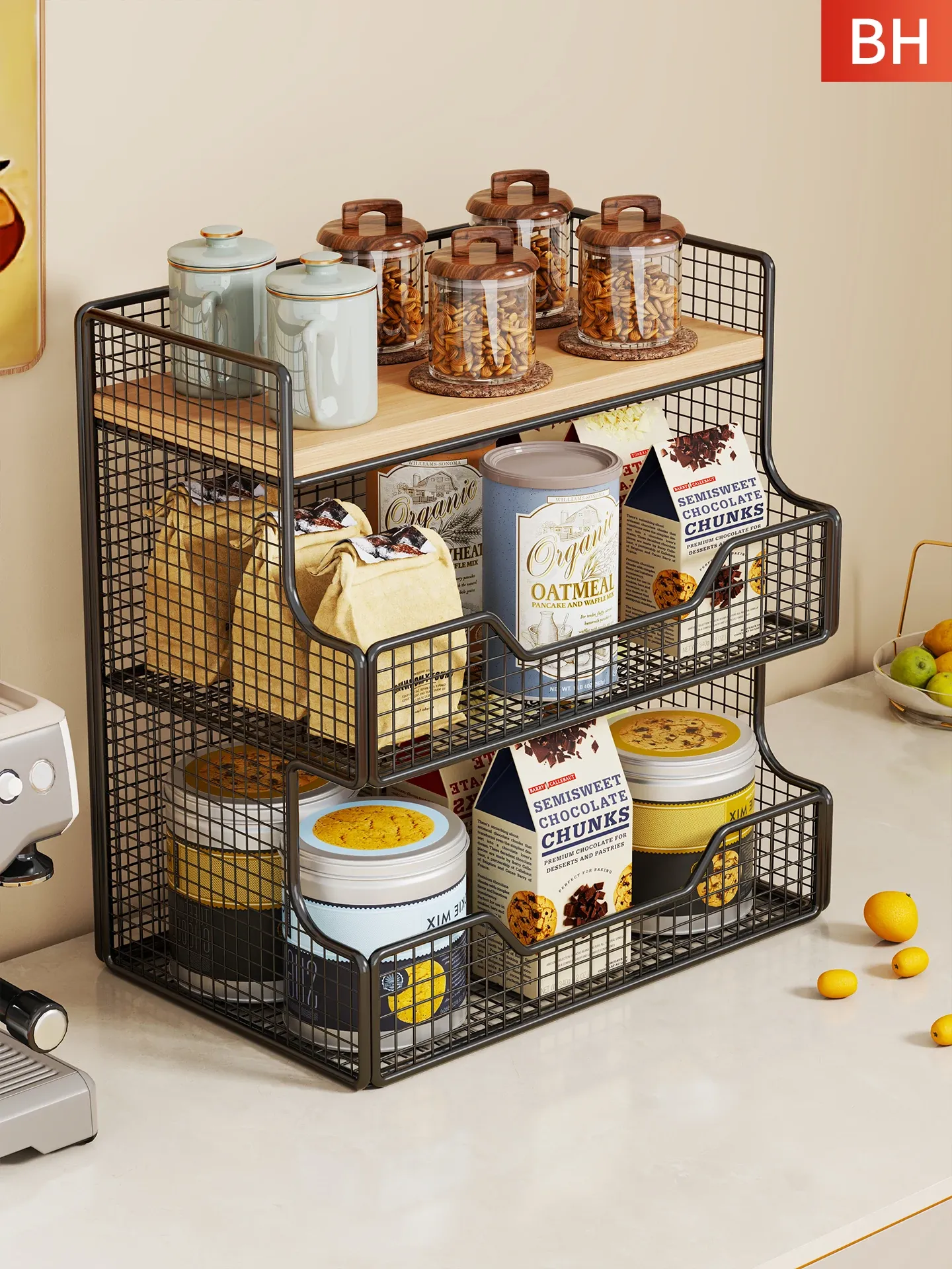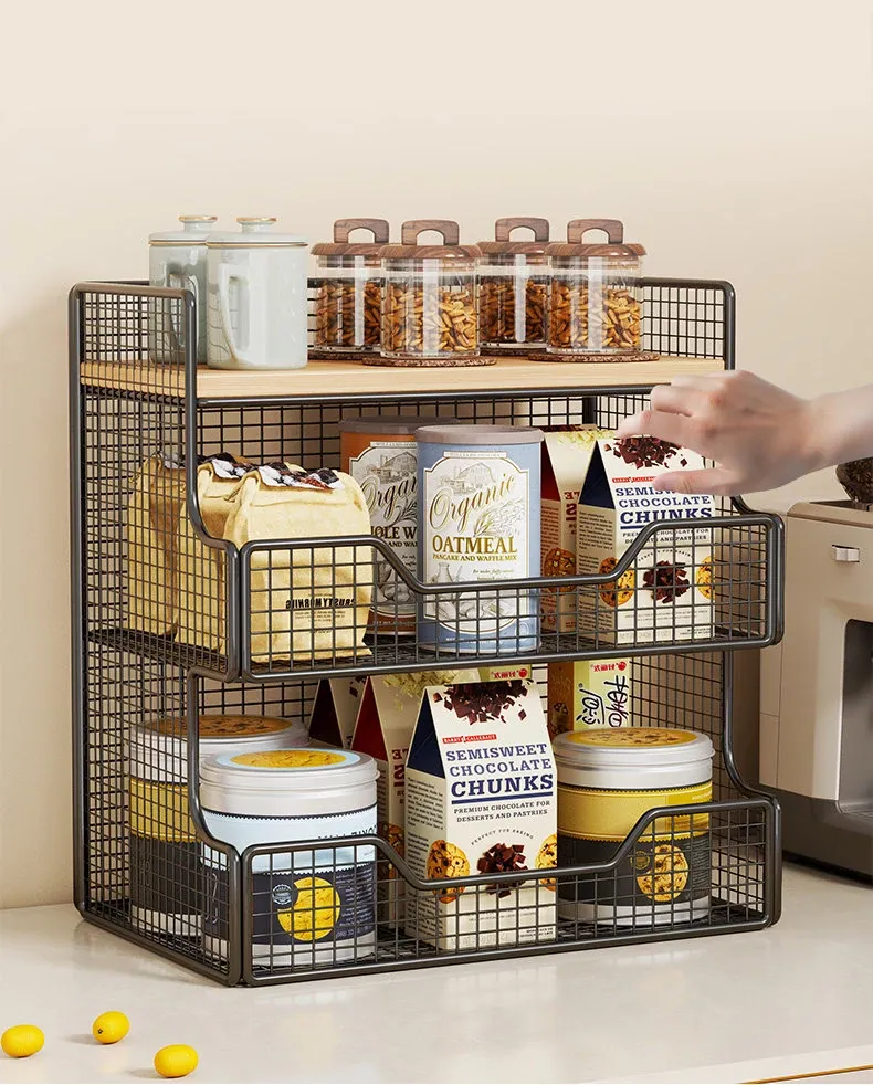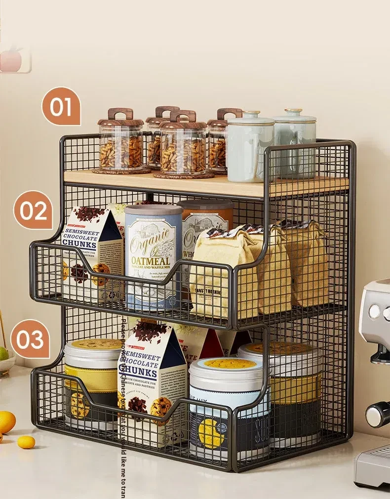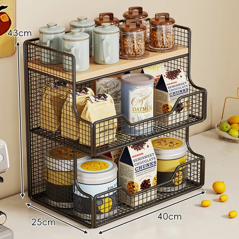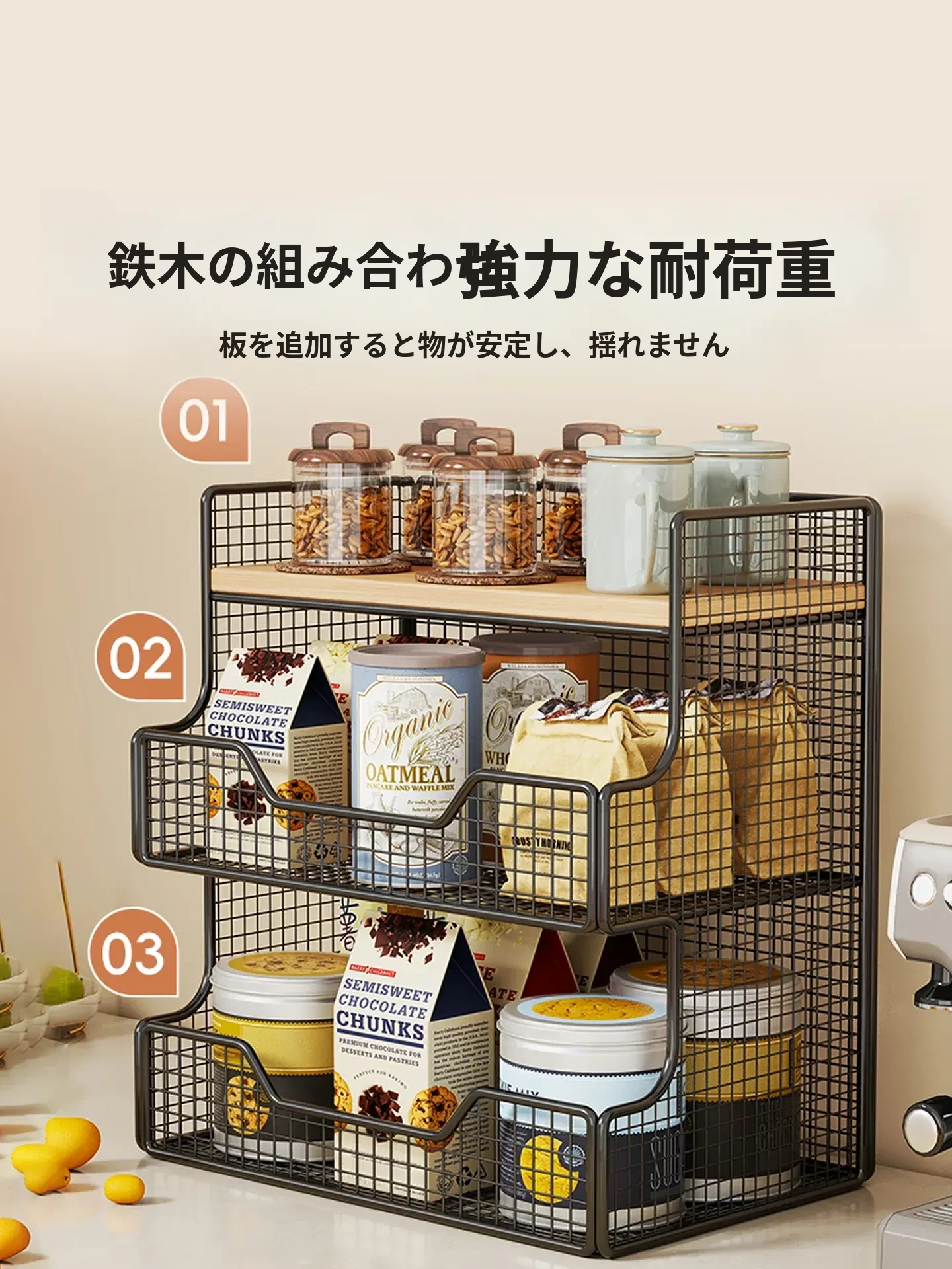 多機能デスクオーガナイザー - カップやスナックを美しく整理!キッチンやダイニングテーブルに最適な層状収納ラック。スペースを有効活用し、毎日の生活をもっとスッキリ!