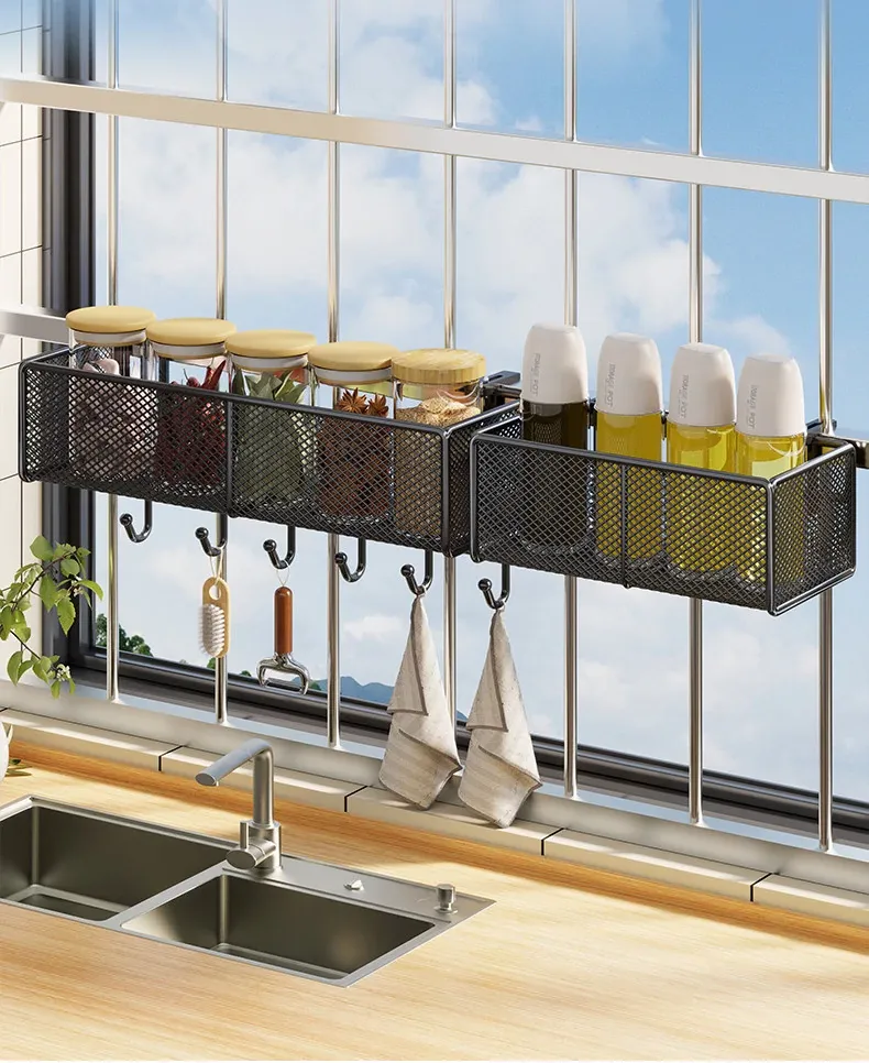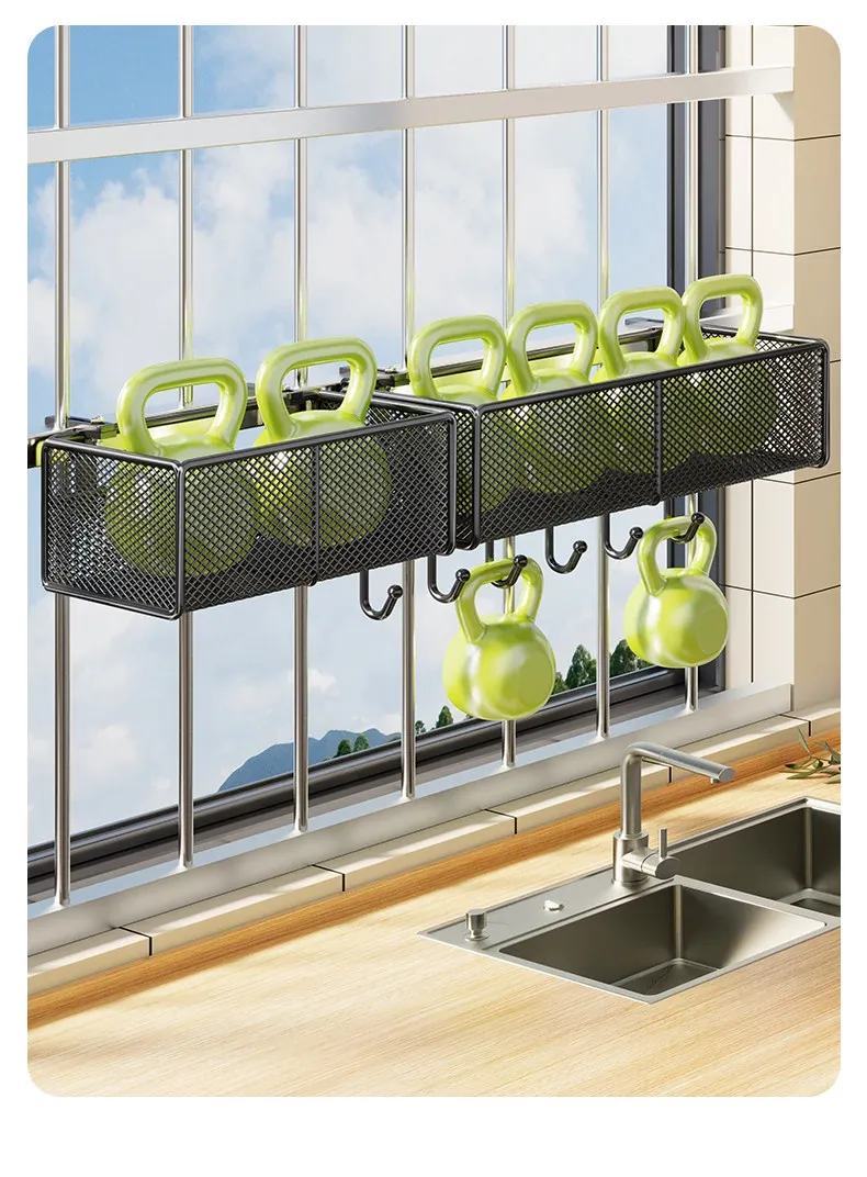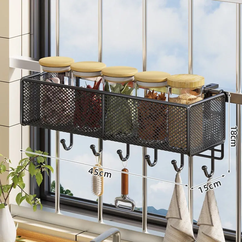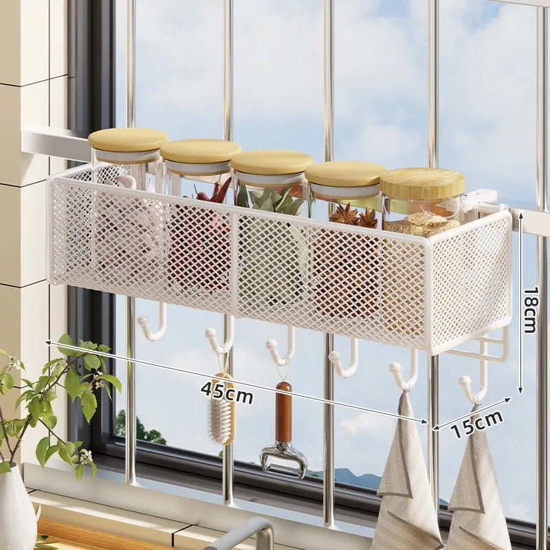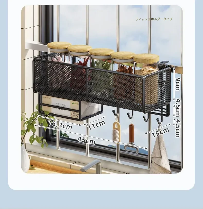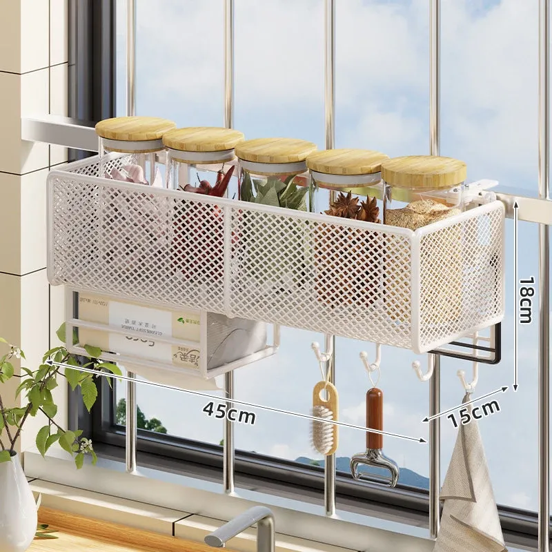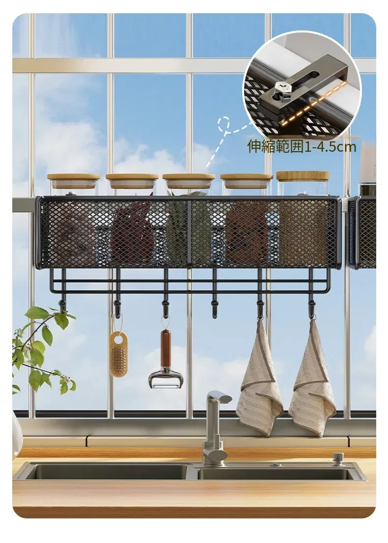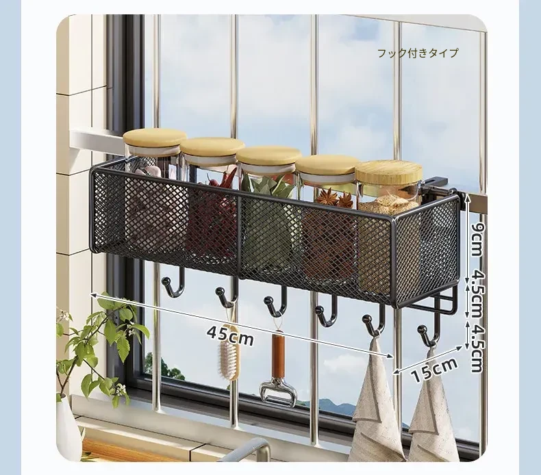 窓辺の空間を有効活用!多機能キッチン収納ラック - 穴あけ不要で簡単取り付け、大きなニンニクや唐辛子をすっきり収納!家庭にぴったりのスタイリッシュなアイテムです。