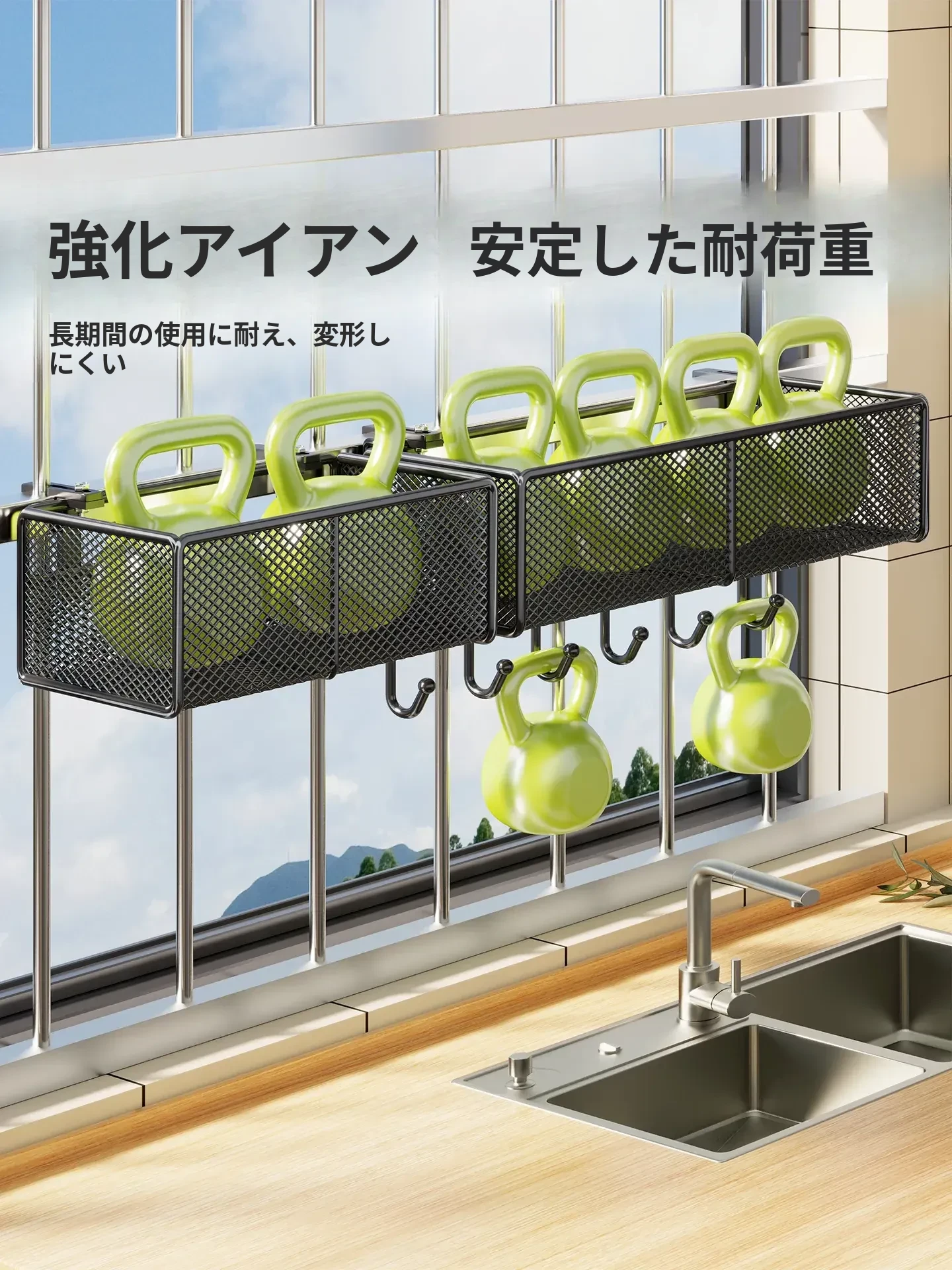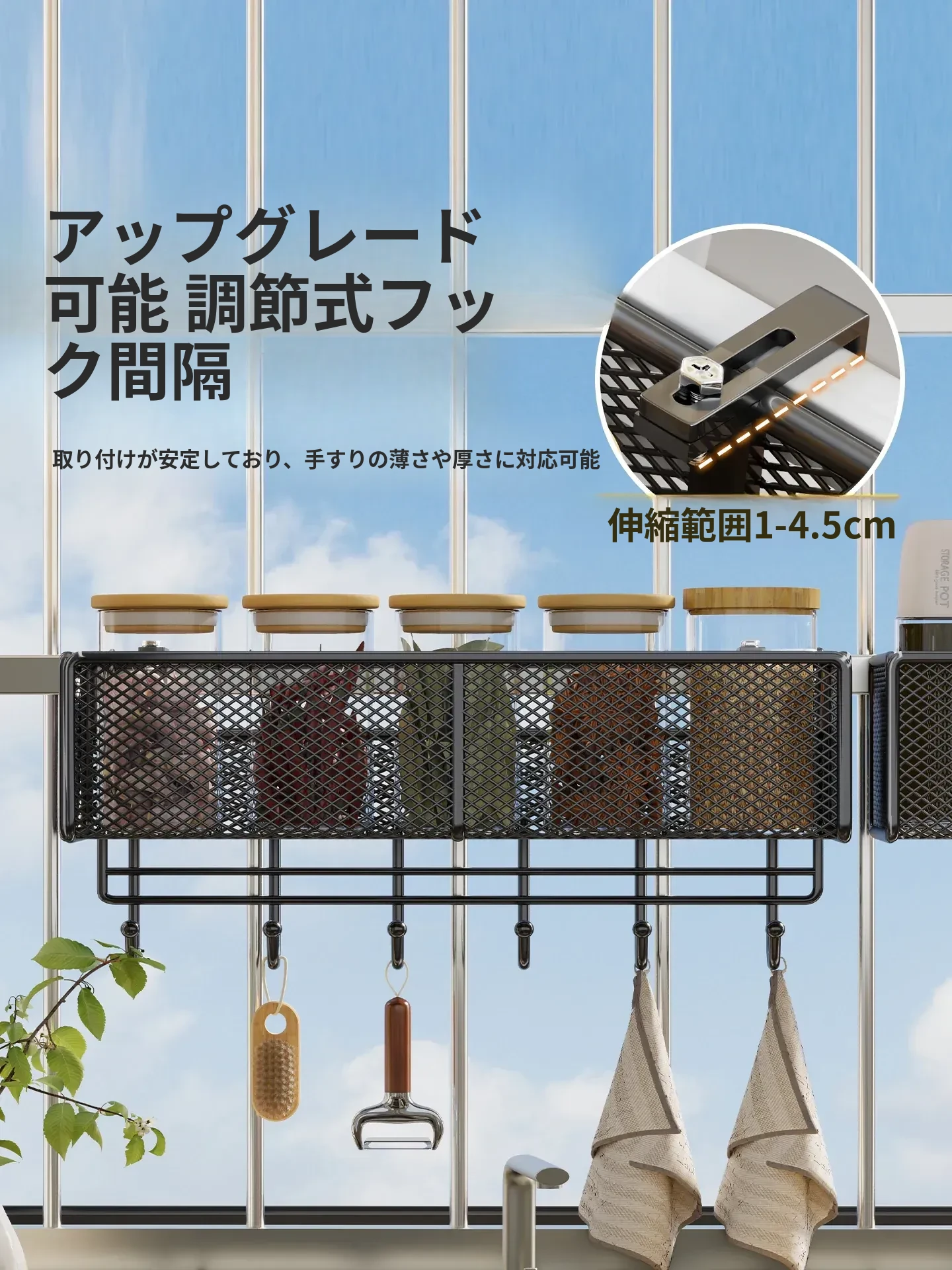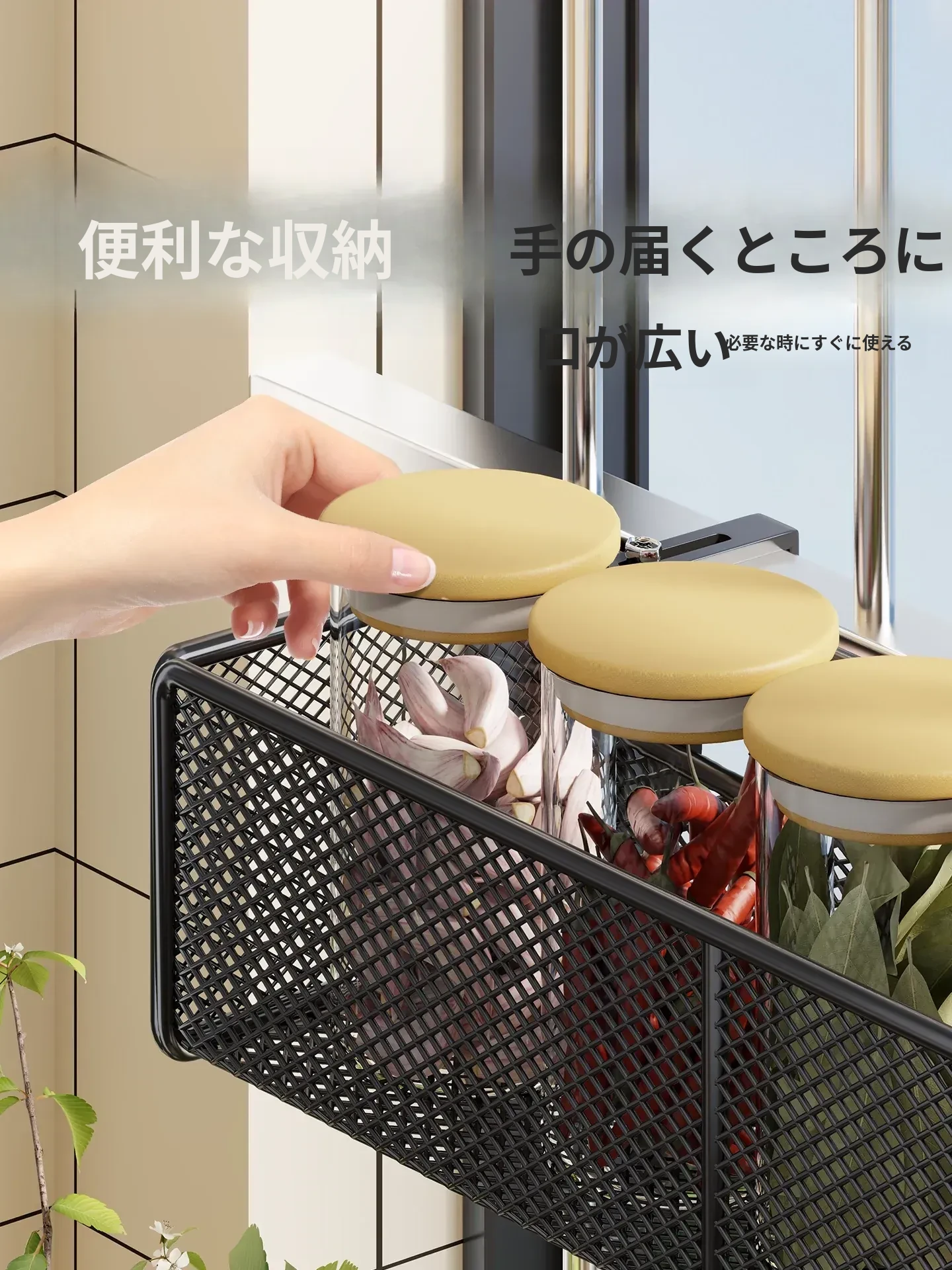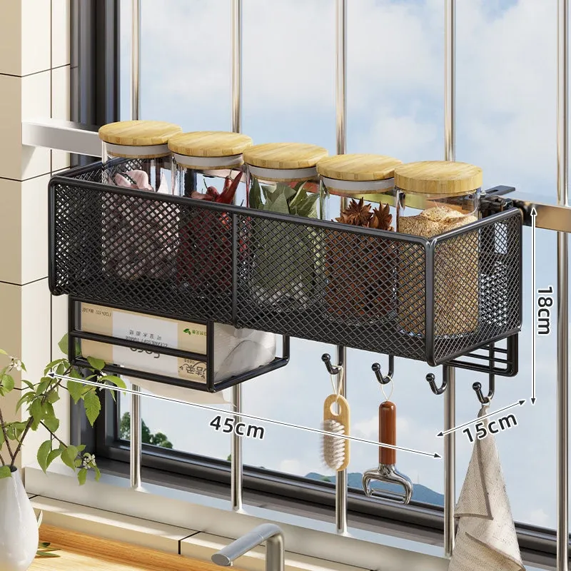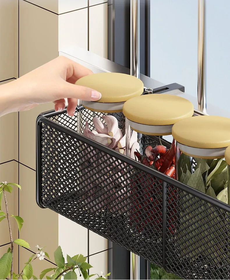 窓辺の空間を有効活用!多機能キッチン収納ラック - 穴あけ不要で簡単取り付け、大きなニンニクや唐辛子をすっきり収納!家庭にぴったりのスタイリッシュなアイテムです。