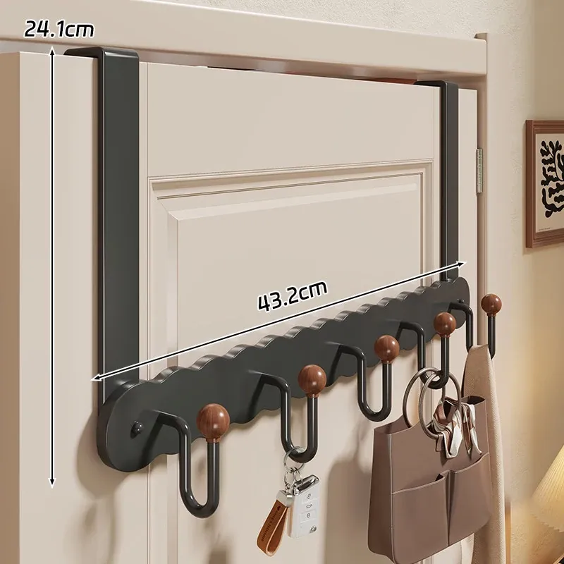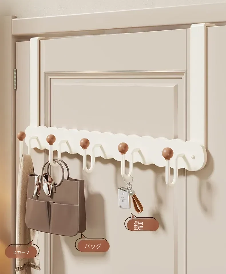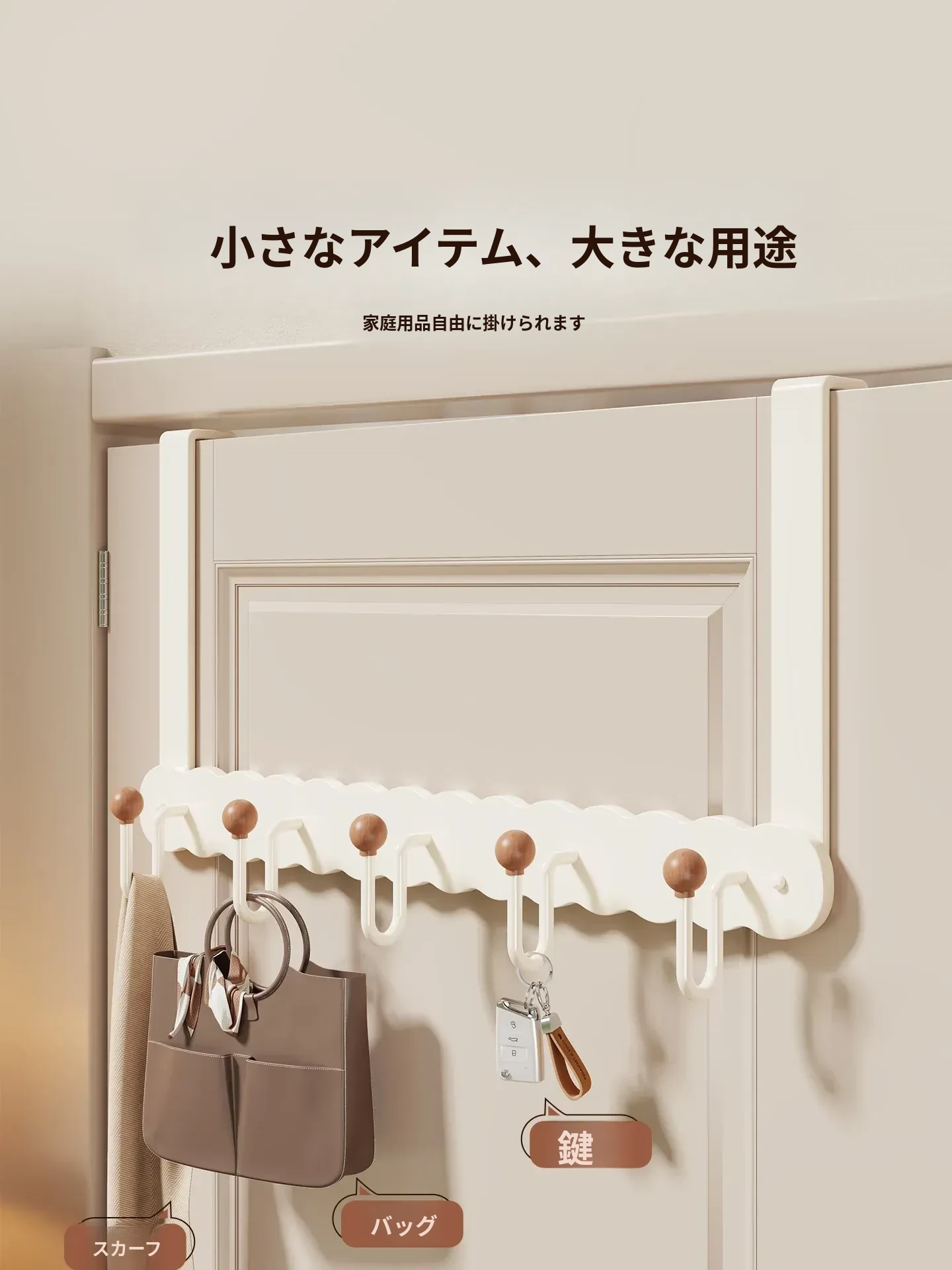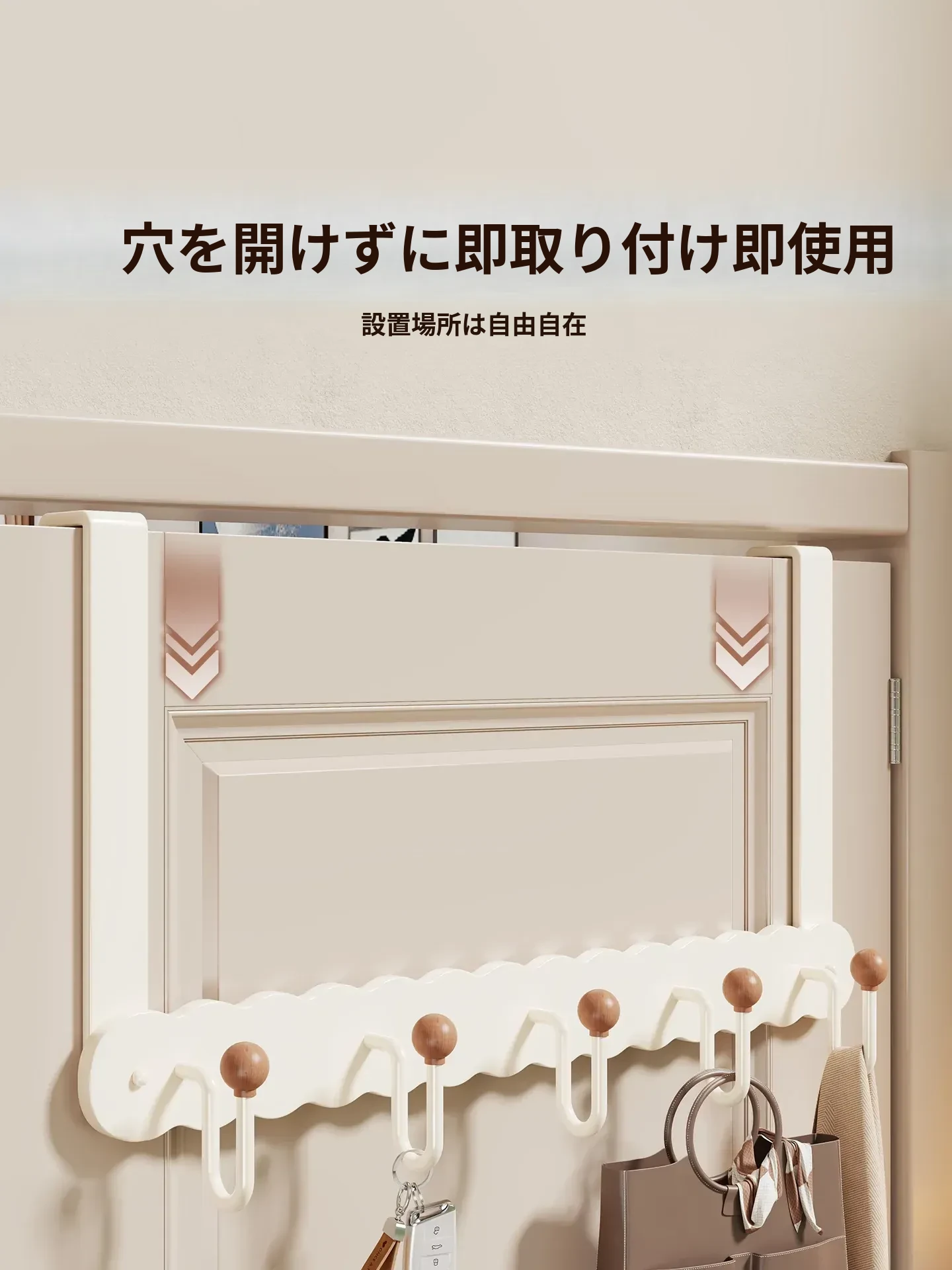 ドア裏フック付き多機能コートハンガー - 簡単取り付け、穴あけ不要!玄関やリビングに最適な壁掛け収納ラックで、スッキリとした空間を実現。あなたのスタイルに合わせて、すぐに使える便利アイテムです!