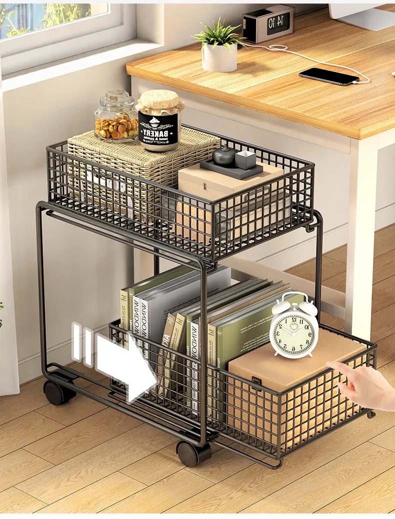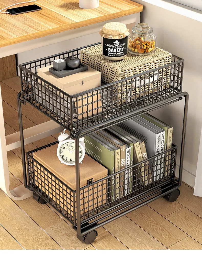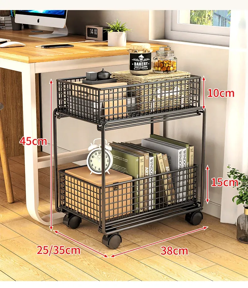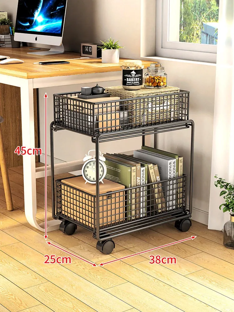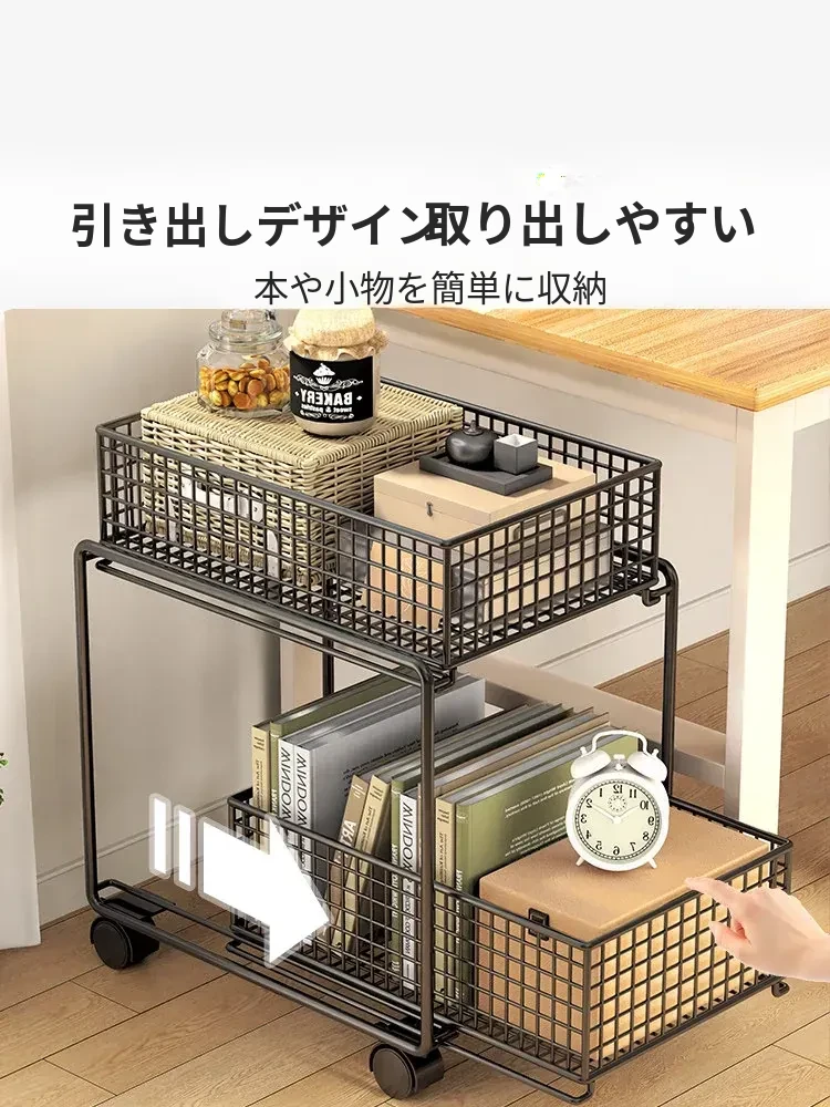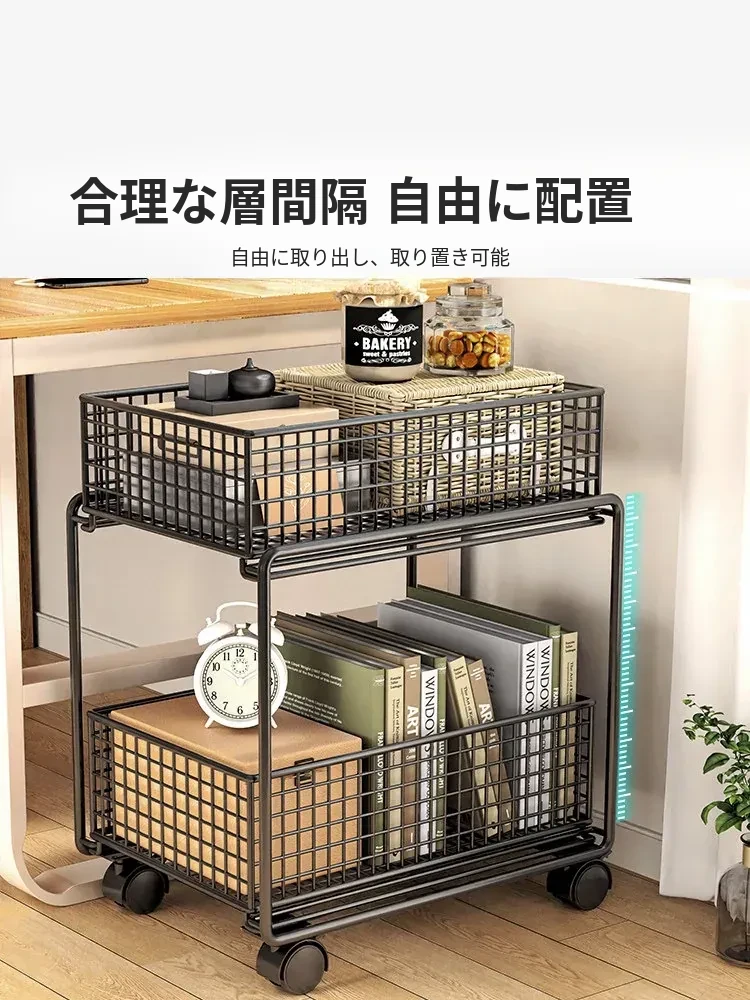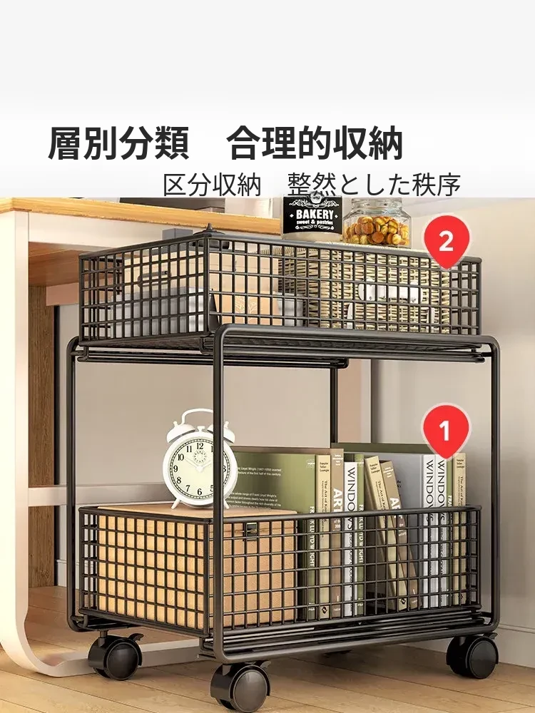 多機能移動書棚 - 本やお菓子をすっきり整理!フロアスタンドタイプの多層収納カートで、デスクの横にもぴったり。あなたの空間を美しく整え、便利さをプラス!
