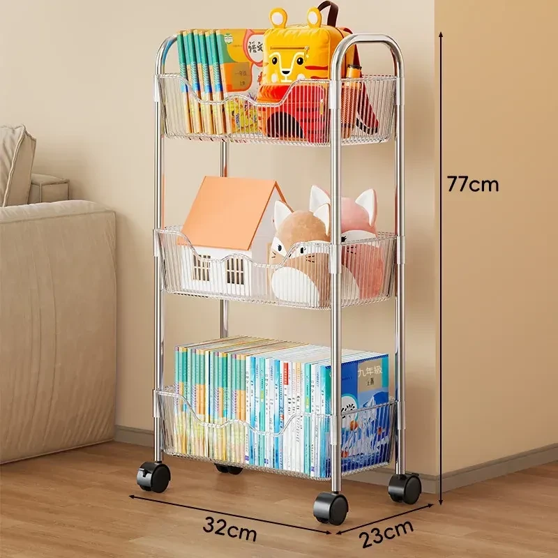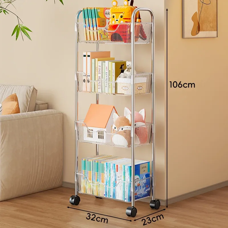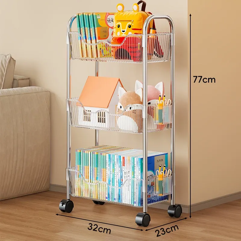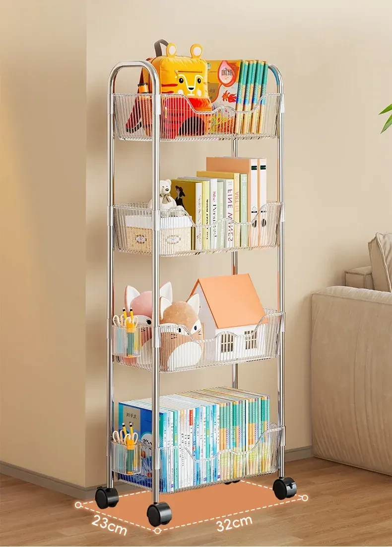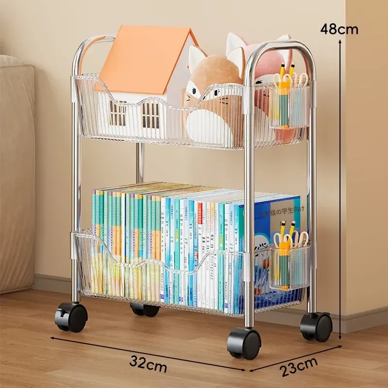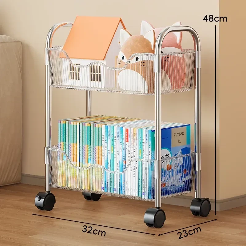 移動式書籍・スナック収納ラック!デスク下にピッタリの多層アクリルブックシェルフ。おしゃれで便利!家でもオフィスでも大活躍!