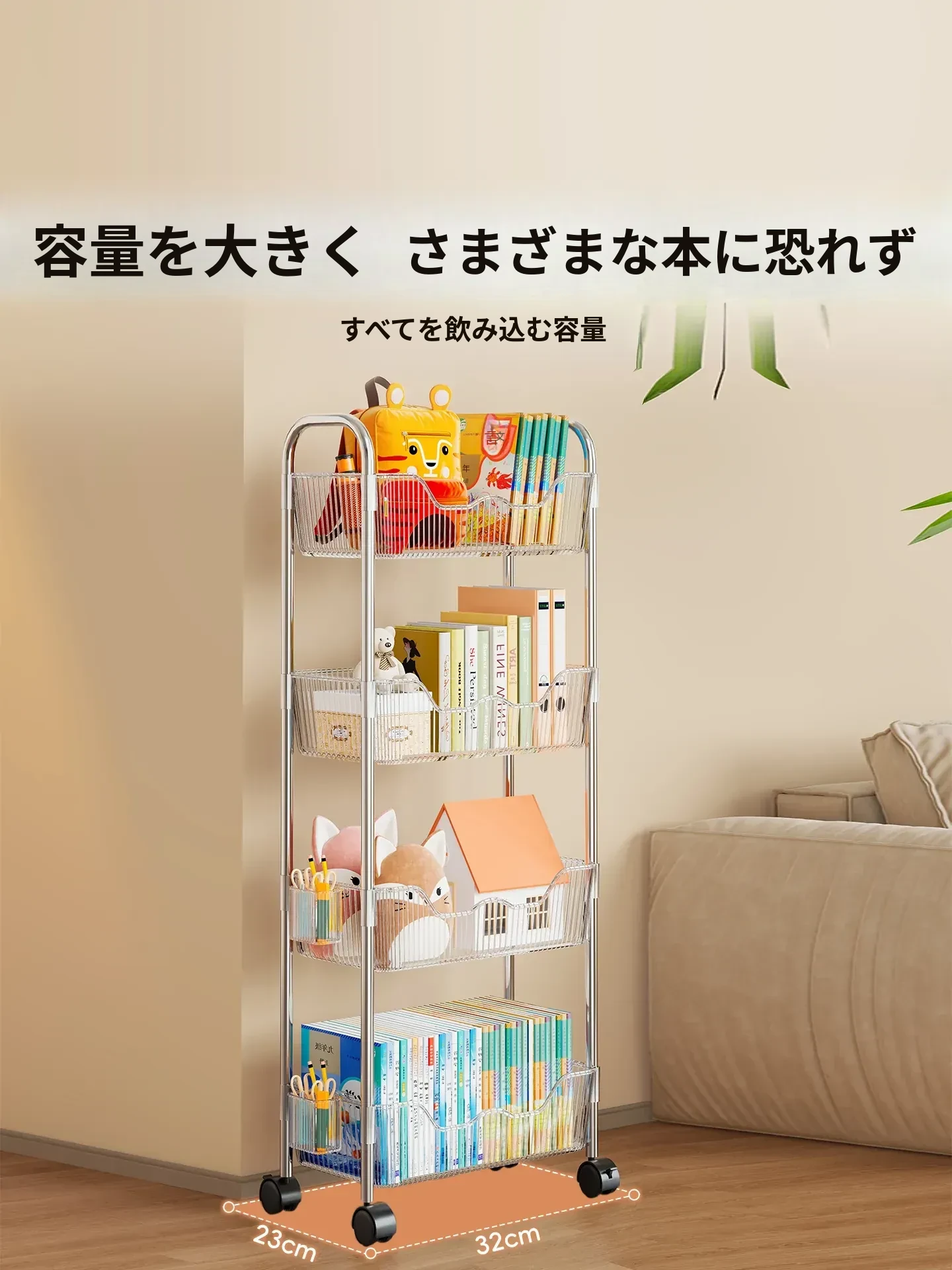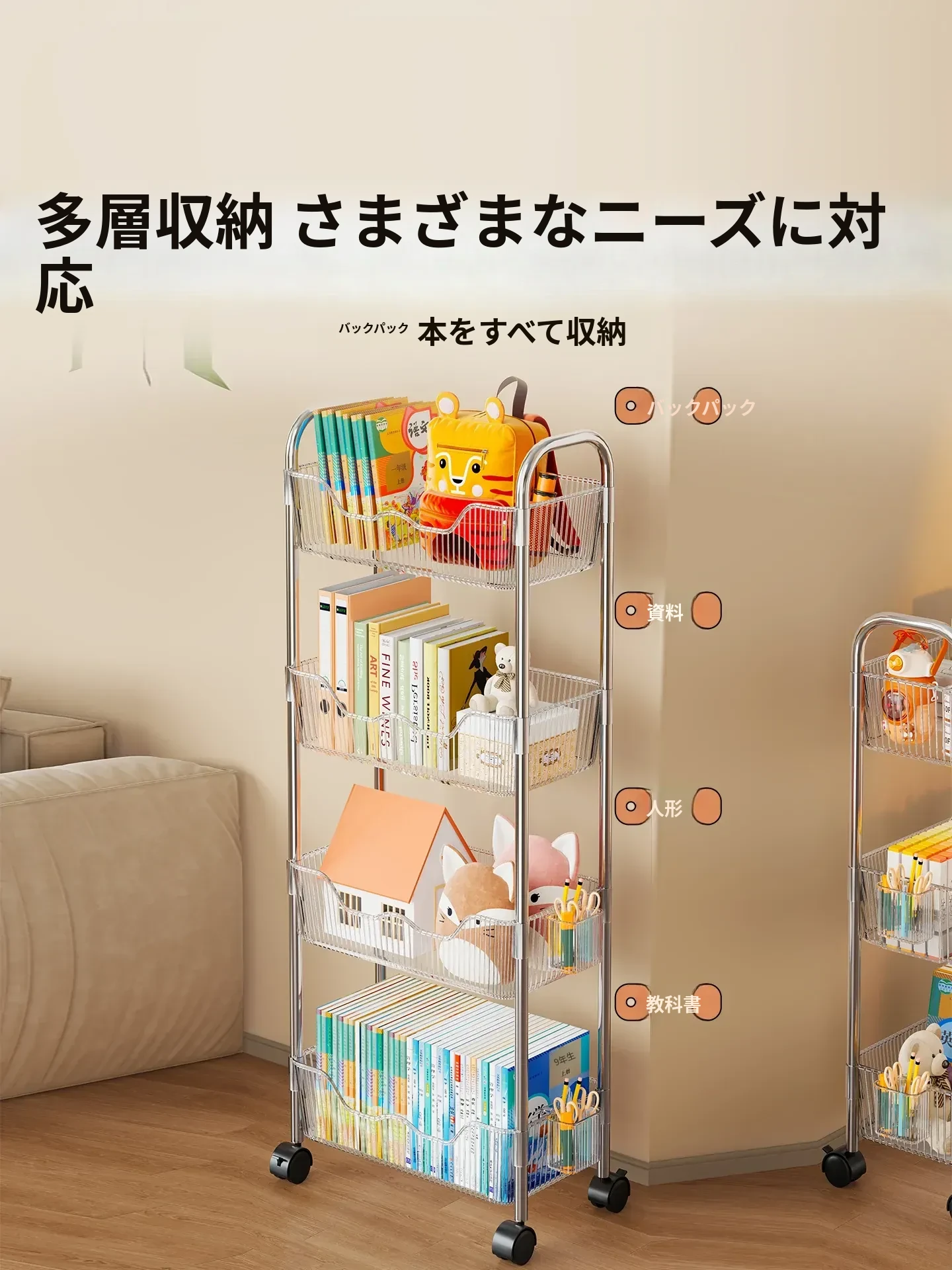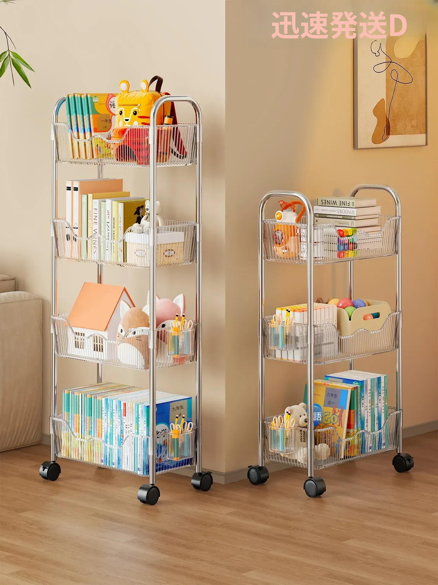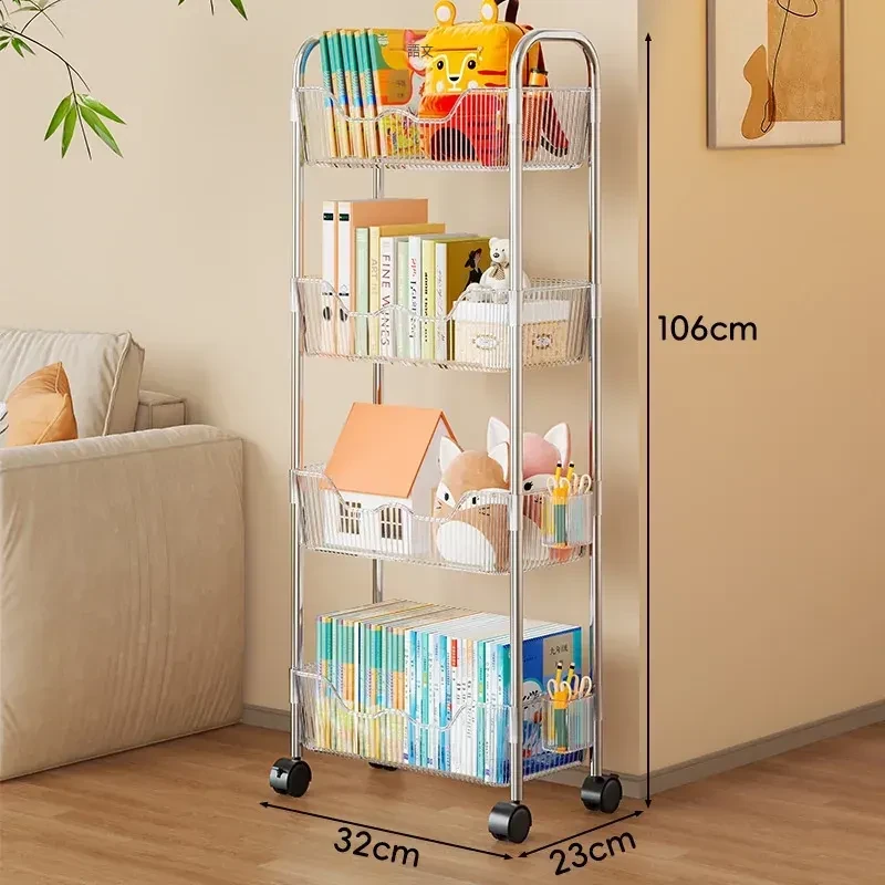 移動式書籍・スナック収納ラック!デスク下にピッタリの多層アクリルブックシェルフ。おしゃれで便利!家でもオフィスでも大活躍!