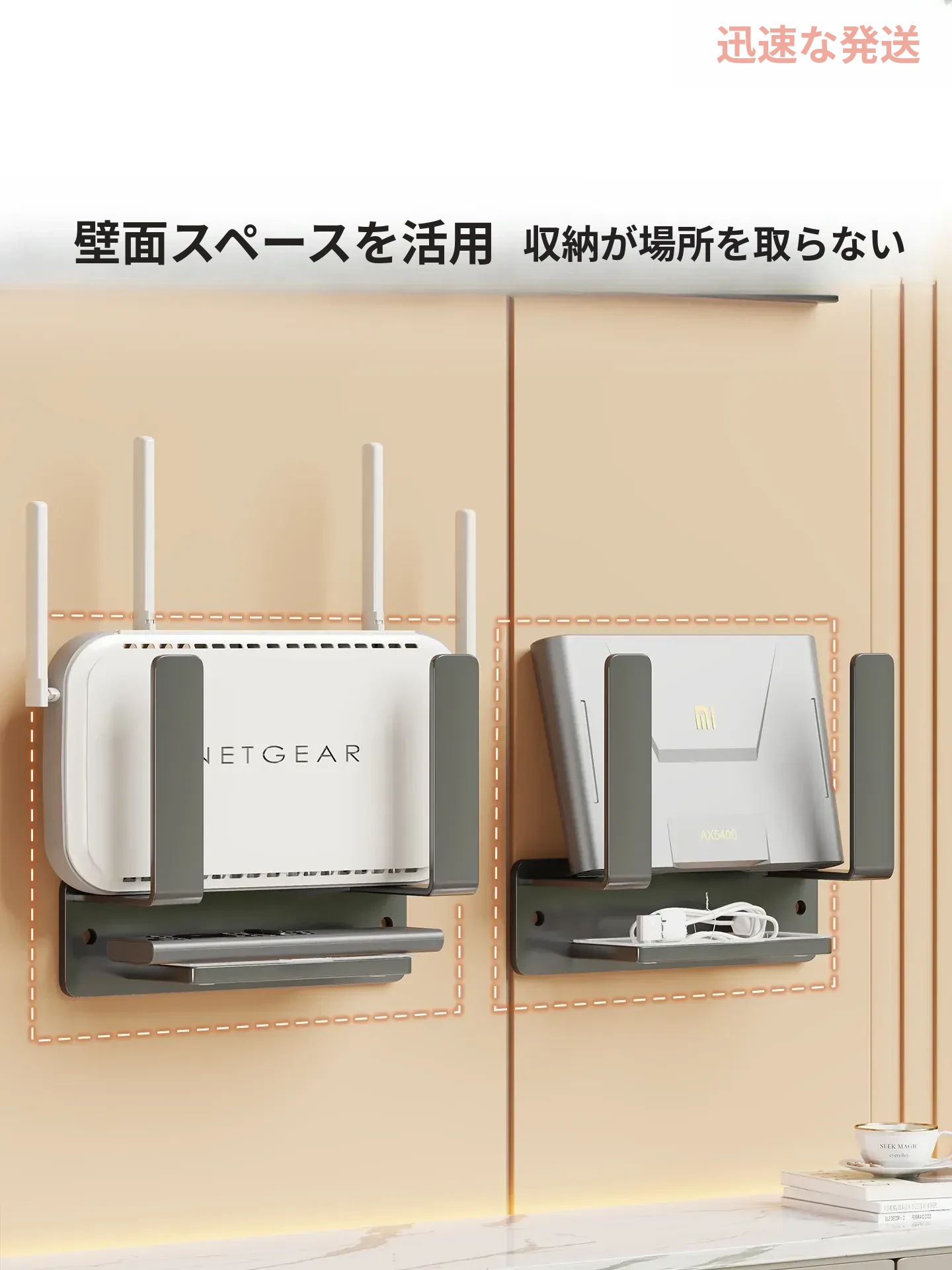 ルーター収納スタンド 光ファイバー用デスクトップ多機能シェルフ 家庭用壁掛け収納ラック - スペースを有効活用し、すっきりとしたデスク環境を実現!