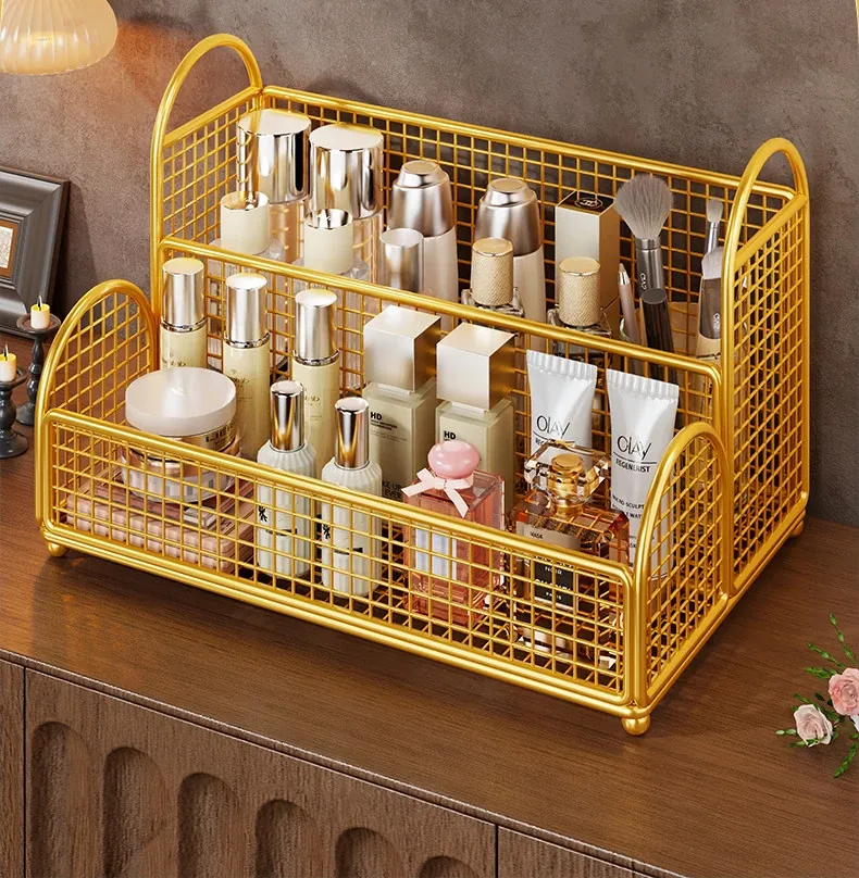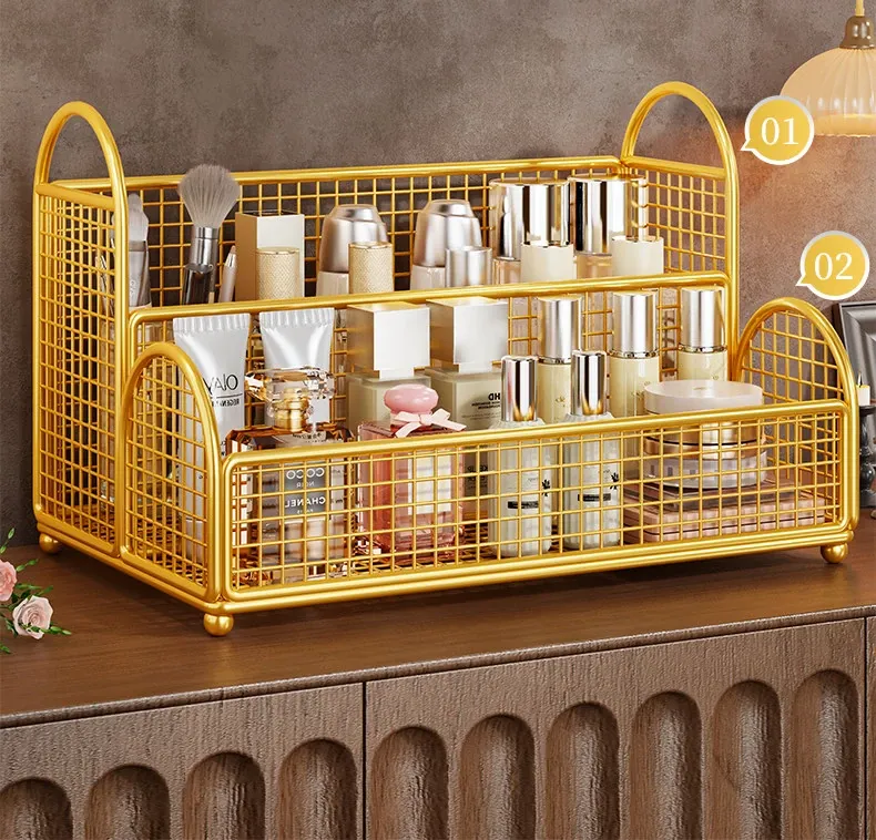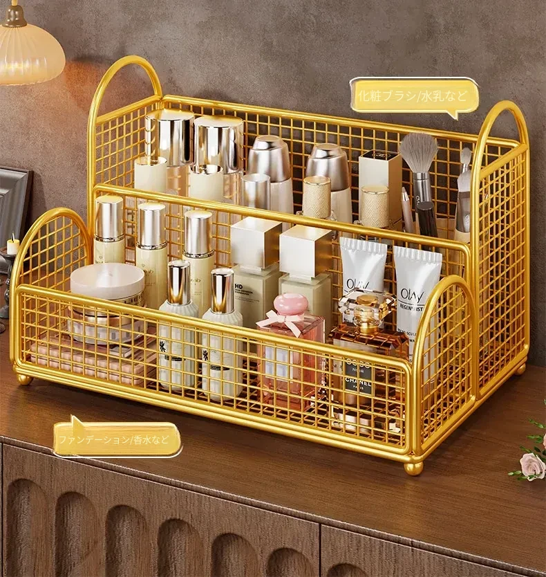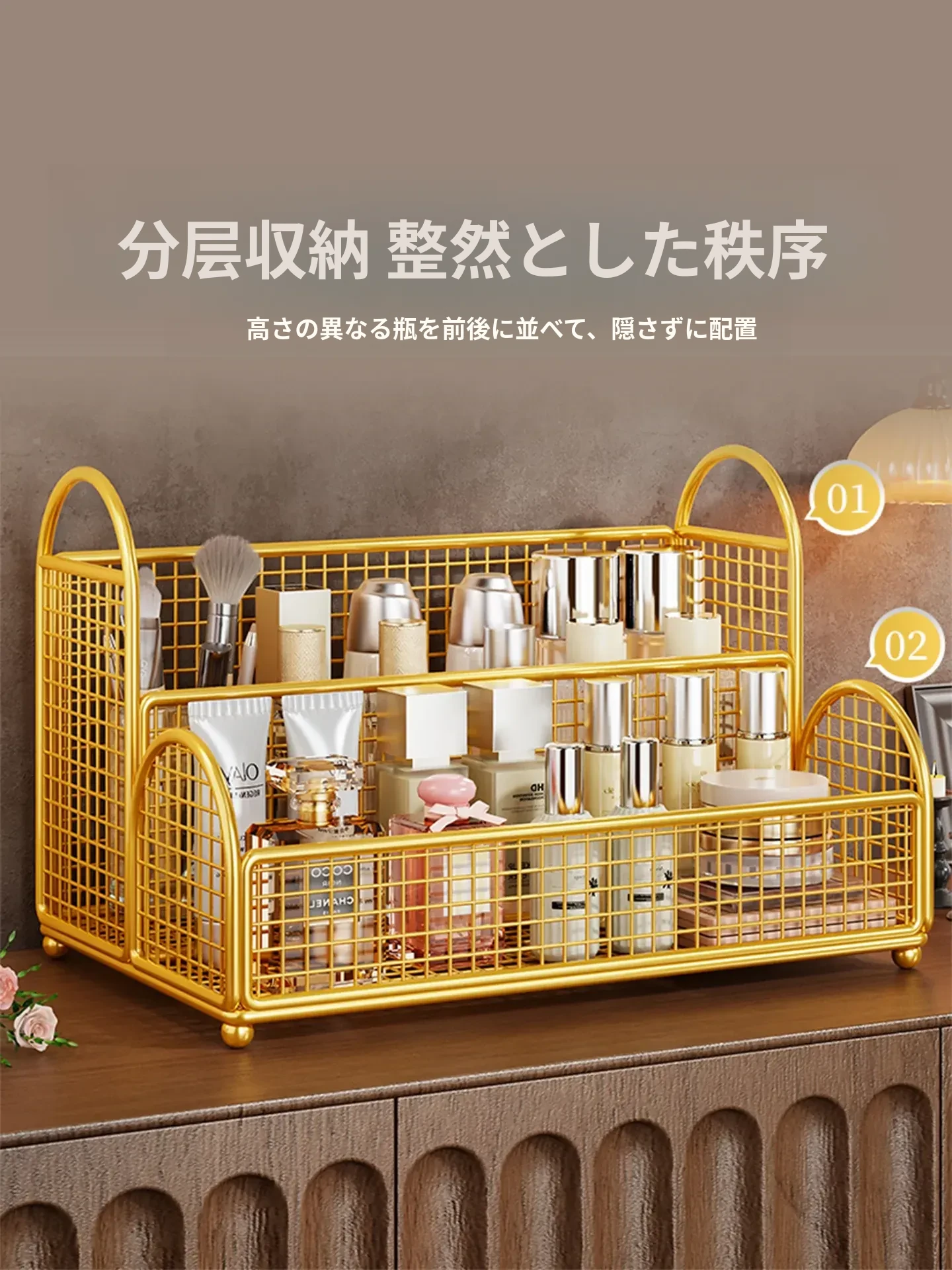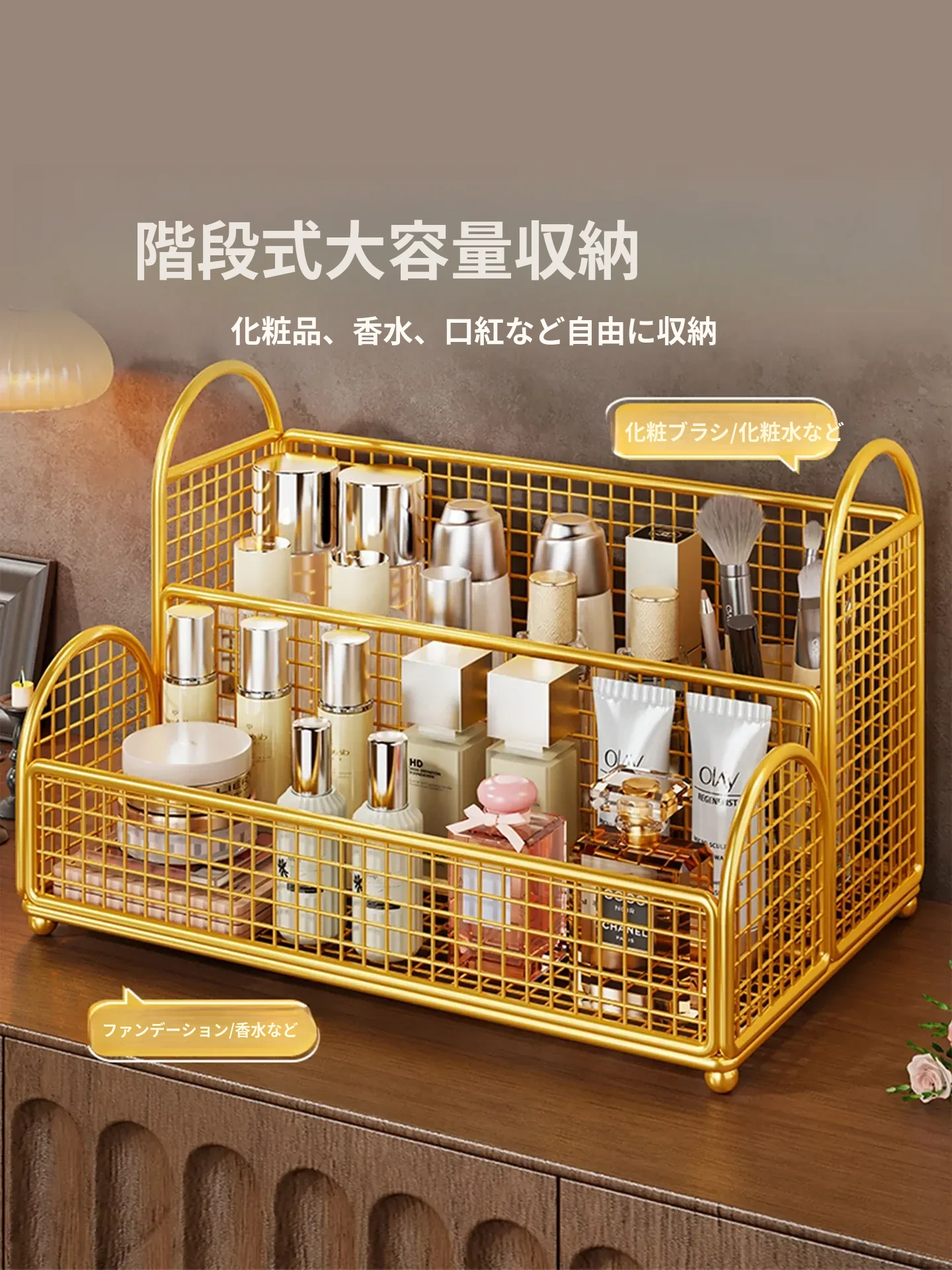 多層化粧品収納ボックス - デスクトップ用メイクアップスタンド!美しいメイクを簡単に整理・展示できる、バスルームやドレッサーに最適なスキンケアアイテムの収納ラックです。