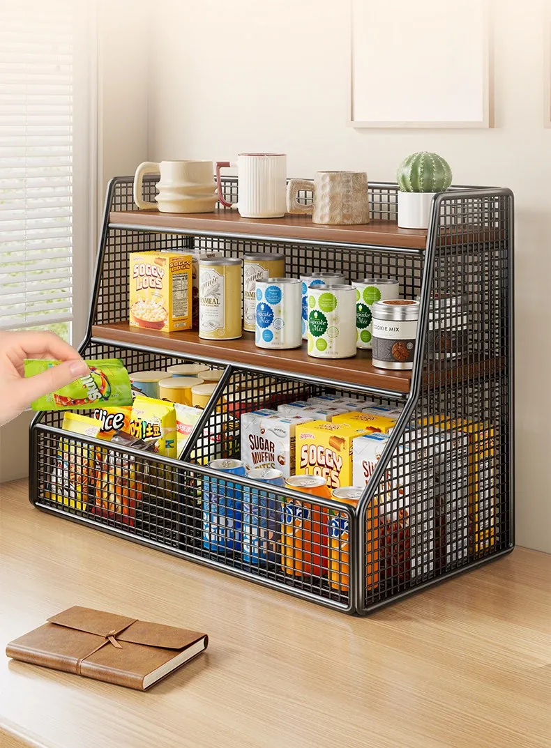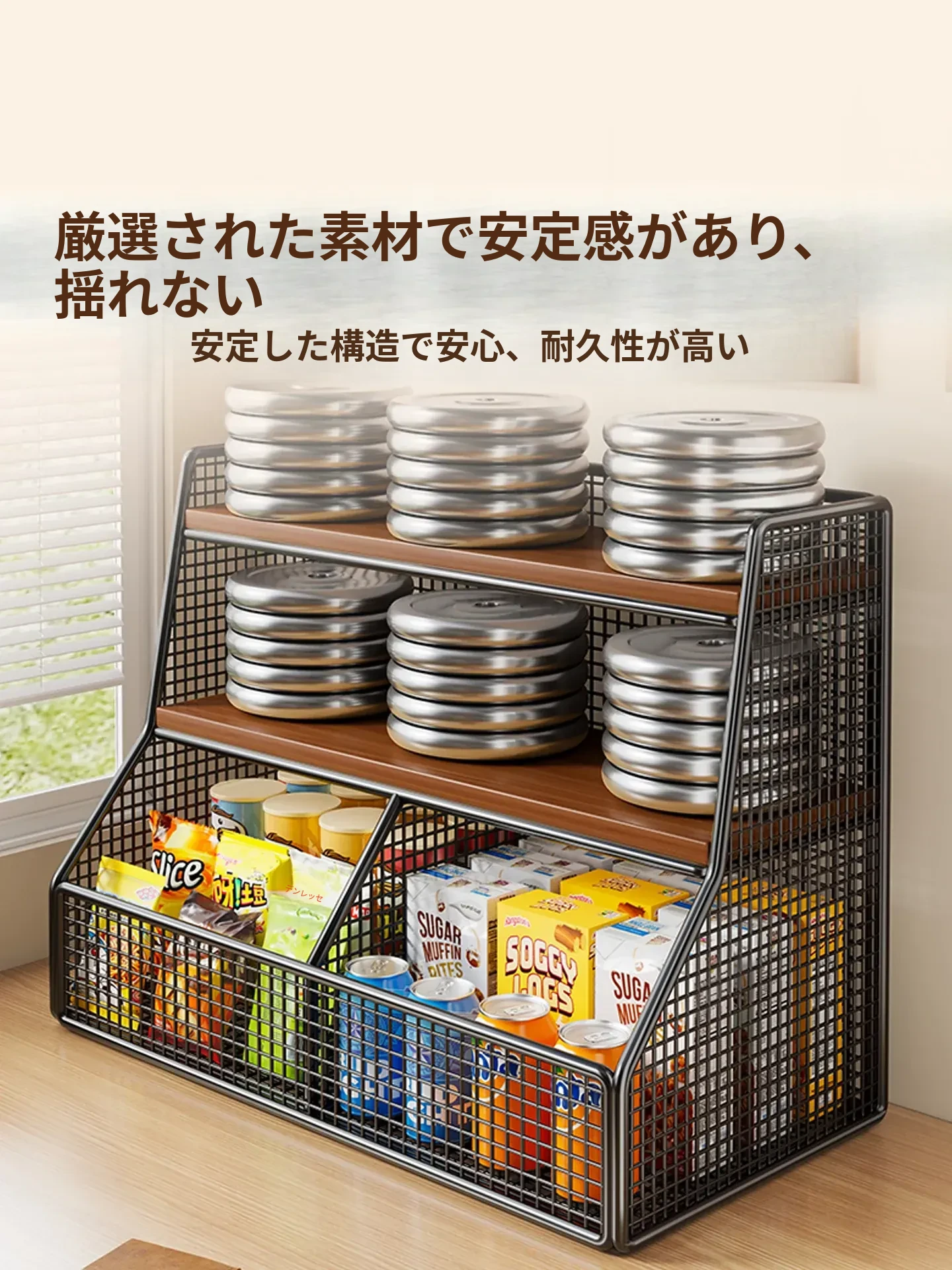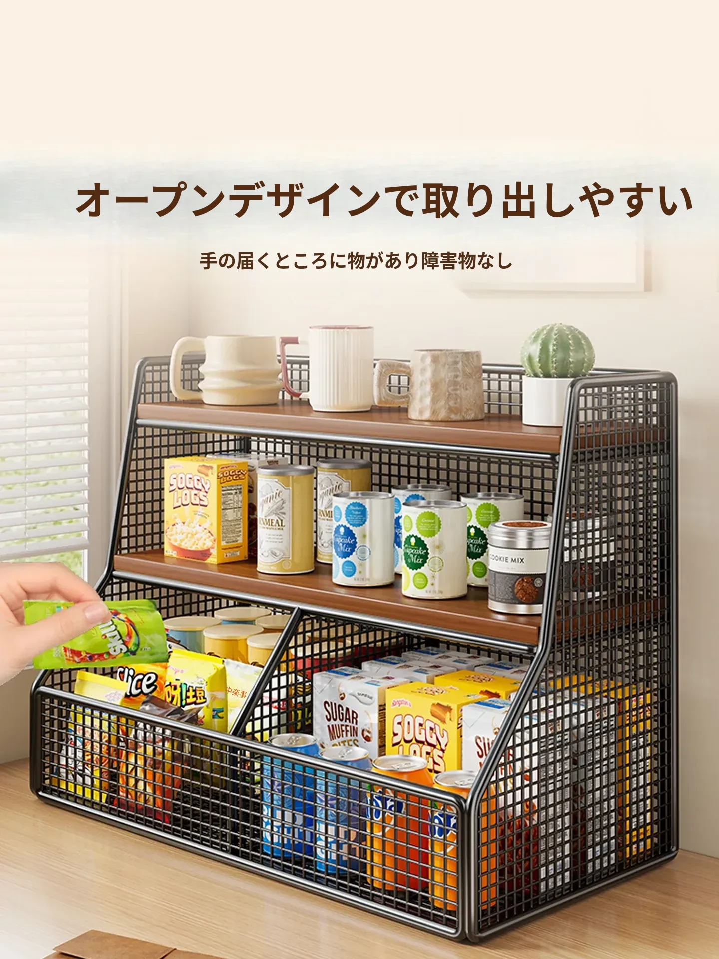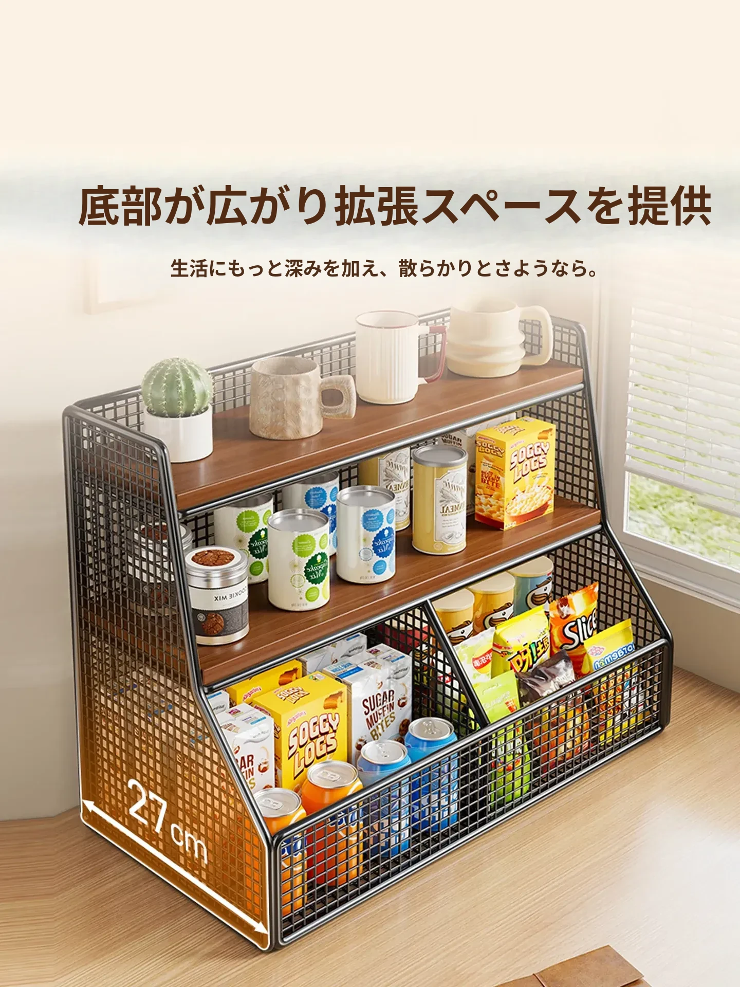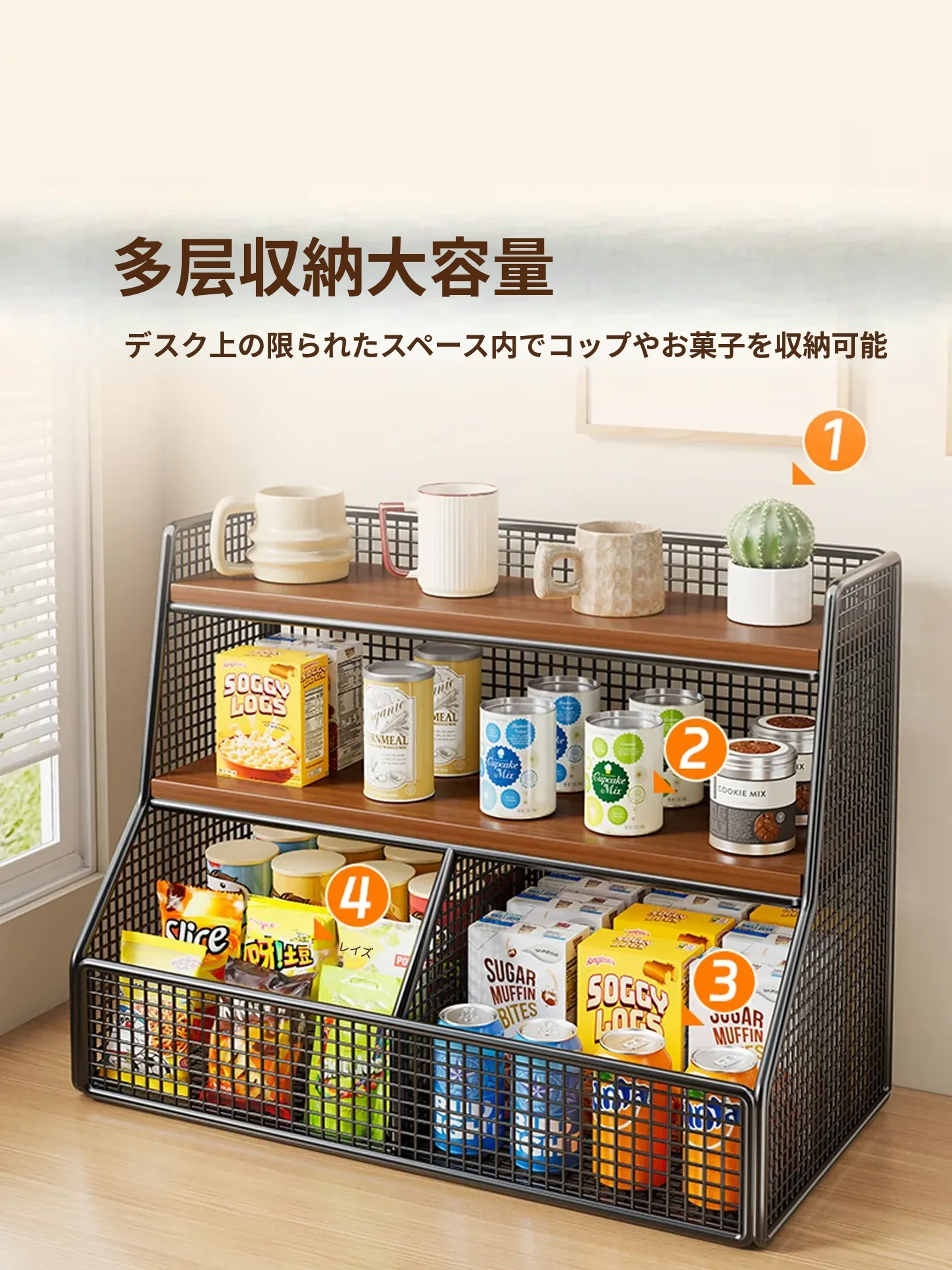 リビングにぴったり!多層式デスク収納ラック - キッチンやダイニングテーブルでのスナックやティーバッグ、水筒の整理に最適!おしゃれで機能的な収納アイテムです。