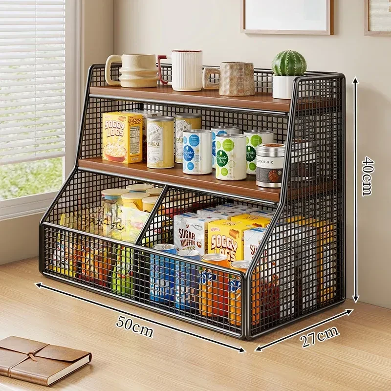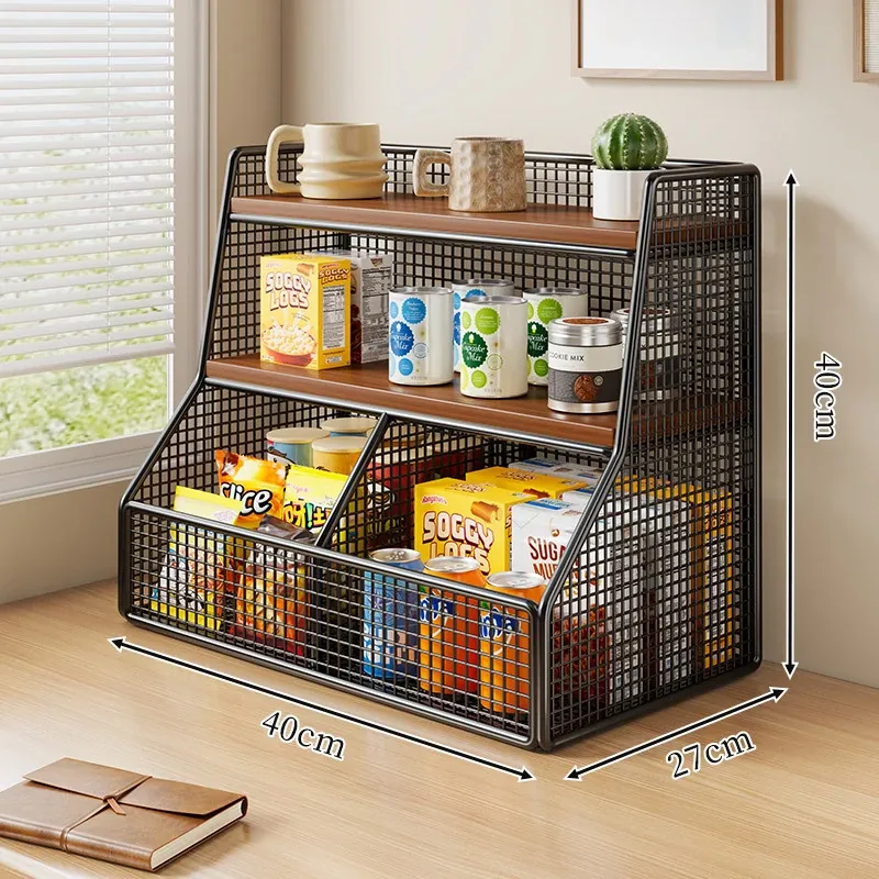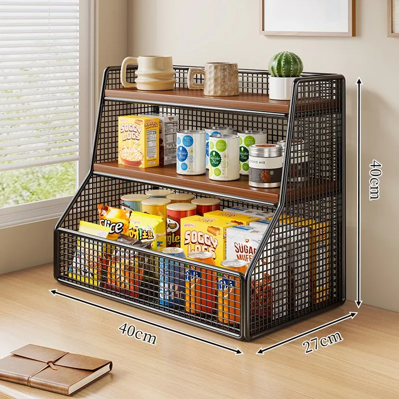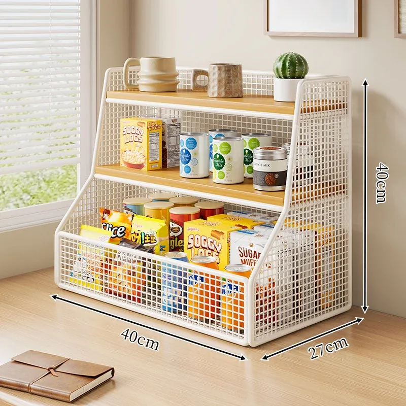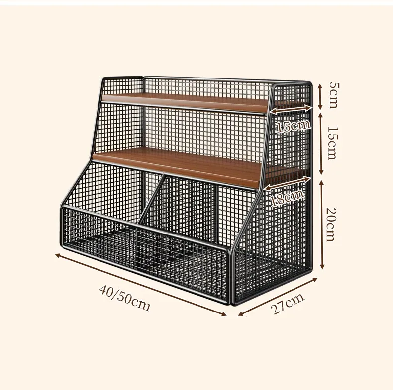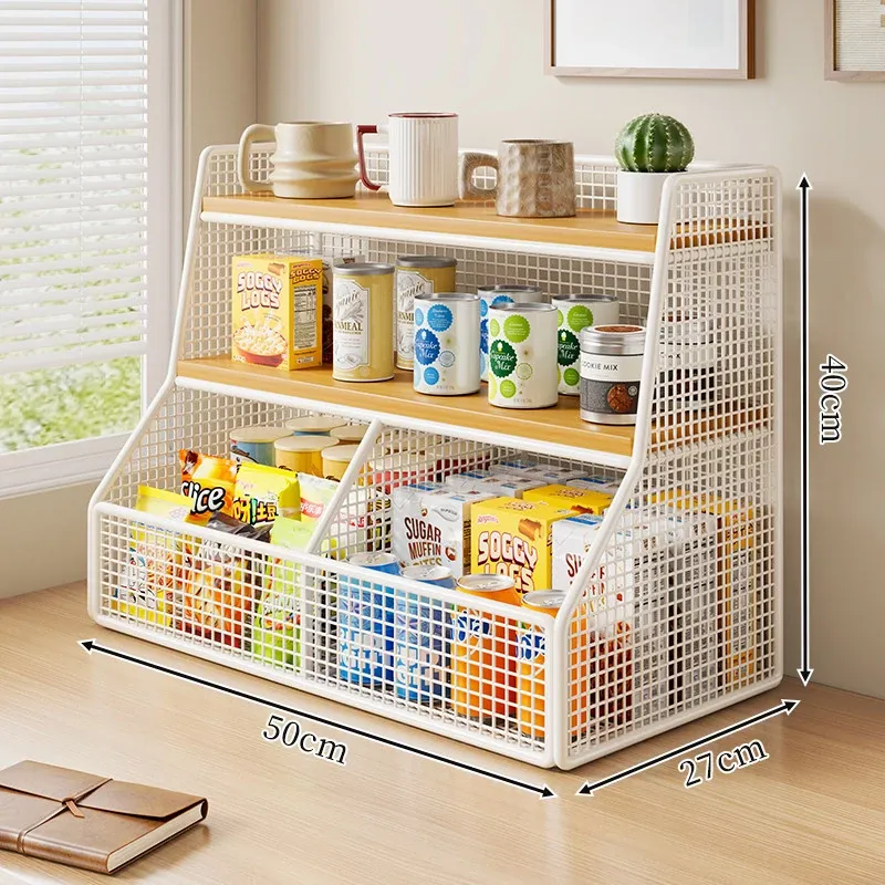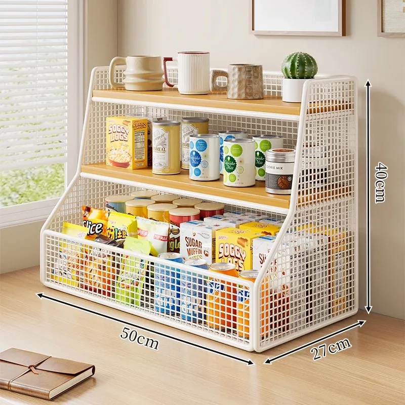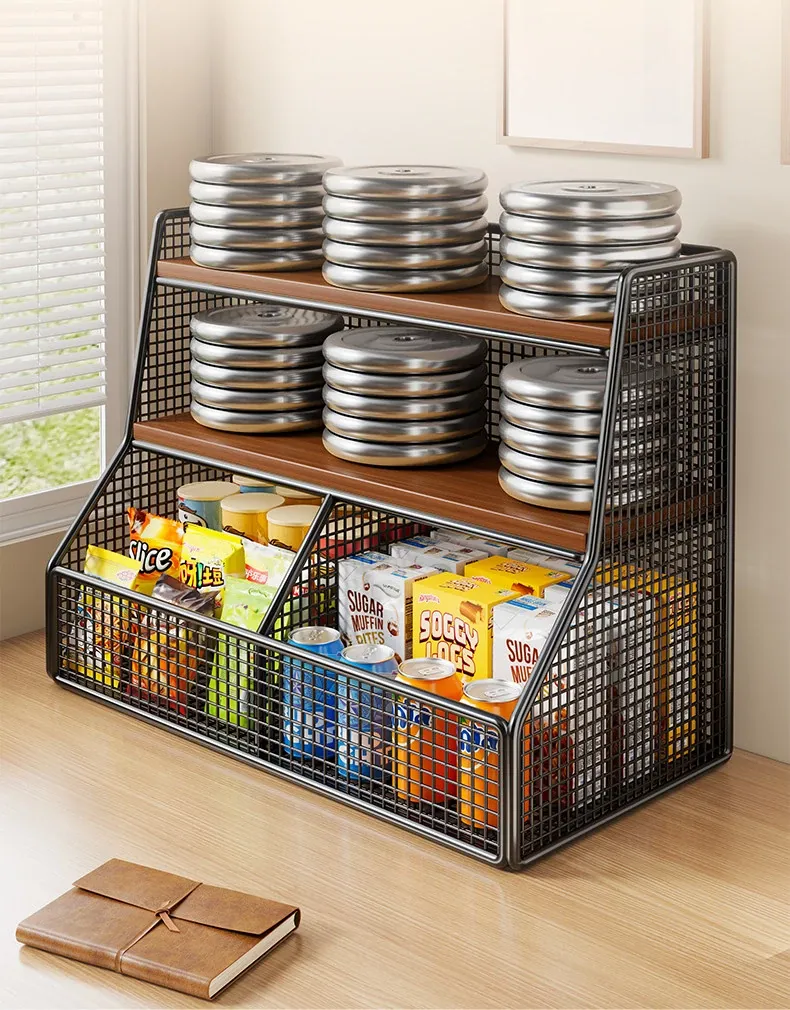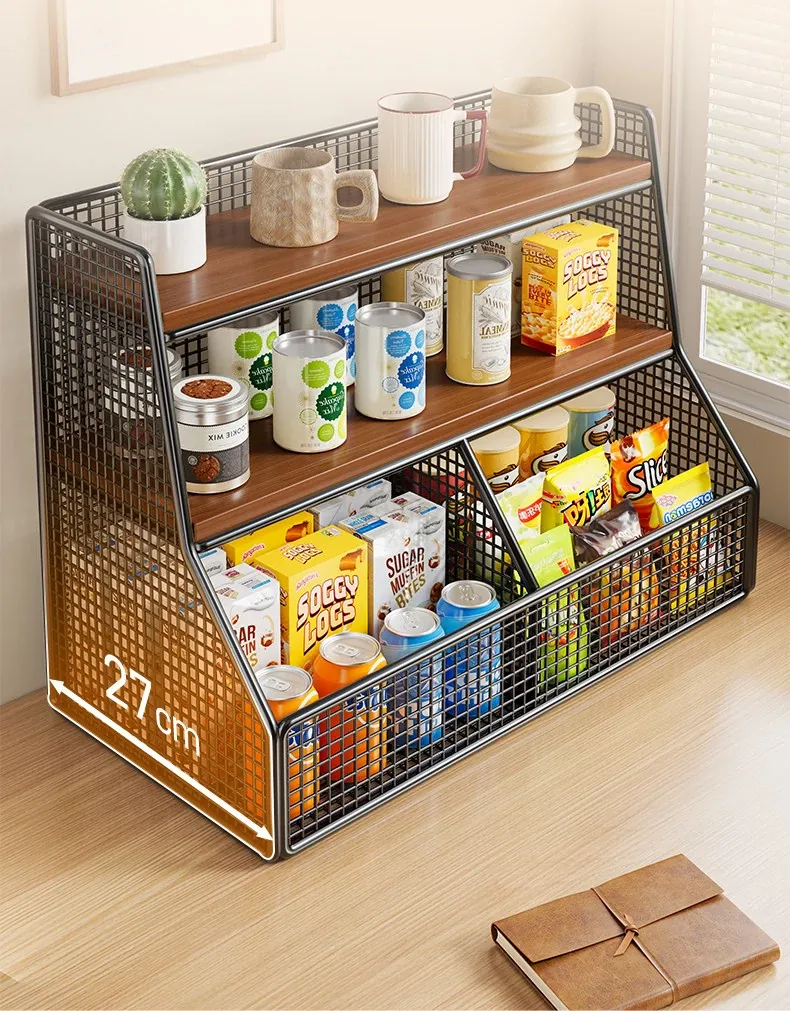 リビングにぴったり!多層式デスク収納ラック - キッチンやダイニングテーブルでのスナックやティーバッグ、水筒の整理に最適!おしゃれで機能的な収納アイテムです。