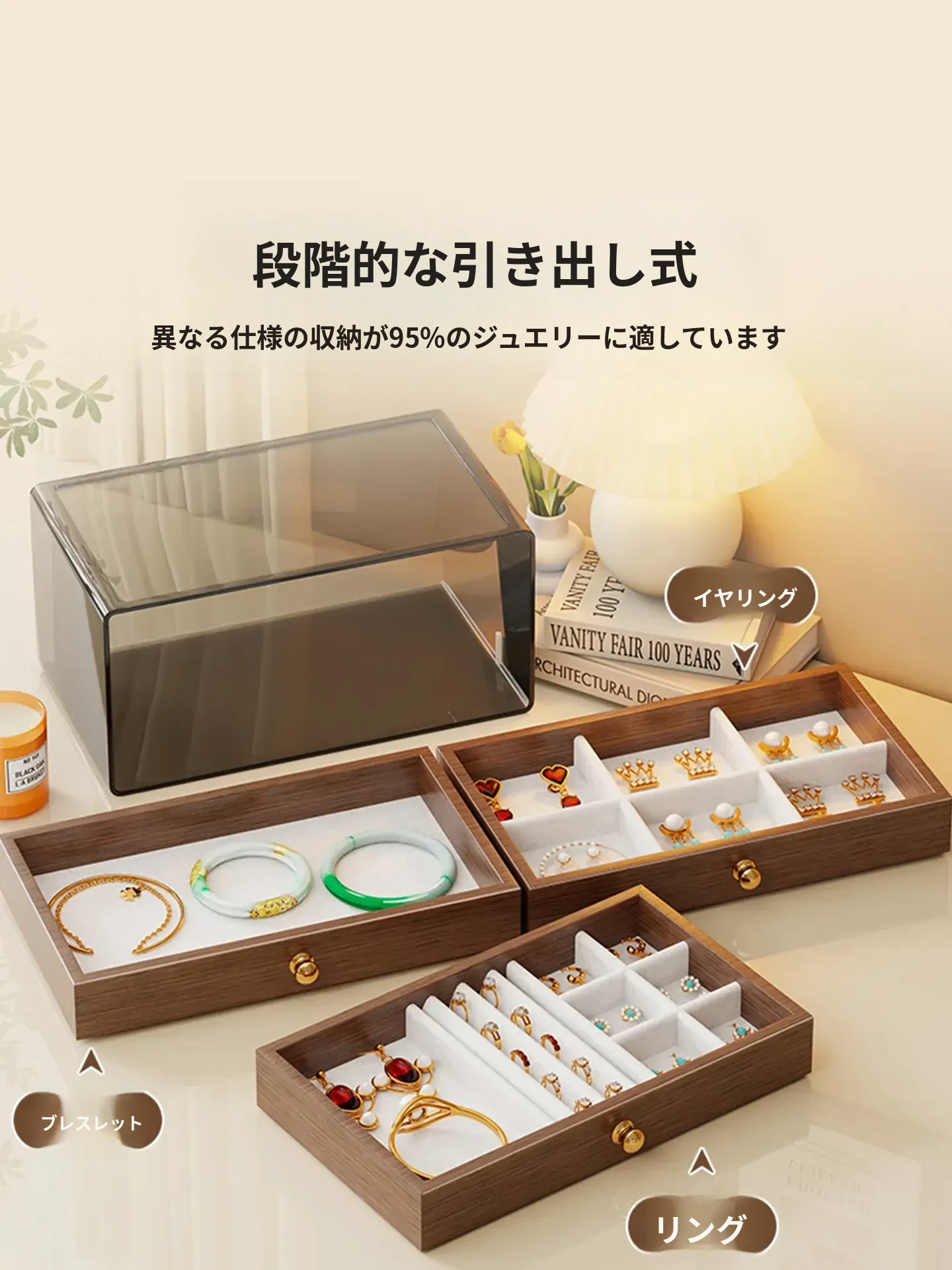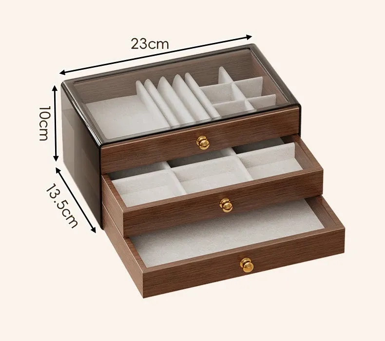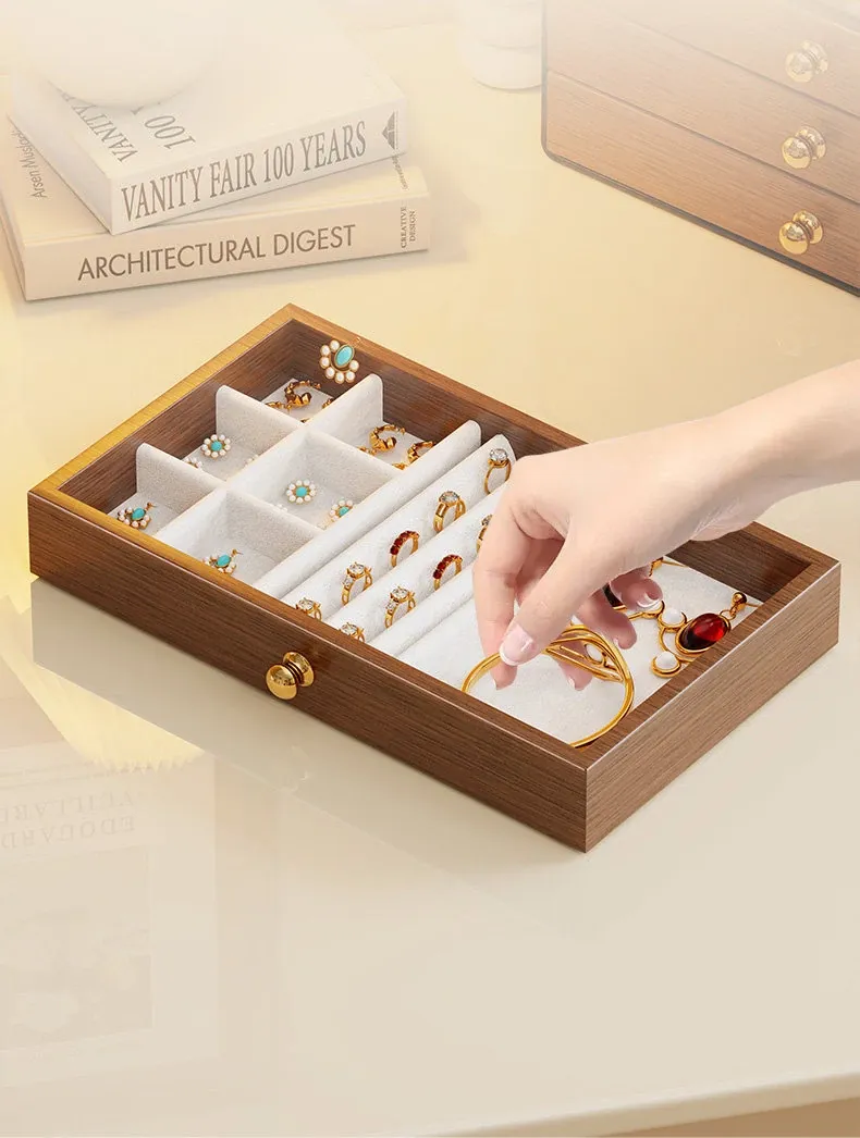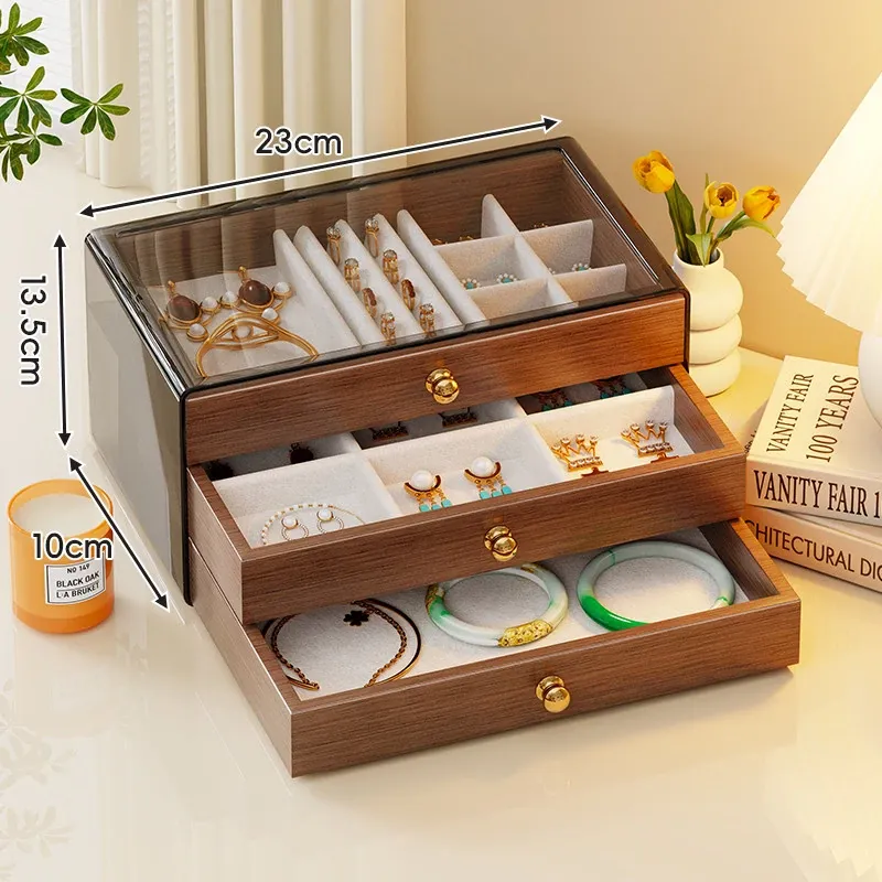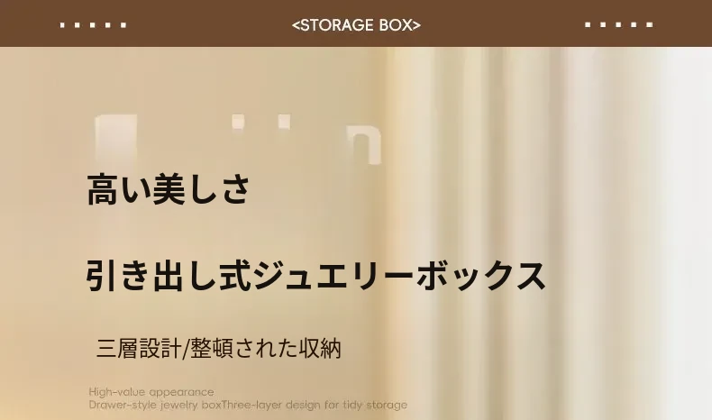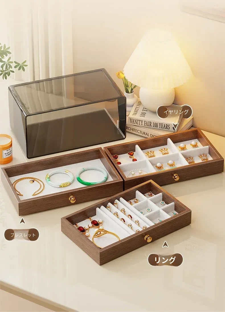 多層デザインのジュエリーボックス - デスク用、リング・ネックレス・イヤリングを美しく収納!高級感あふれる木製のディスプレイキャビネットで、あなたの大切なアクセサリーを魅力的に見せましょう!