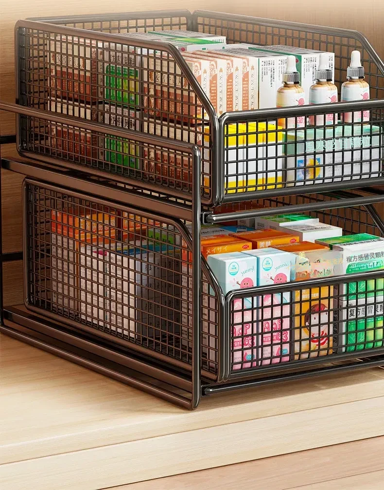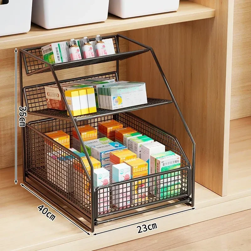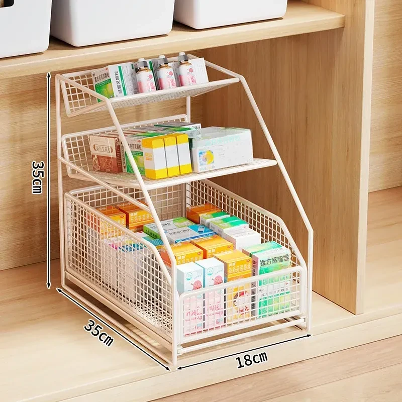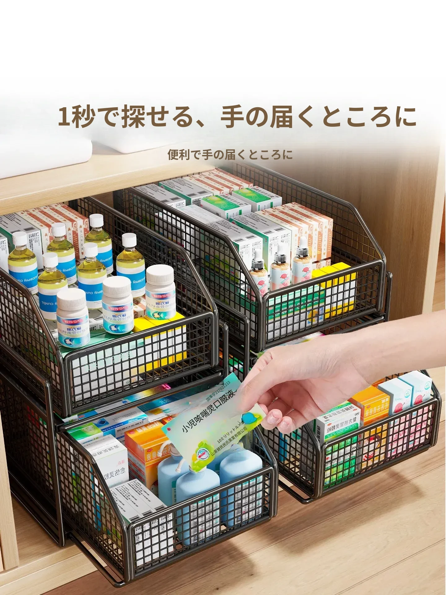 家庭用多層大容量の医薬品収納ボックス - 通気性抜群の仕切り付きで、薬を整理整頓!使いやすく、安心の収納スペースを提供します。