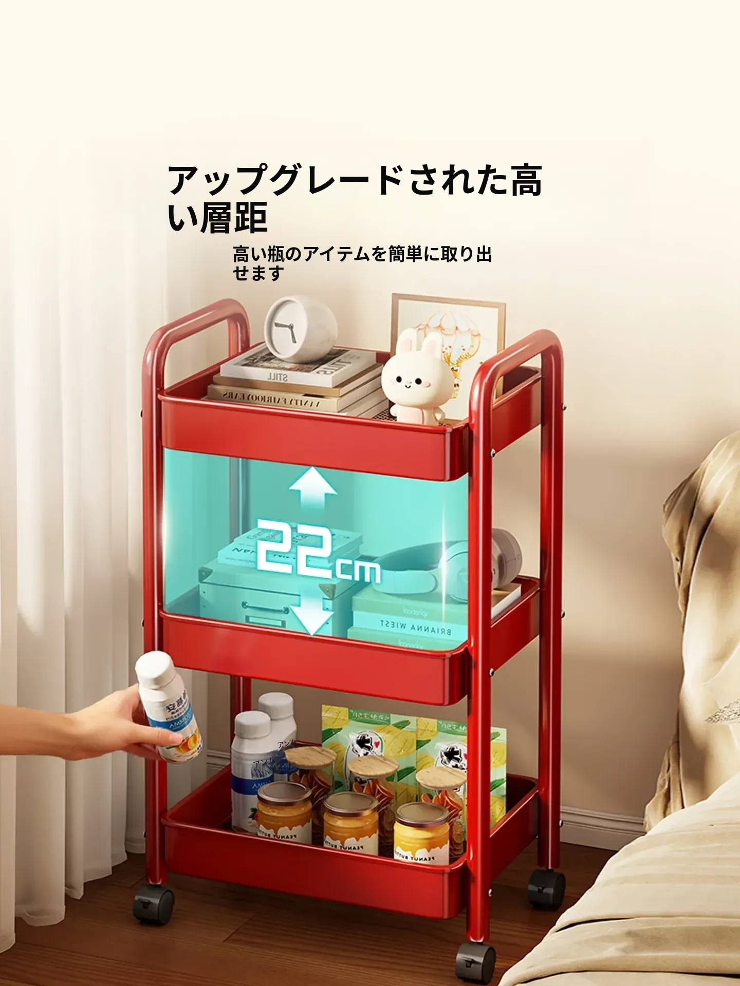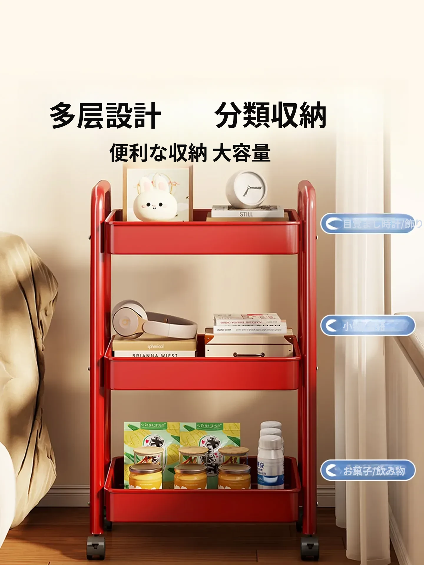 おしゃれな移動式お菓子小推車 - リビングに最適!キャスター付きで簡単に移動できる多層収納ラック。おもちゃや小物の整理整頓に最適な収納マジック!