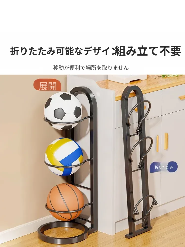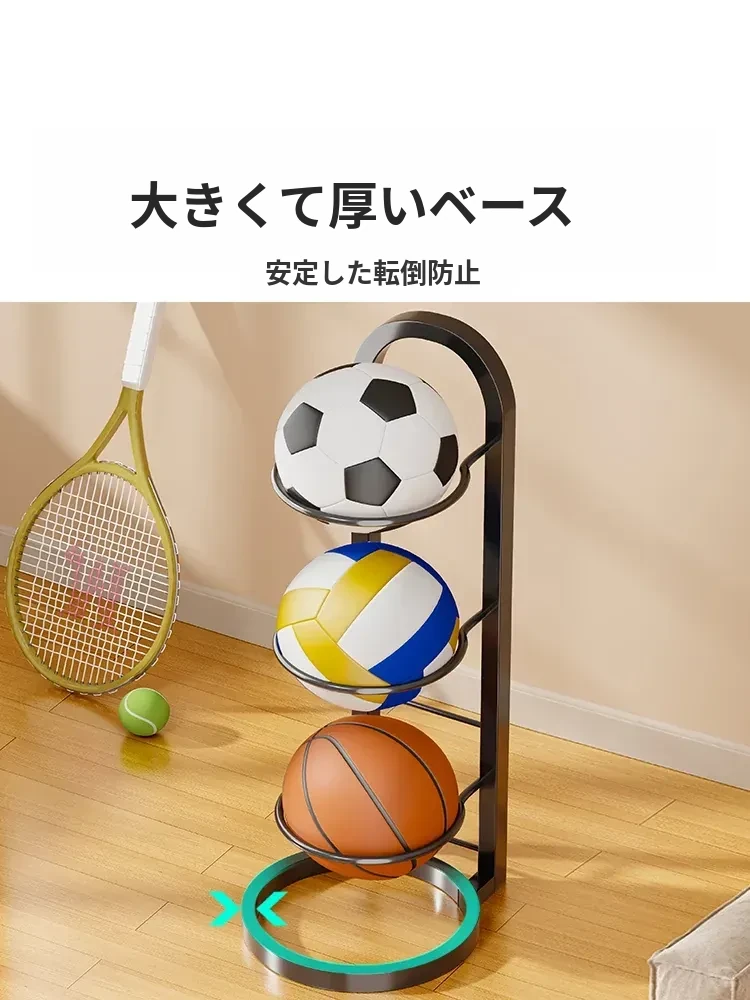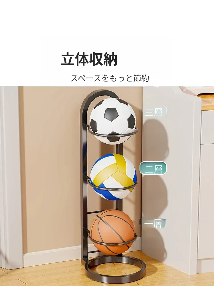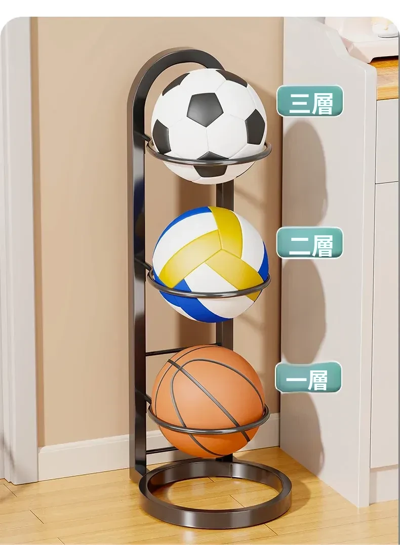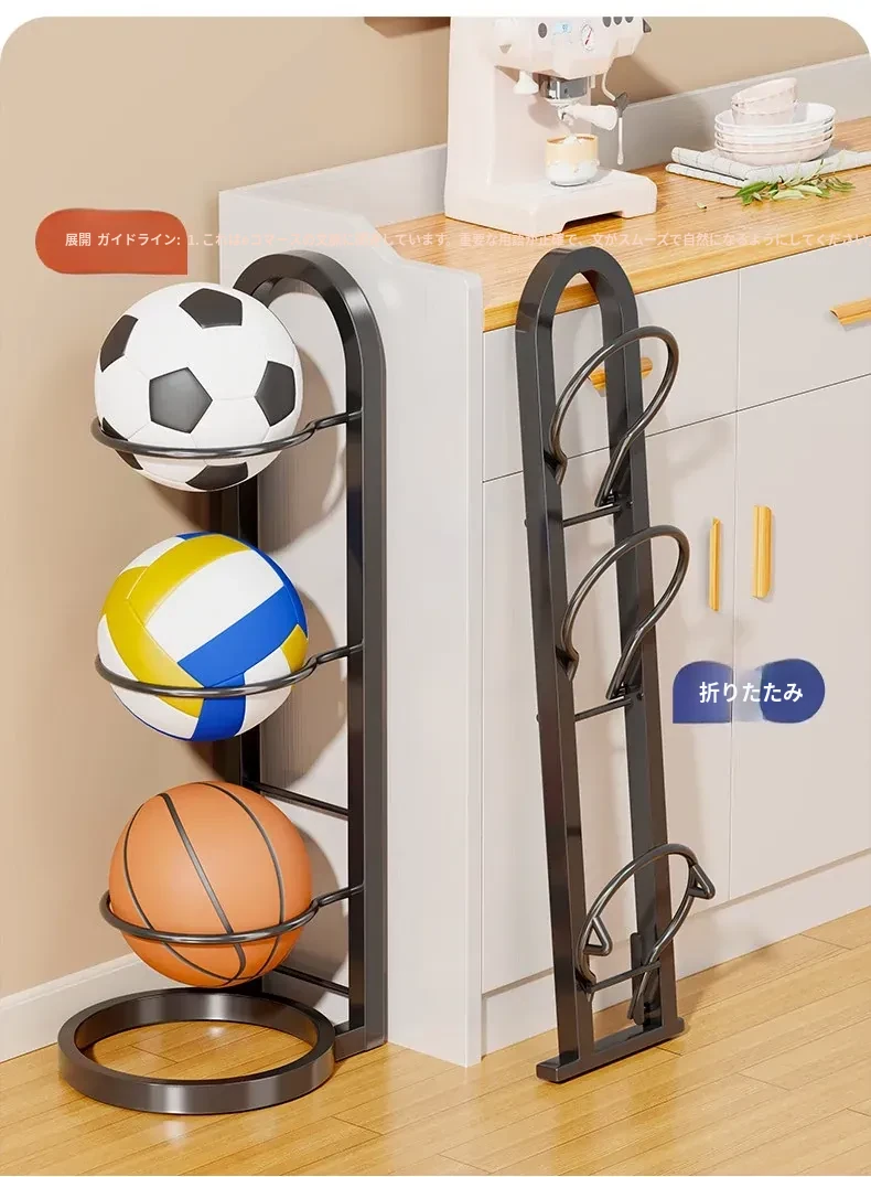 家庭用多層バスケットボール収納ラック|サッカー・バレーボールも収納可能|子供のおもちゃやスポーツ用品をスッキリ整理!室内での遊び場をおしゃれに演出します!