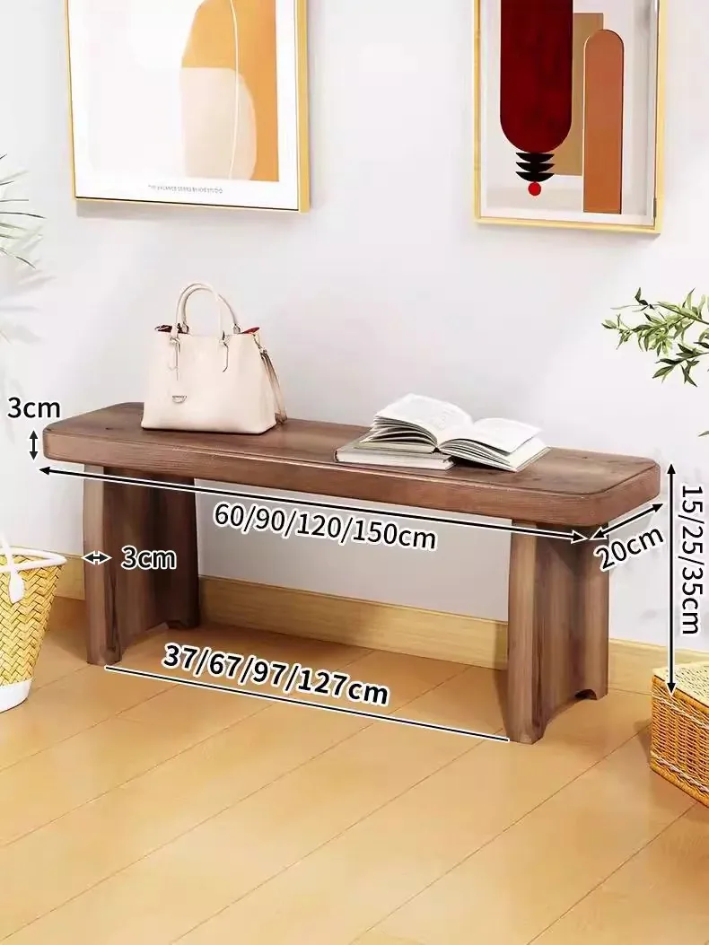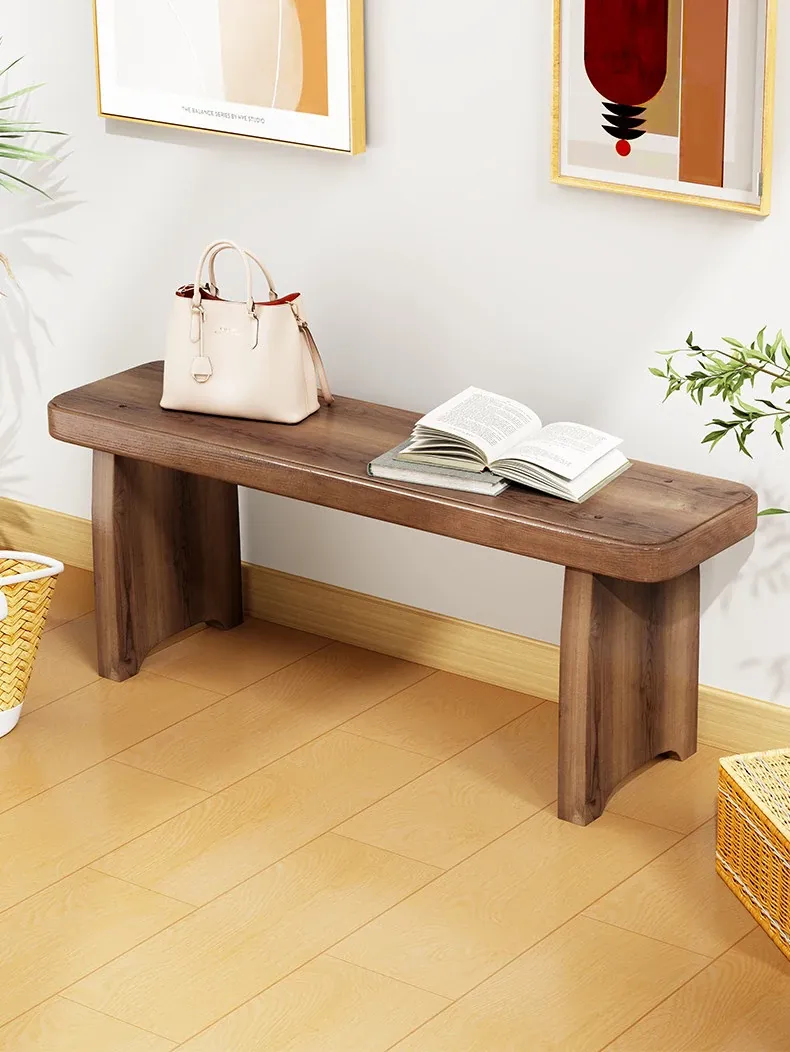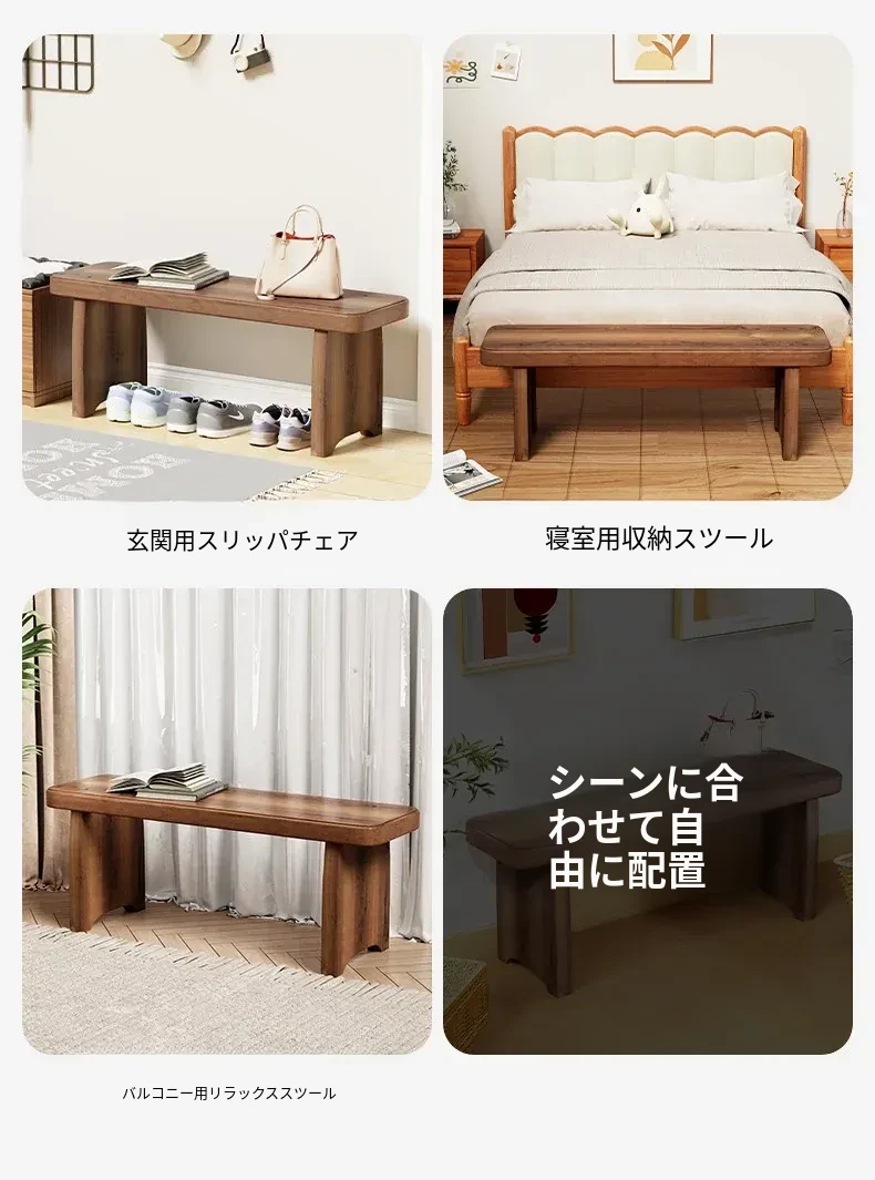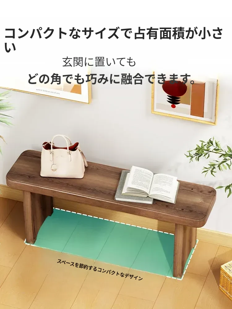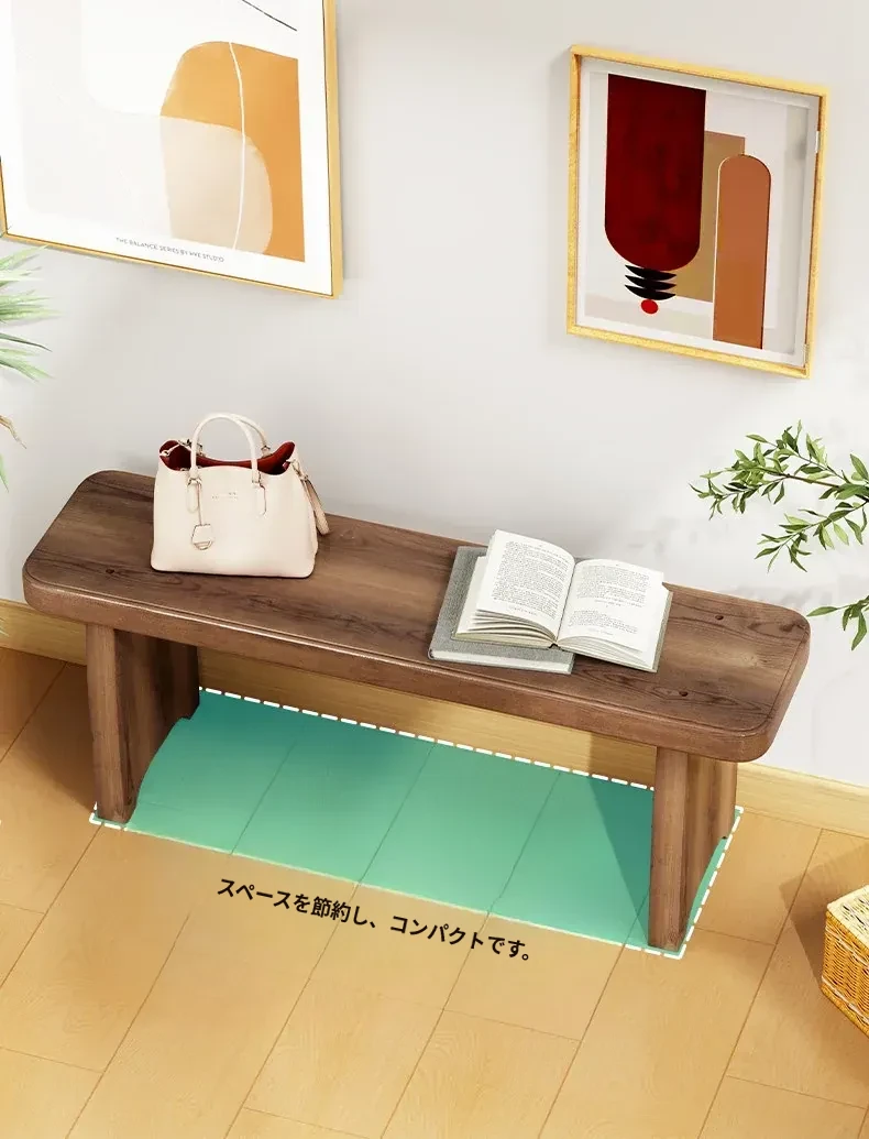 北欧スタイルの実木ロングベンチ - シンプルで創造的なデザイン、ダイニングや玄関に最適!靴を履くのに便利な機能性と快適さを両立。おしゃれな生活空間を演出する理想のアイテムです。