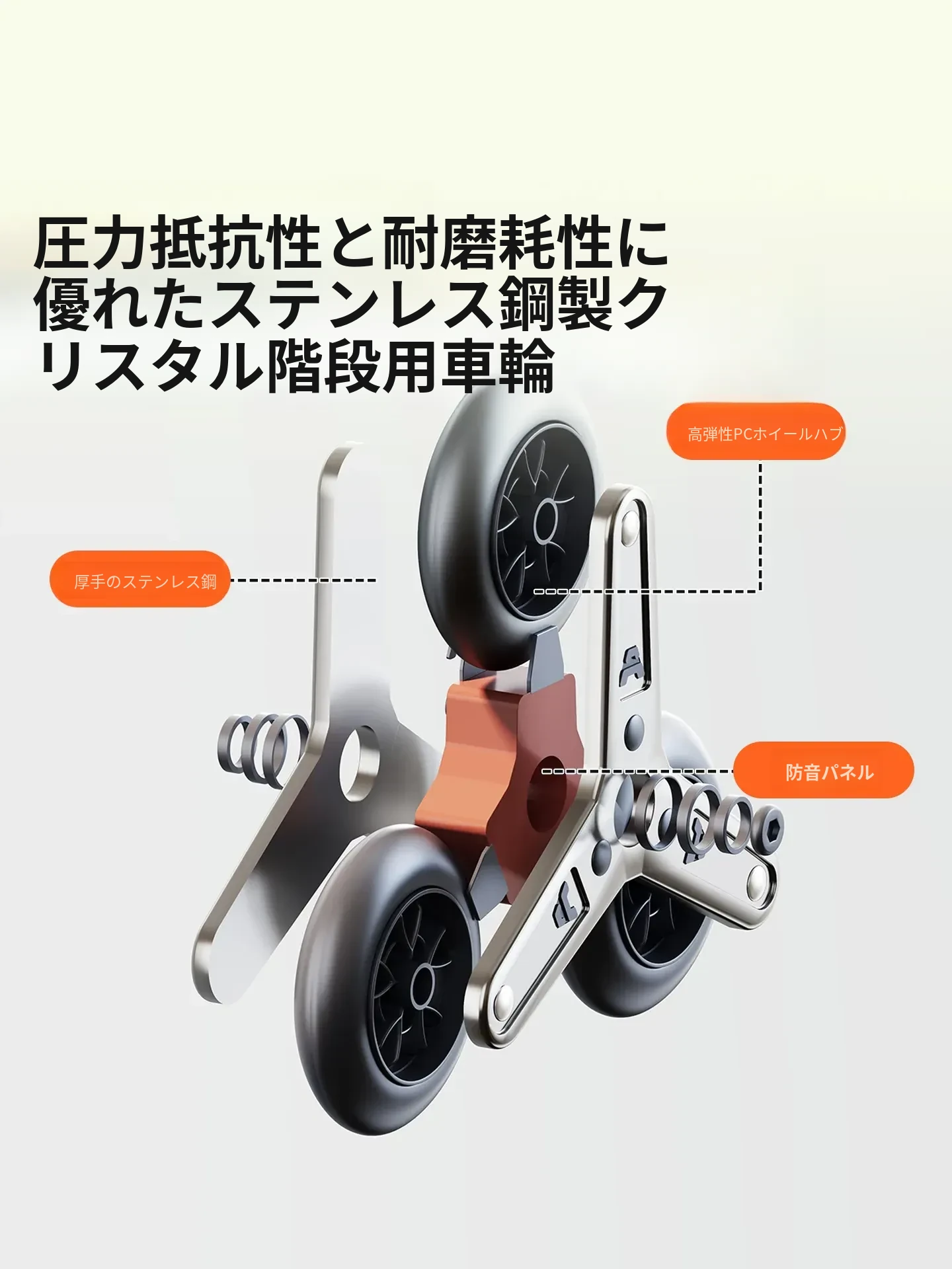 フラッグシップモデル【クリスタルスチールシャフト階段車輪-強化ベース】灰ストライプ