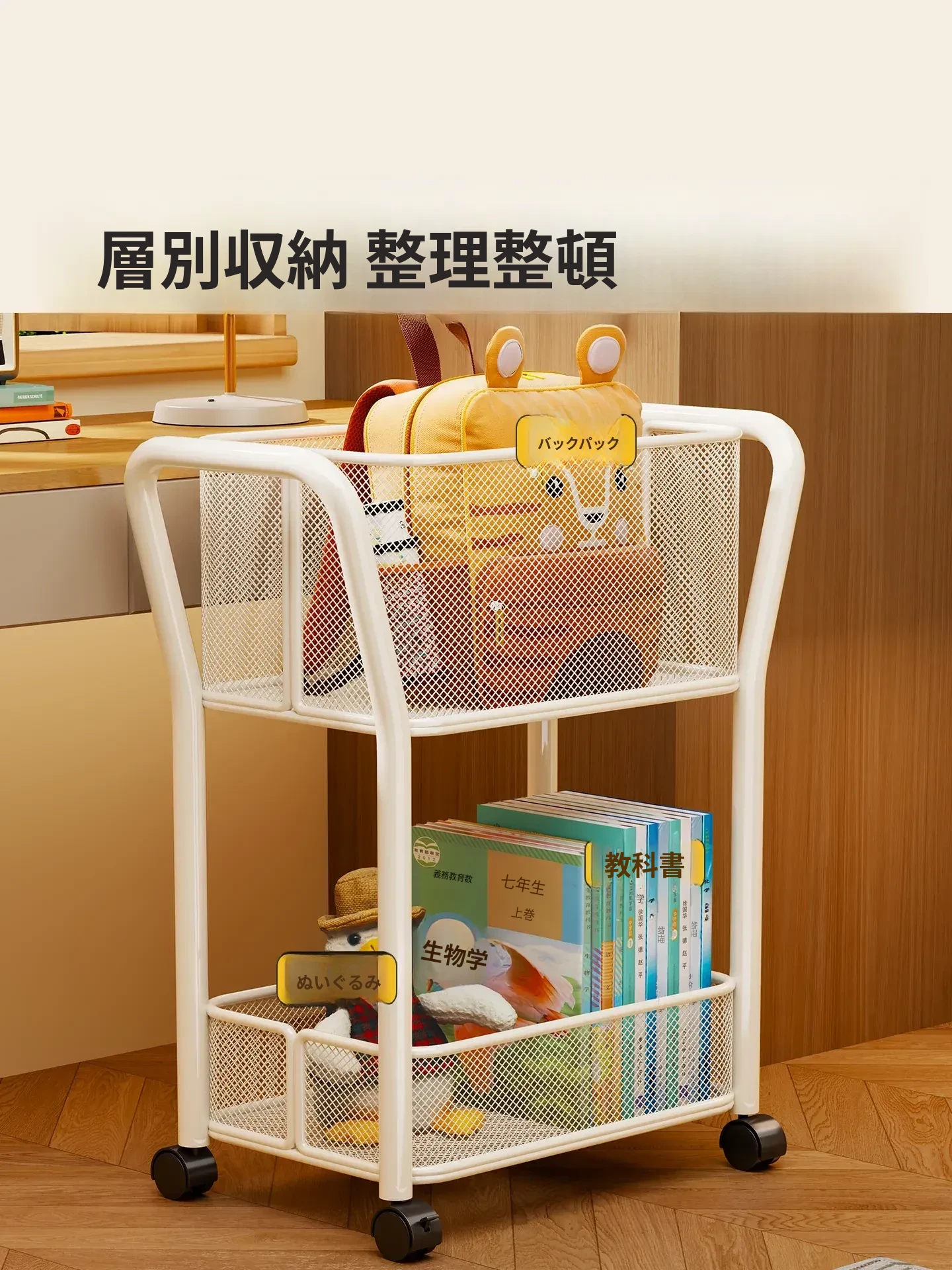 学生のための移動式書類ラック - 高校生向け、教科書や資料を整理整頓!キャスター付きで使いやすさ抜群!机の横にぴったりフィットし、学習環境をスッキリ整えます。