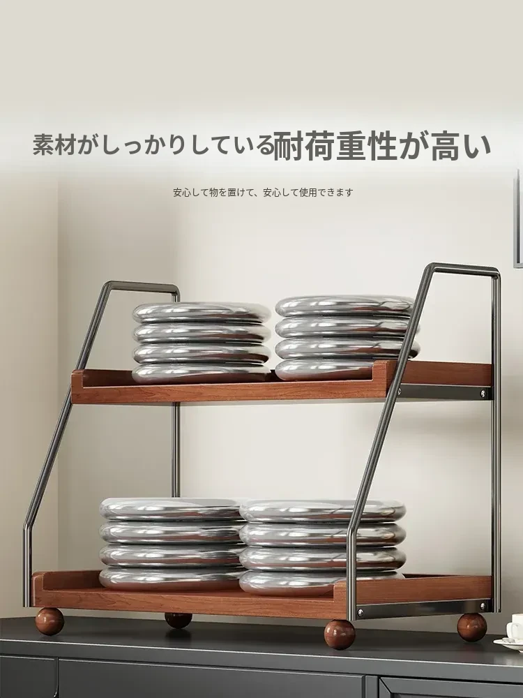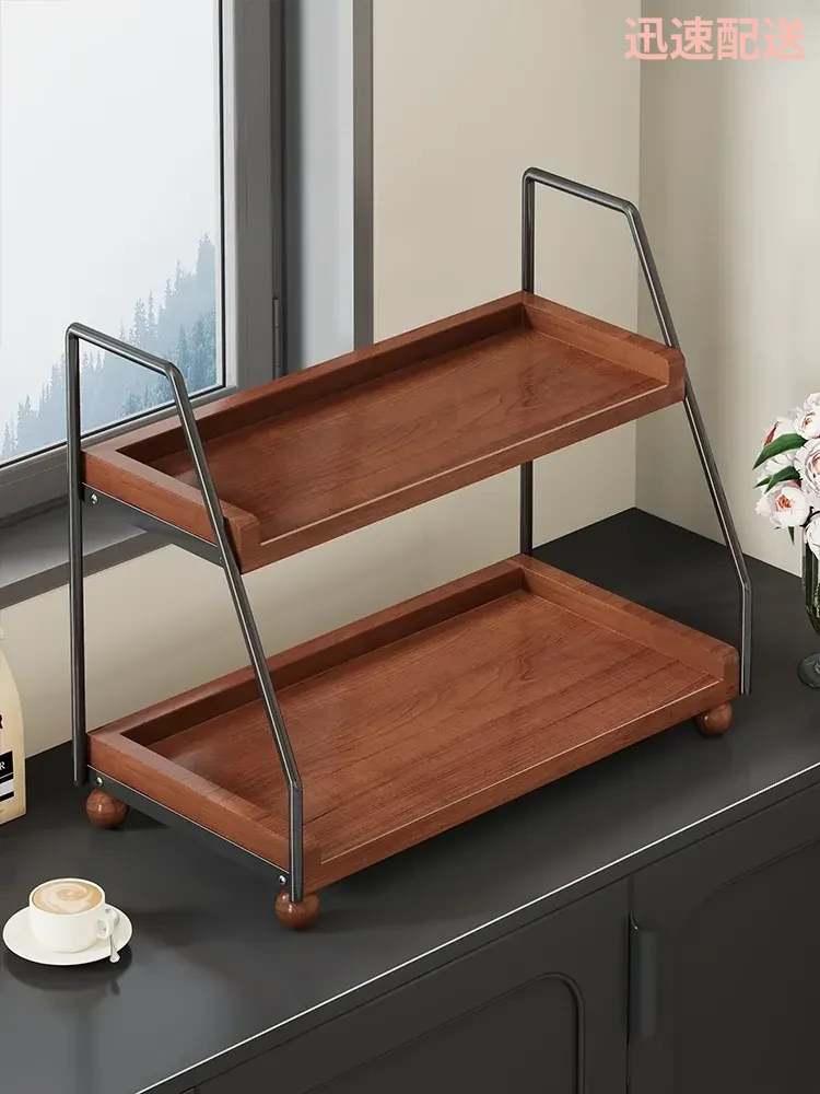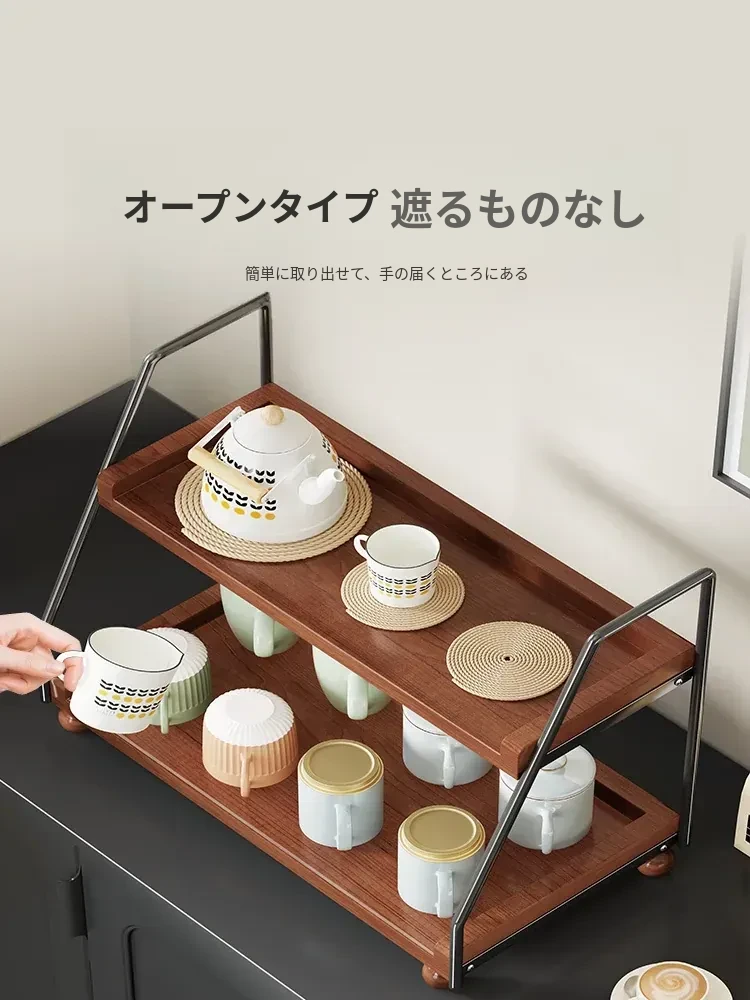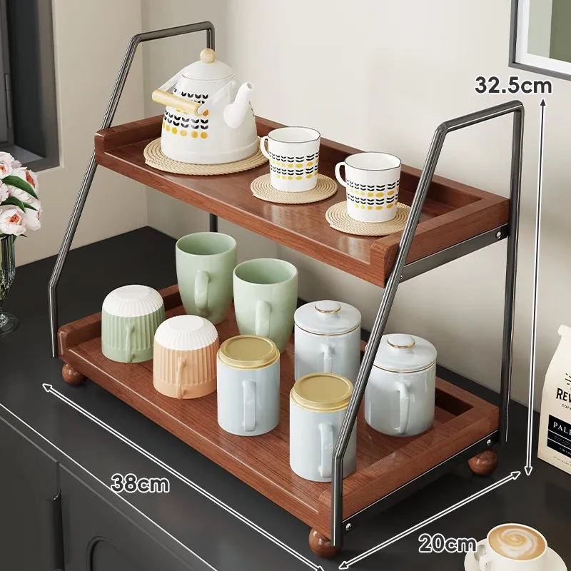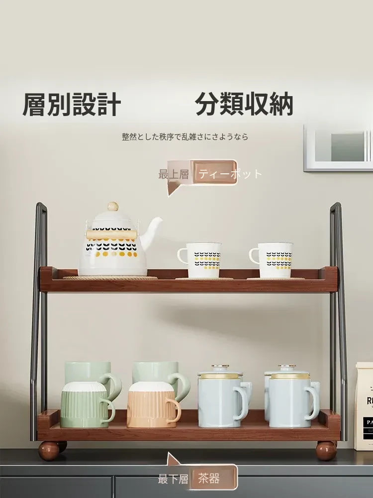 無垢材のデスク用収納ラック - 化粧品やキッチン調味料、マルチレイヤーのレトロデザインで、食卓や水杯の整理に最適な収納アイテム!あなたの生活空間をスタイリッシュに整えましょう。