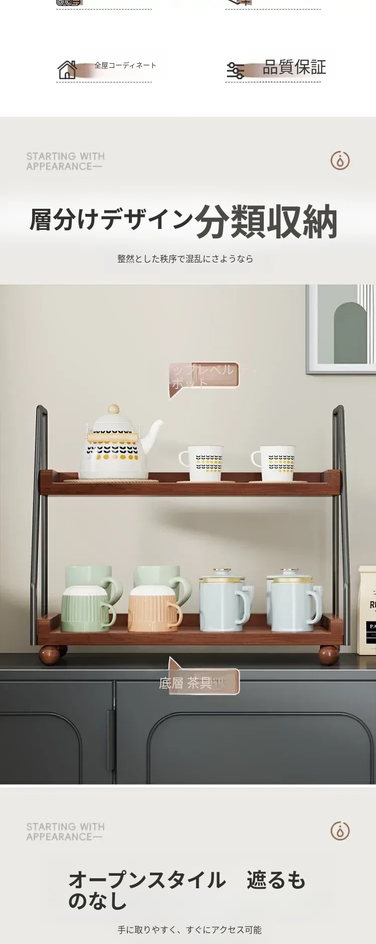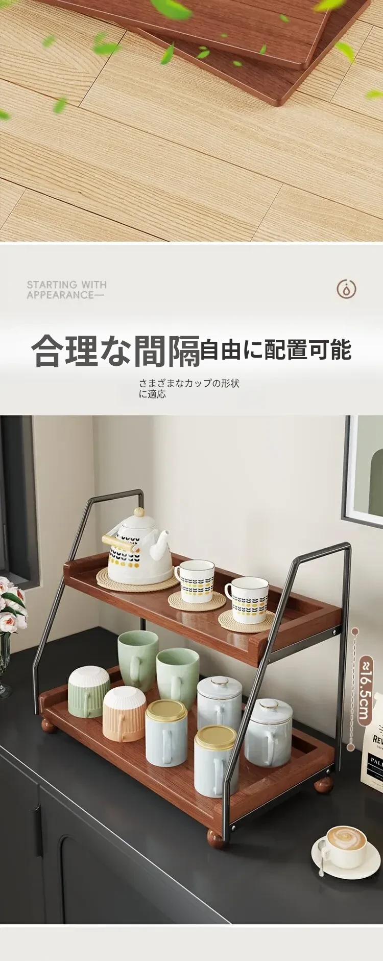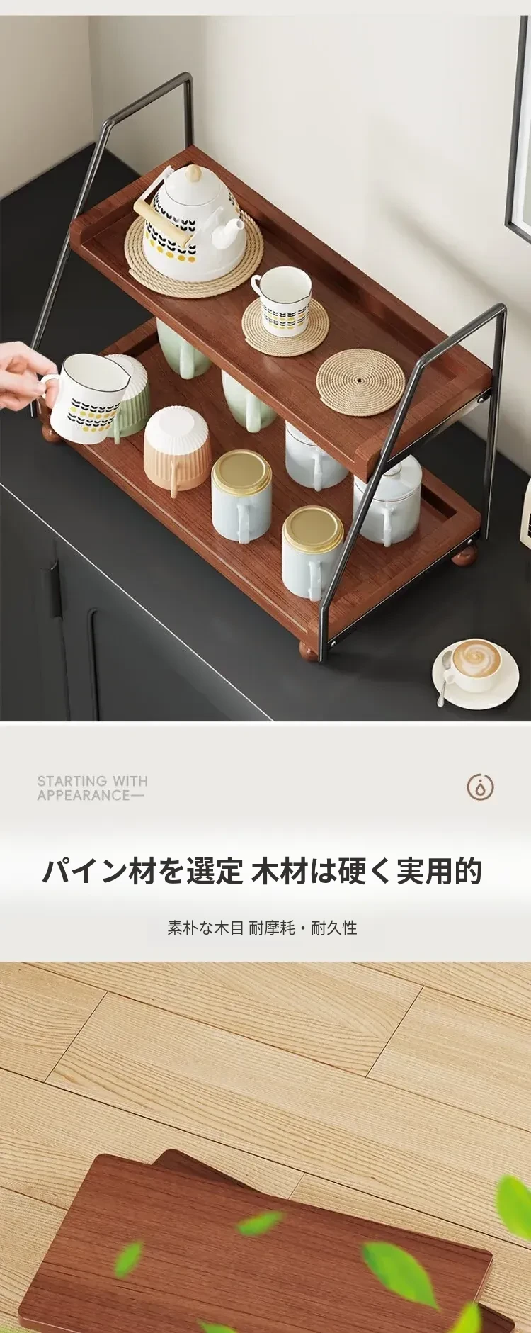 無垢材のデスク用収納ラック - 化粧品やキッチン調味料、マルチレイヤーのレトロデザインで、食卓や水杯の整理に最適な収納アイテム!あなたの生活空間をスタイリッシュに整えましょう。