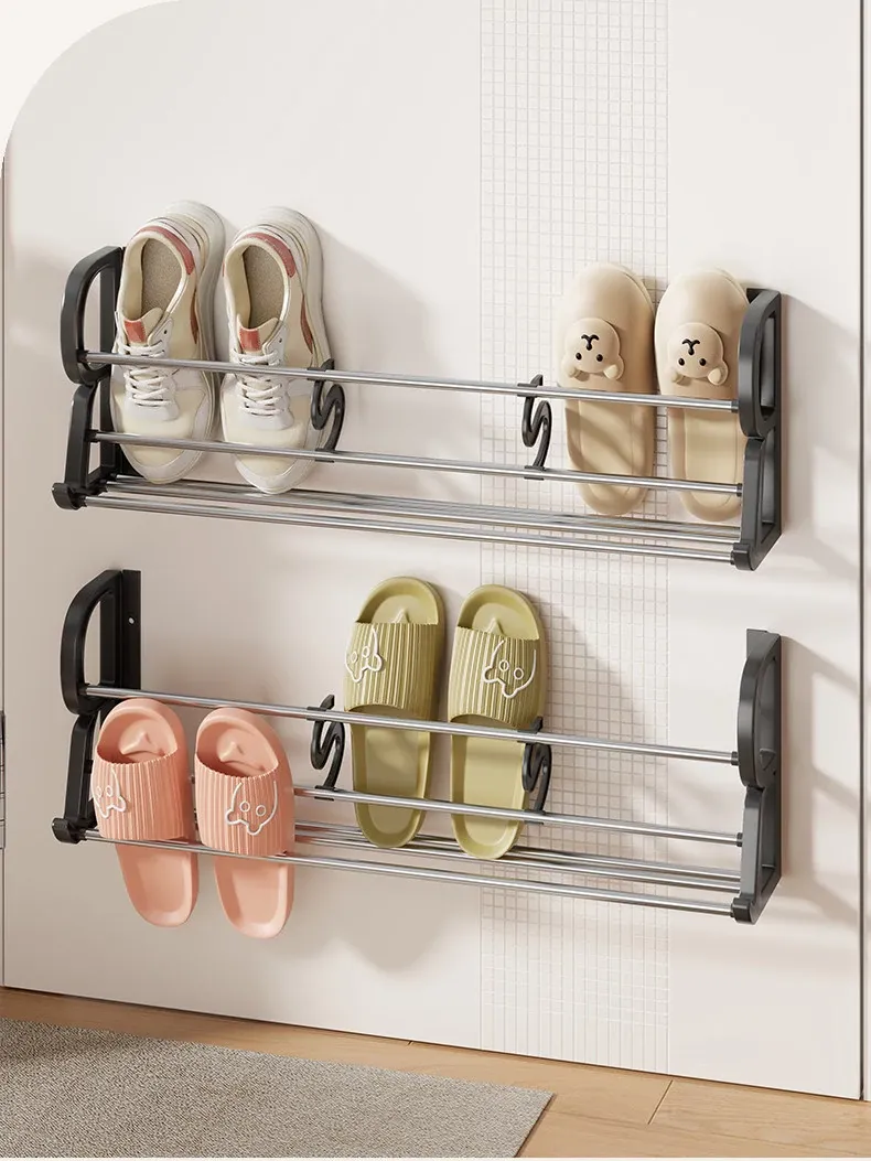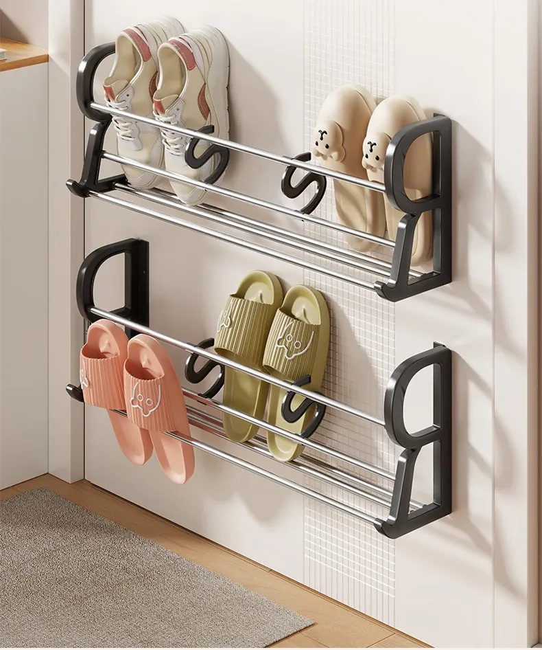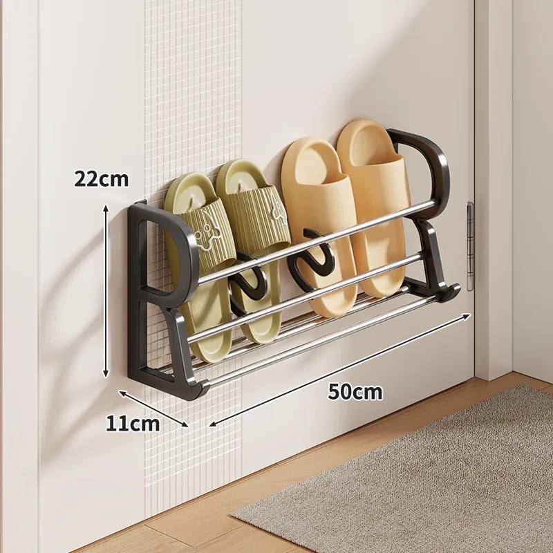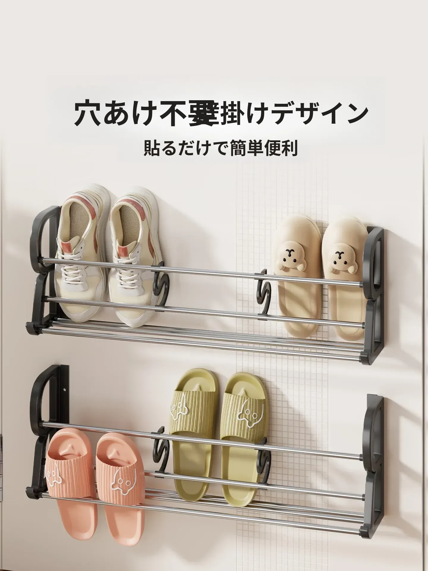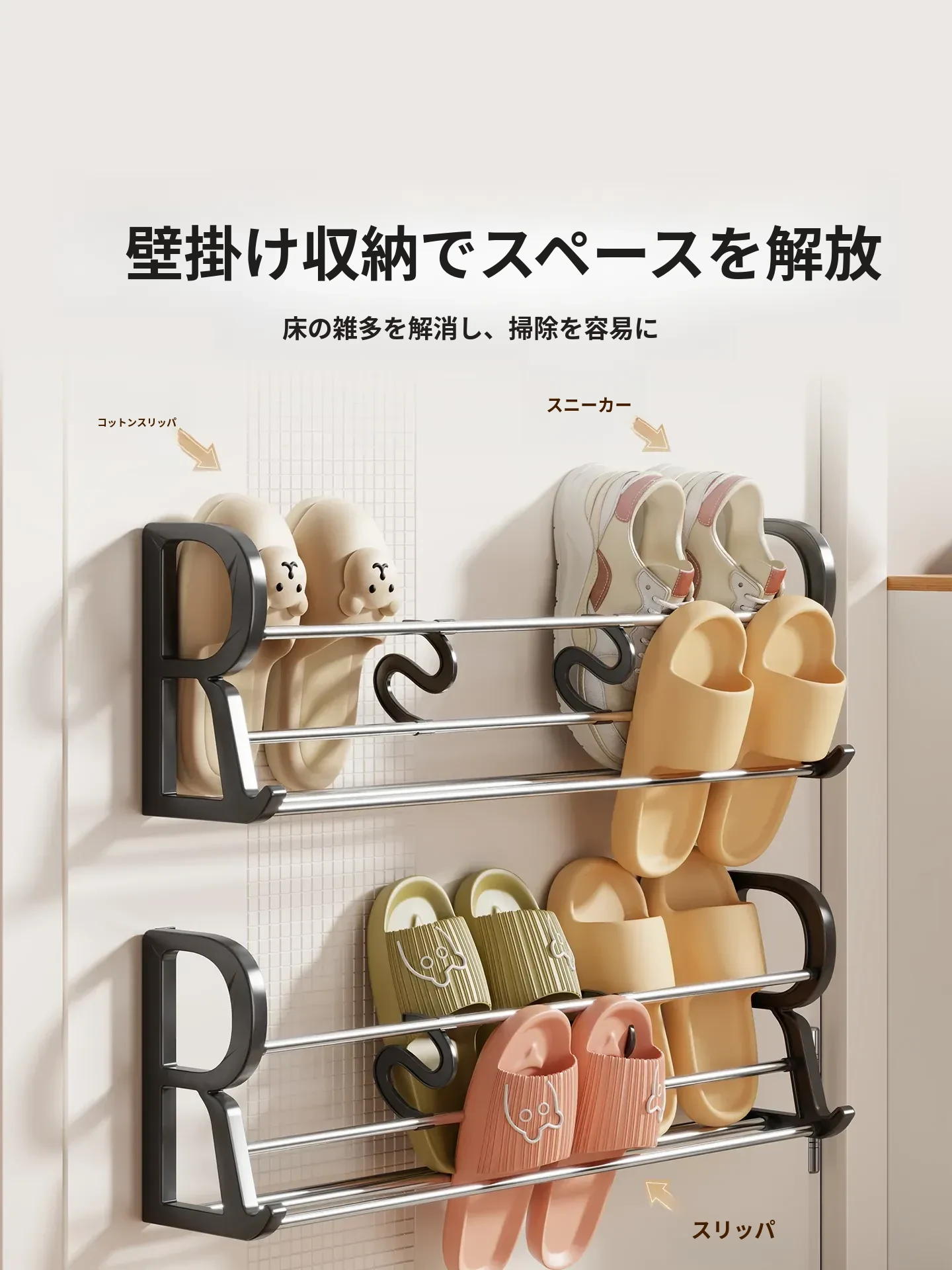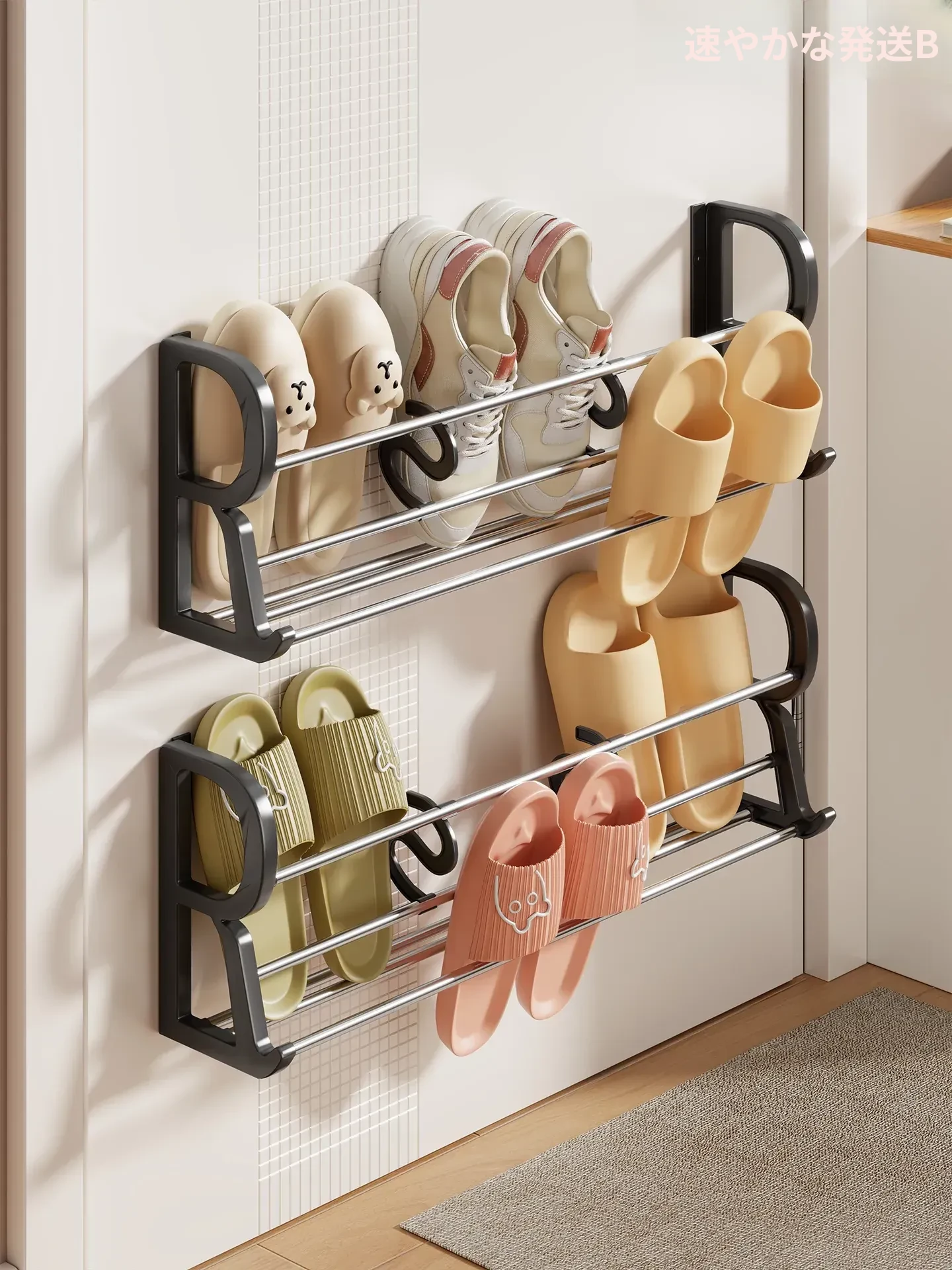 スリムな壁掛けシューラック - 小さなスペースでもスッキリ収納!デスク下や寝室のドア裏にぴったりの簡易収納棚。靴の整理整頓を簡単に実現し、生活空間を広々と使えます!