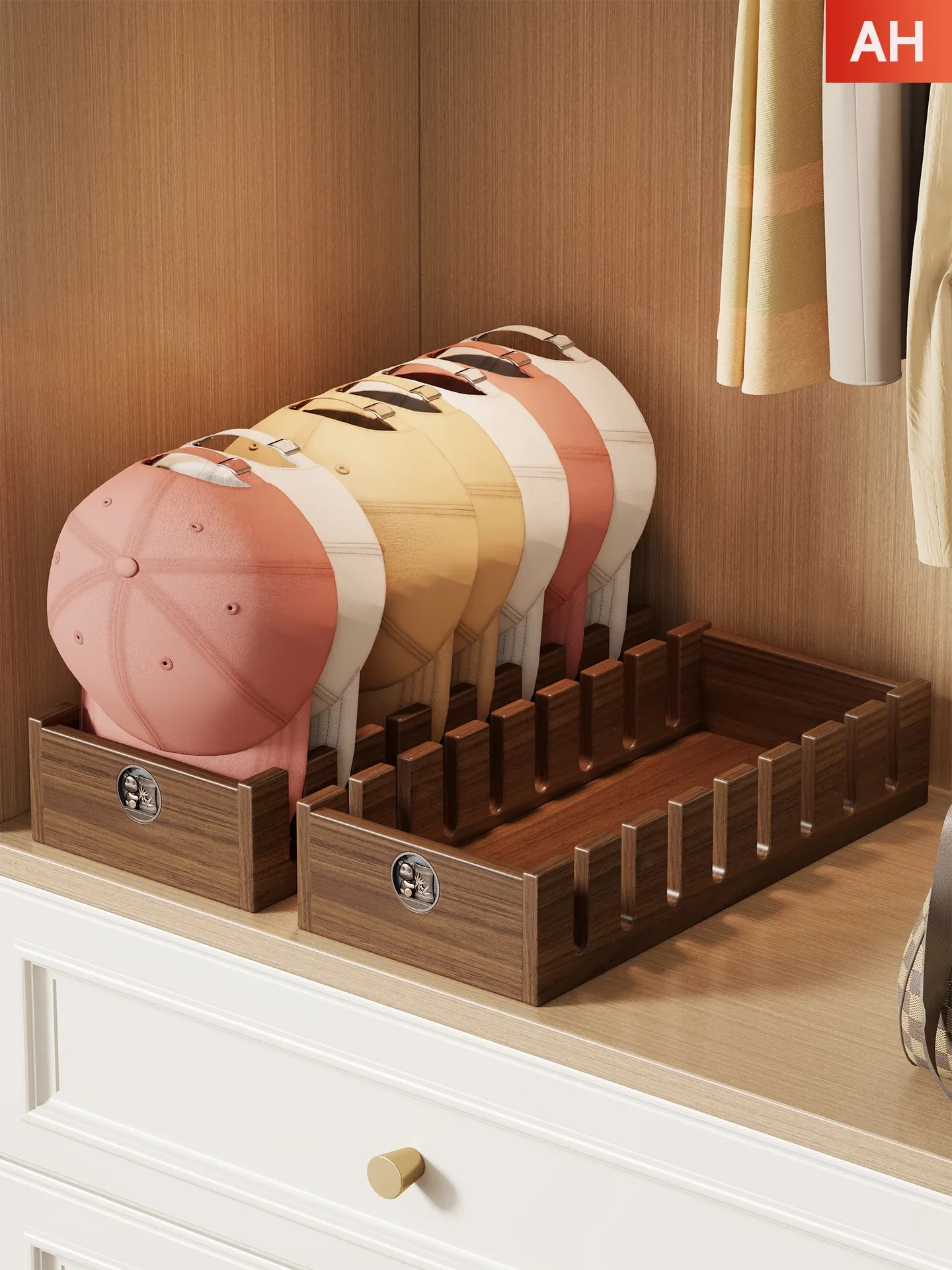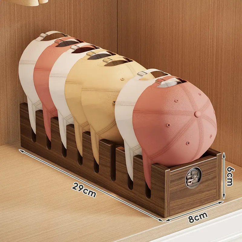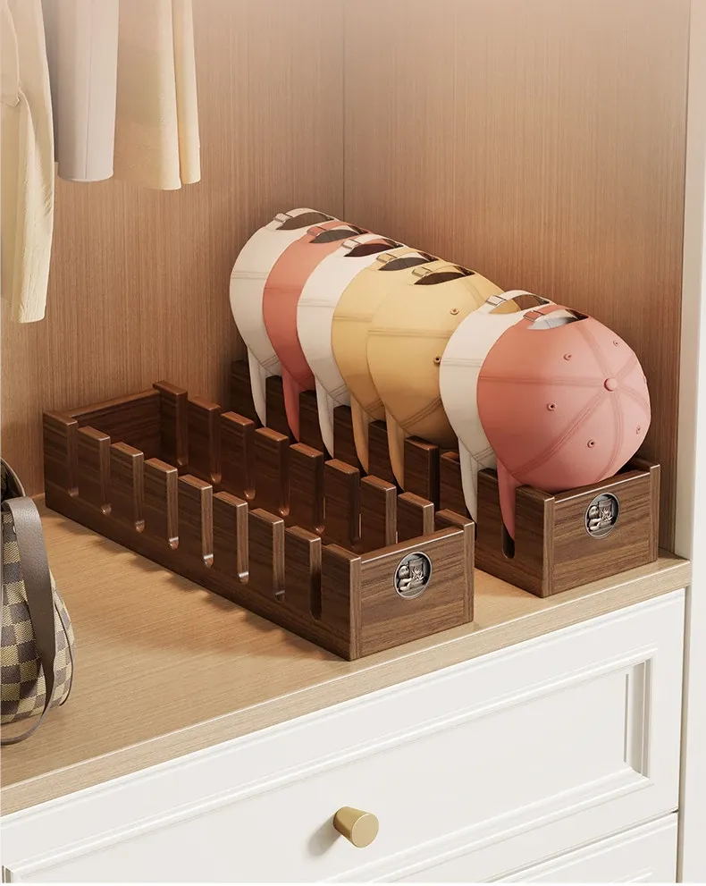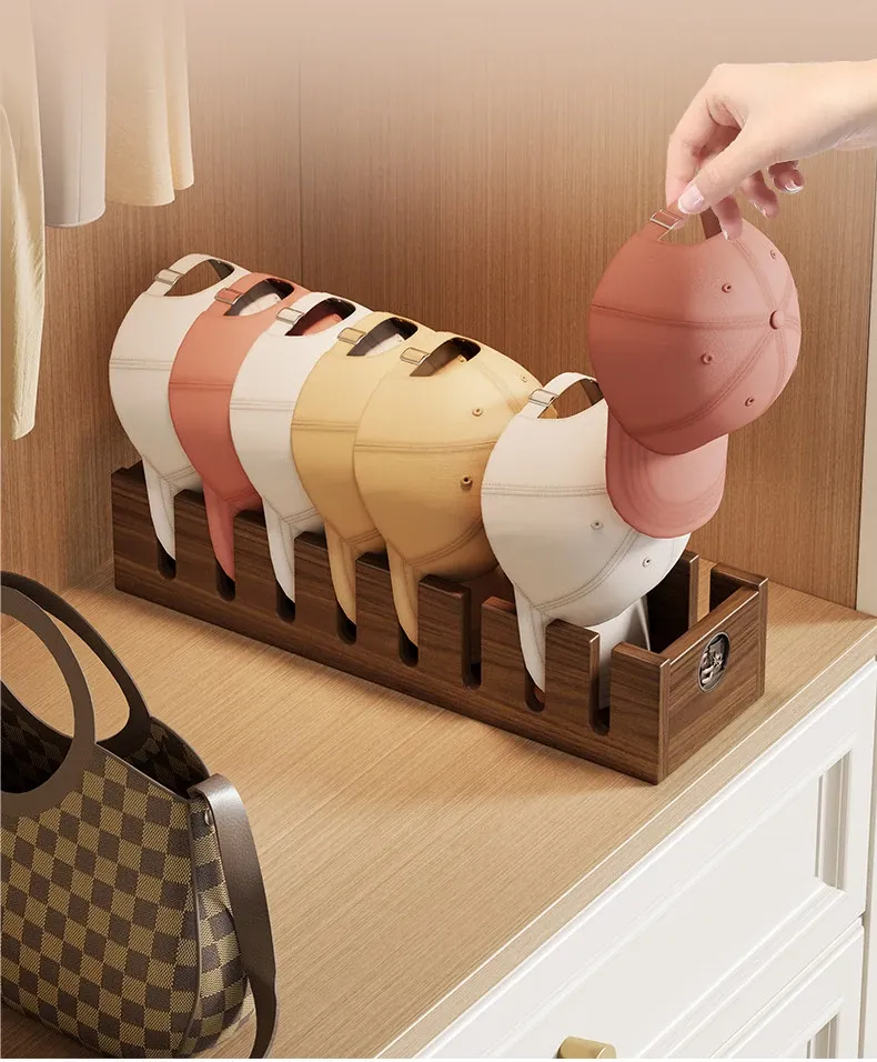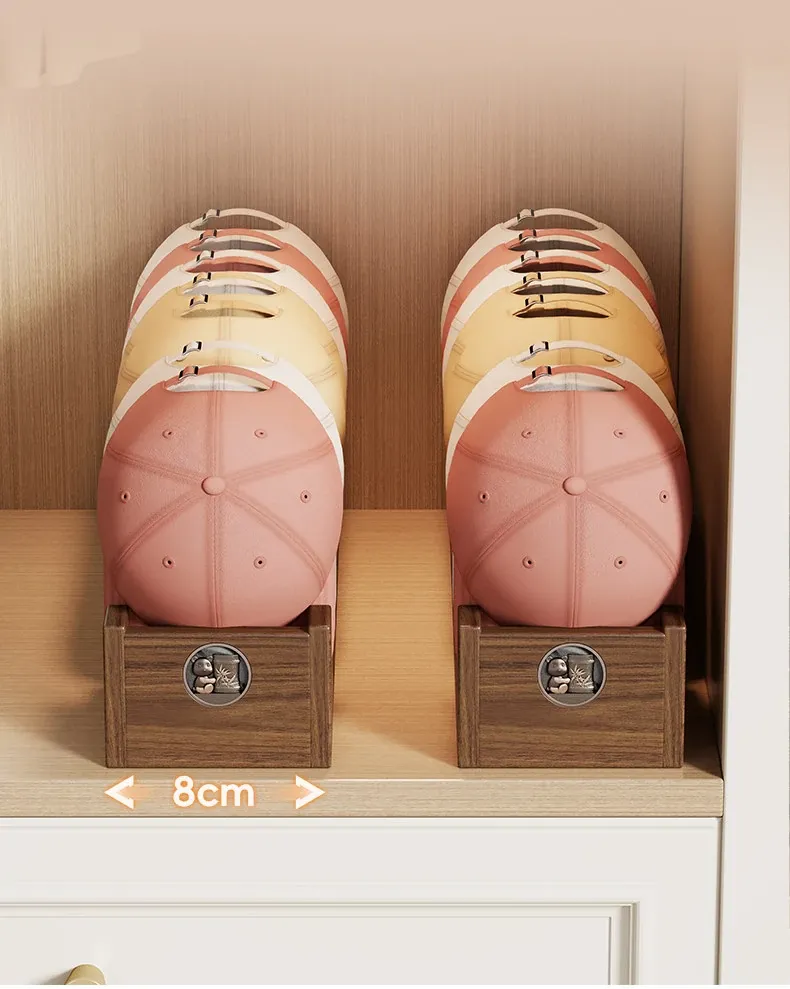 実木製の帽子収納マジック!家庭用クローゼットや玄関に最適なテニスキャップの階層収納、スナップバックやベースボールキャップのディスプレイラック。おしゃれに整理整頓して、スペースを有効活用!