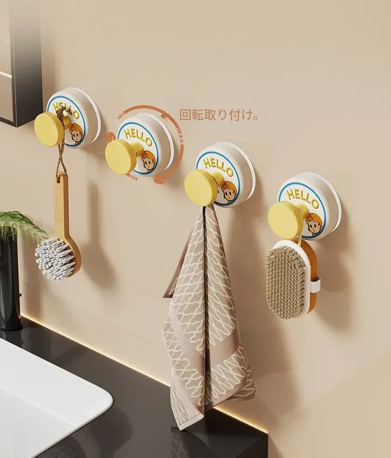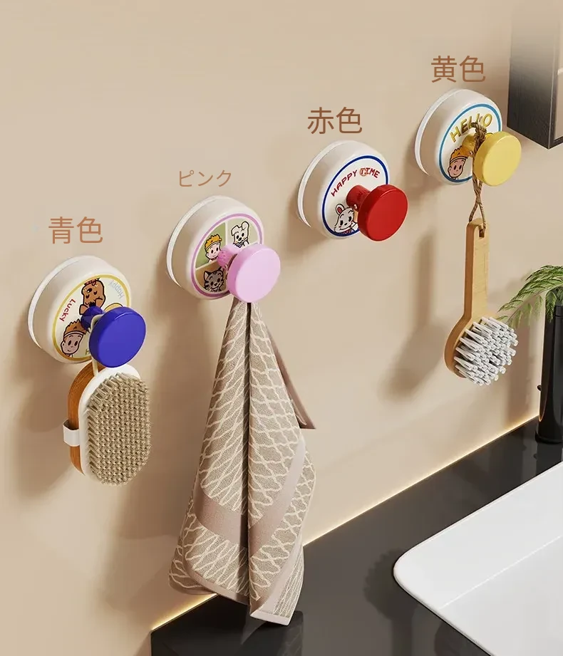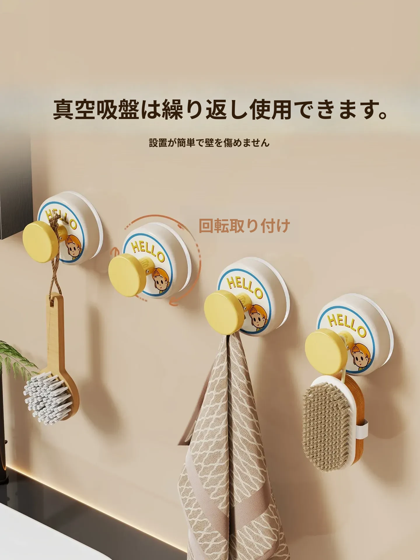 強力吸盤フック - 無痕で穴あけ不要!真空式で移動も簡単、キッチンやバスルームの収納に最適な粘着フック。家中どこでも使える便利アイテム!