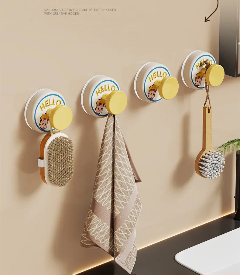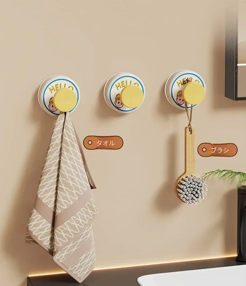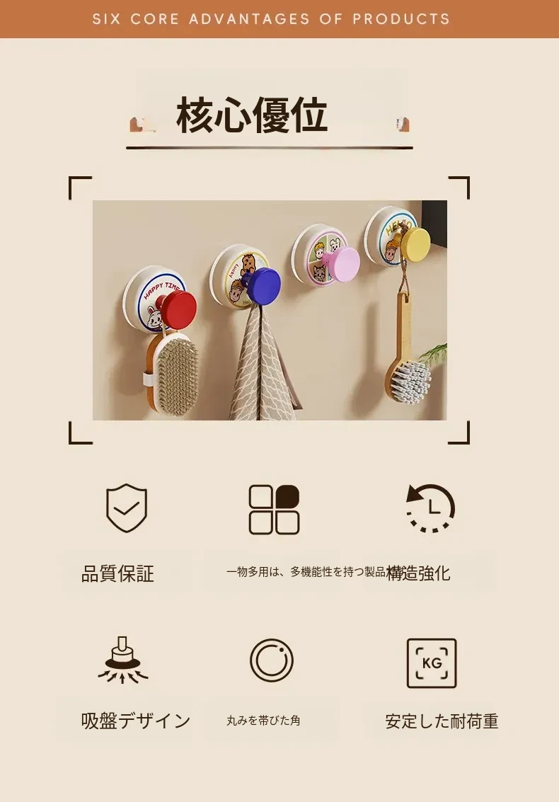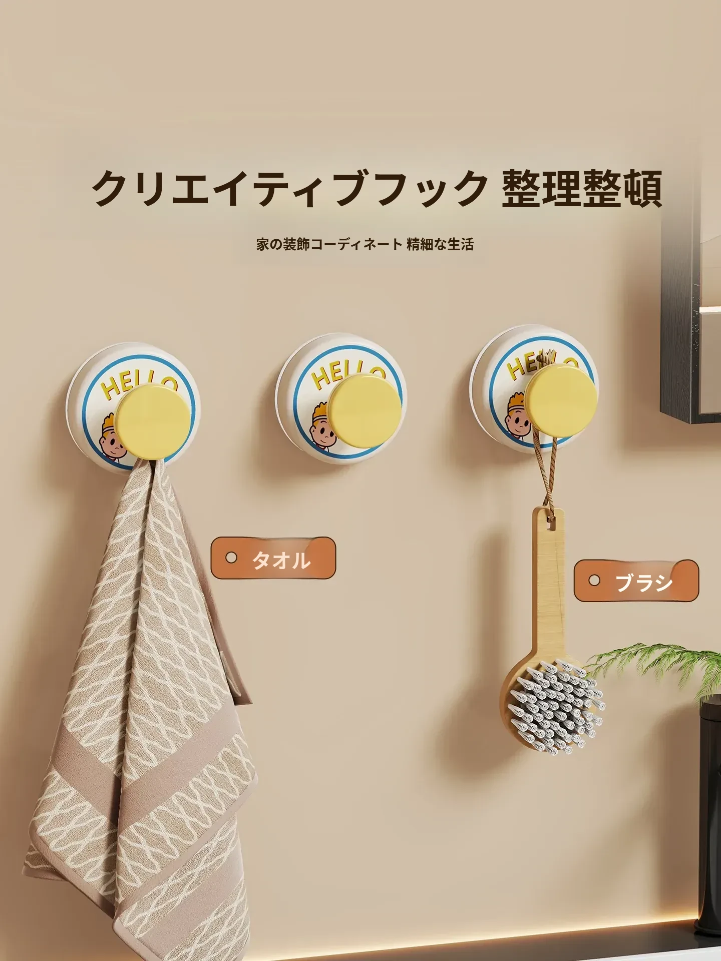強力吸盤フック - 無痕で穴あけ不要!真空式で移動も簡単、キッチンやバスルームの収納に最適な粘着フック。家中どこでも使える便利アイテム!