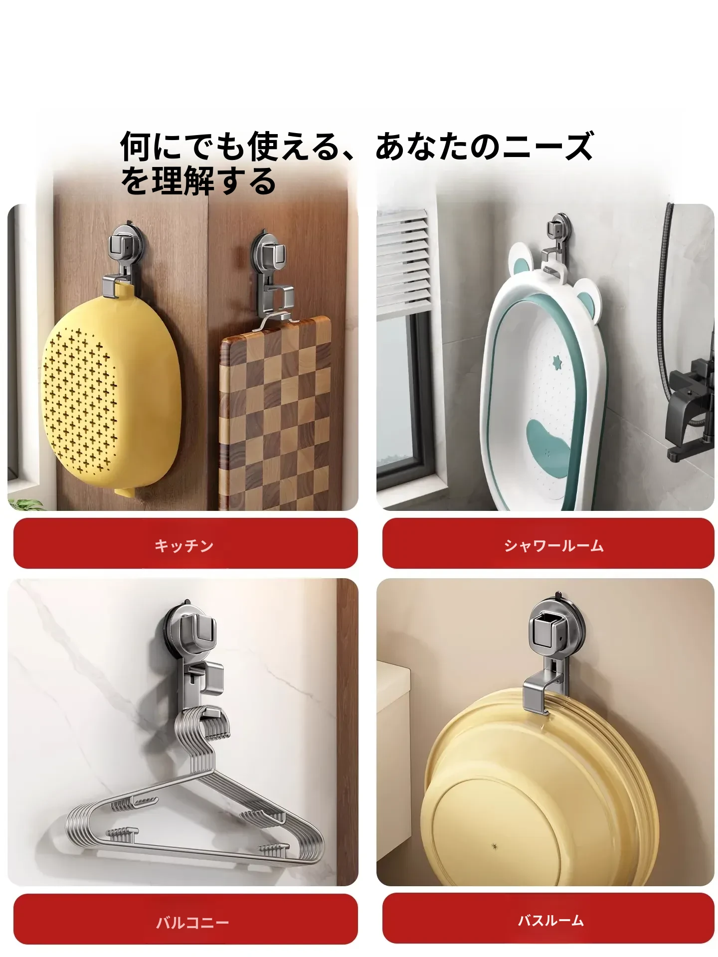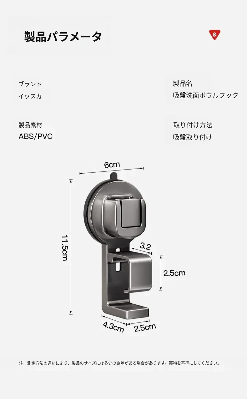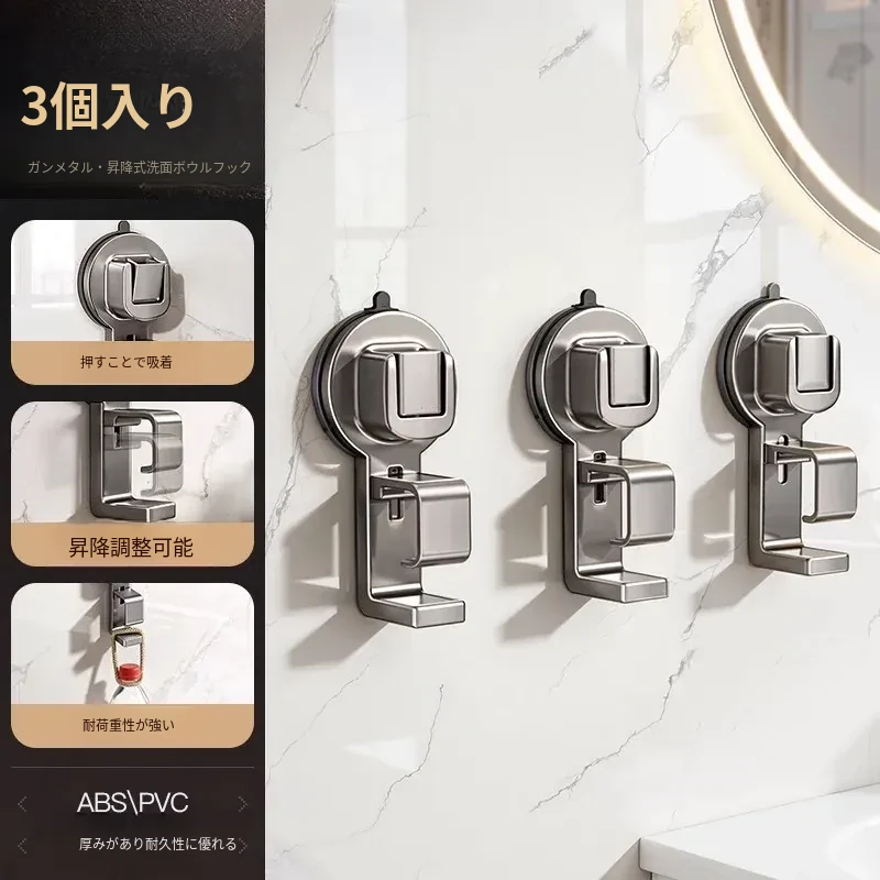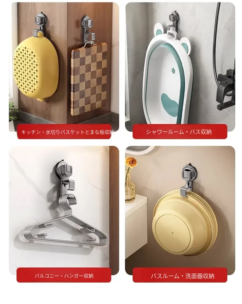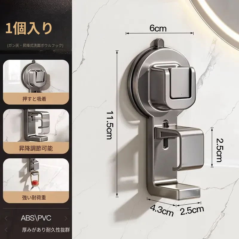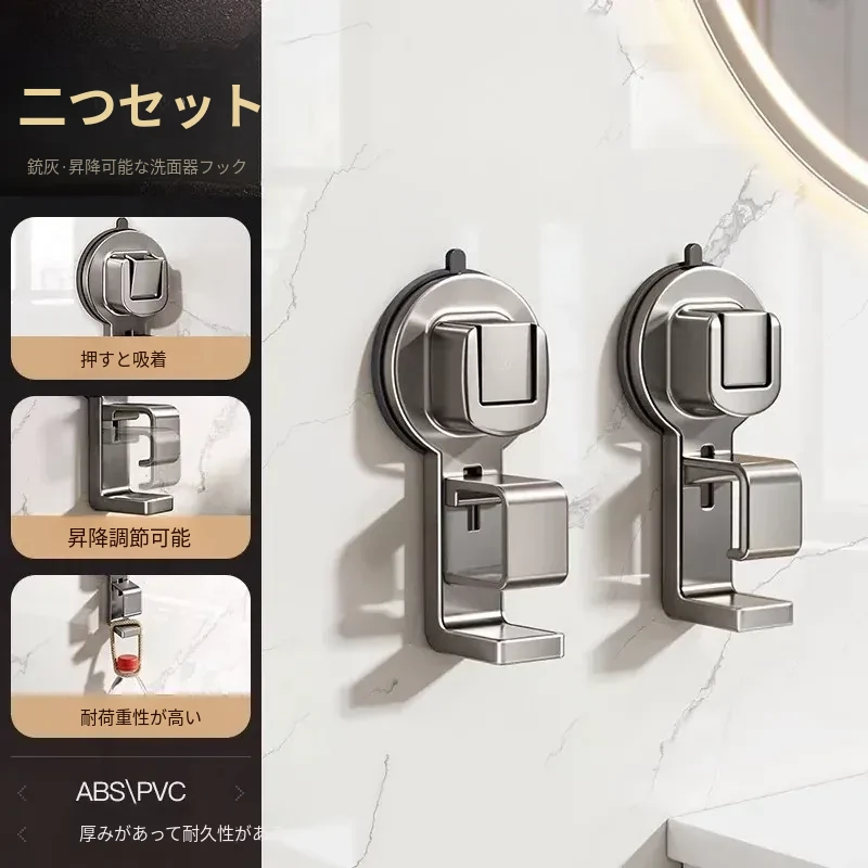 吸盤付き洗面器フック - バスルームの収納革命!穴を開けずに簡単取り付け、トイレや浴室で使える便利なアイテムです。家庭の必需品、スッキリ整理整頓を実現!