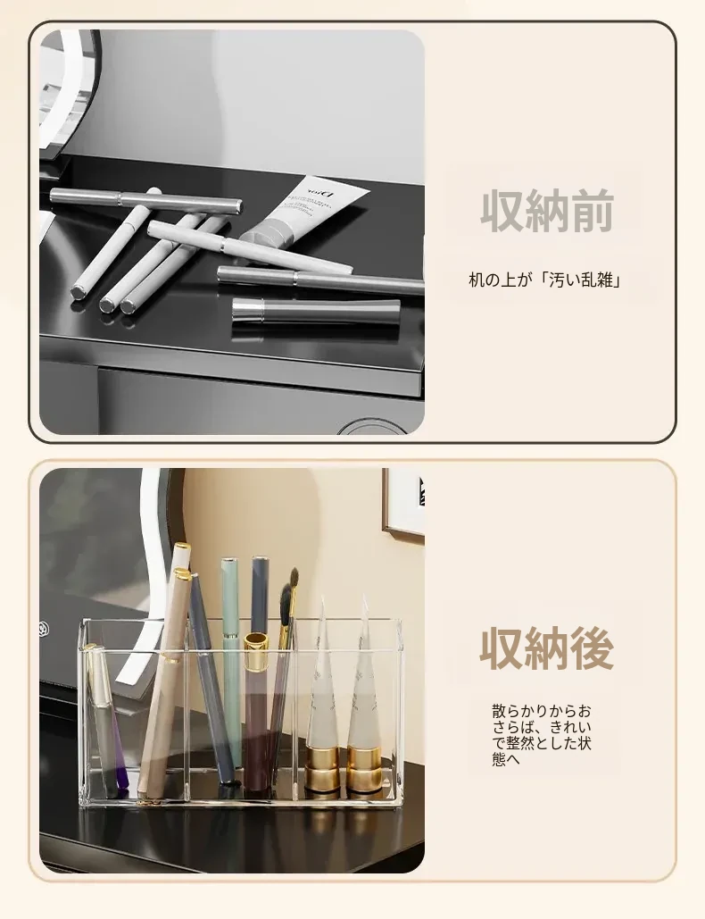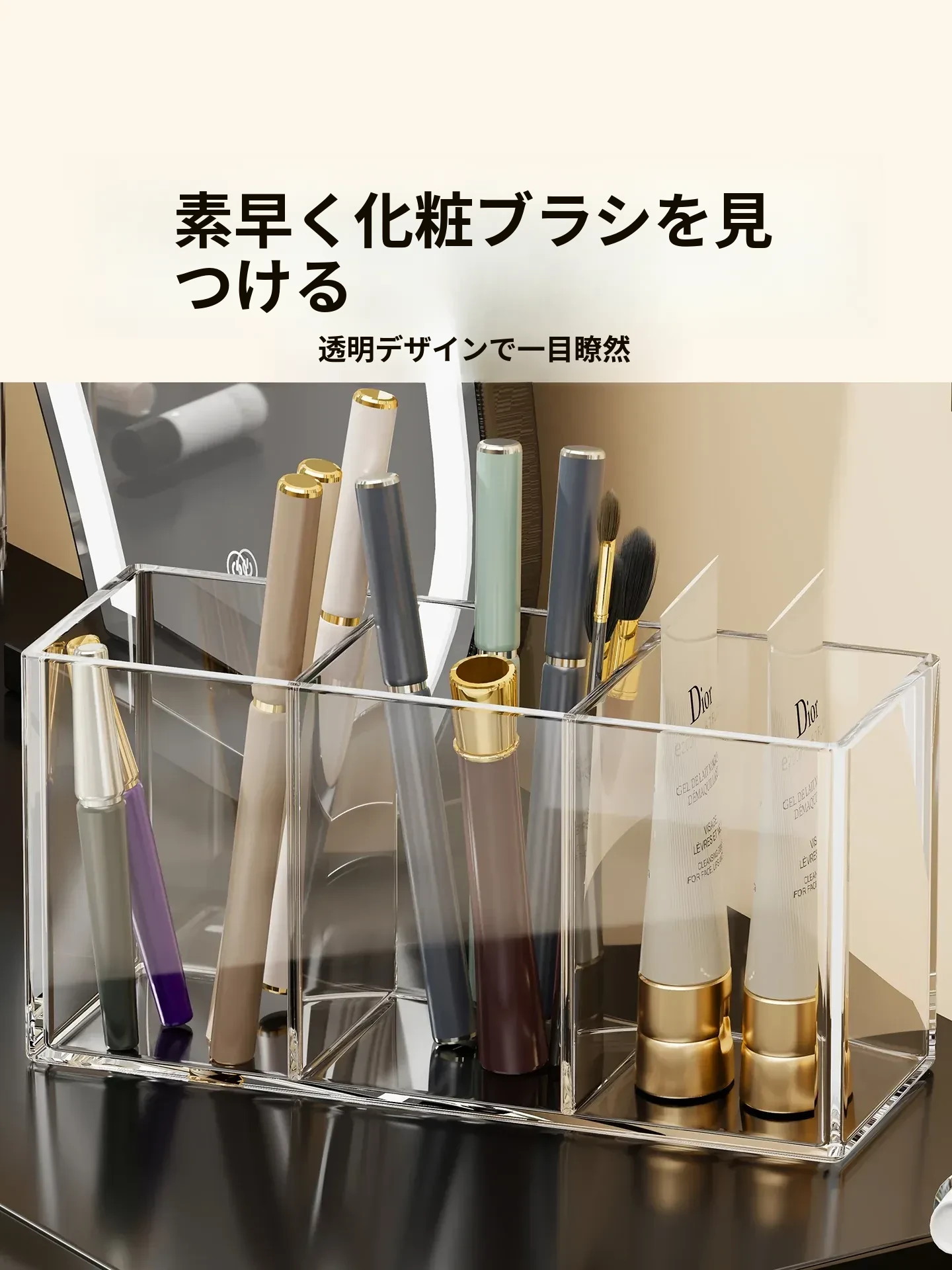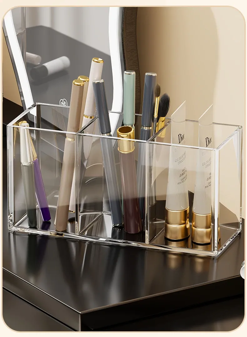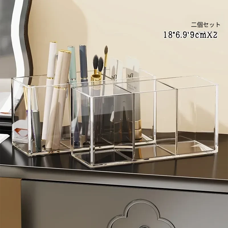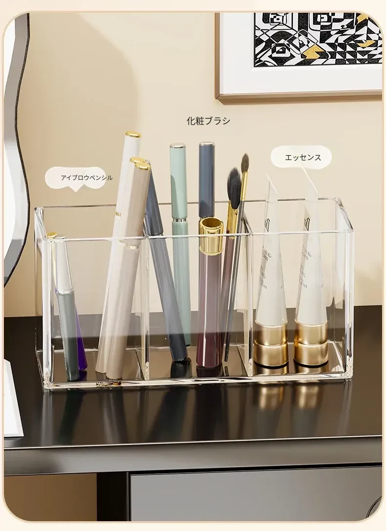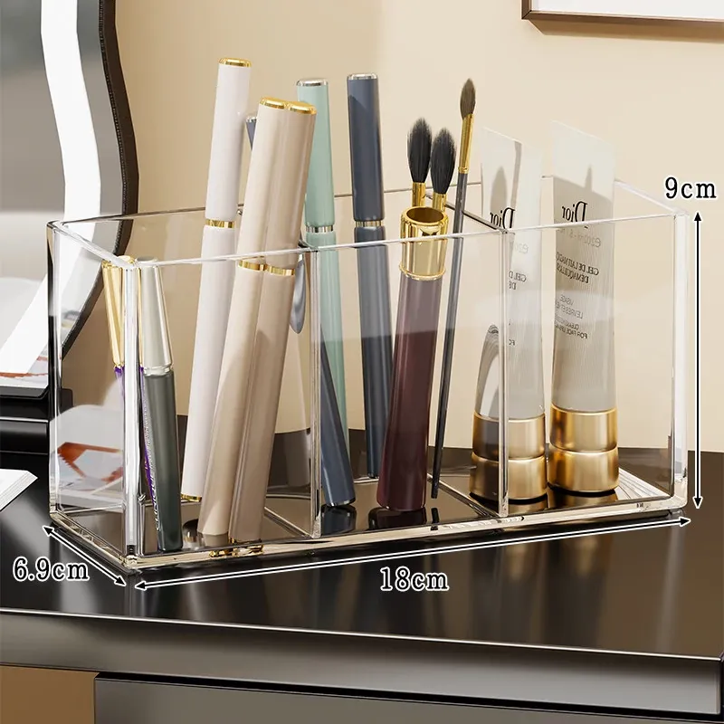 メイクブラシ収納筒 - デスクトップ用仕切り付き化粧品ラック!透明デザインで口紅やアイブロウペンシルも整理整頓。使いやすさ抜群のコーム整理バケツ、あなたのメイク環境を美しく整えます!