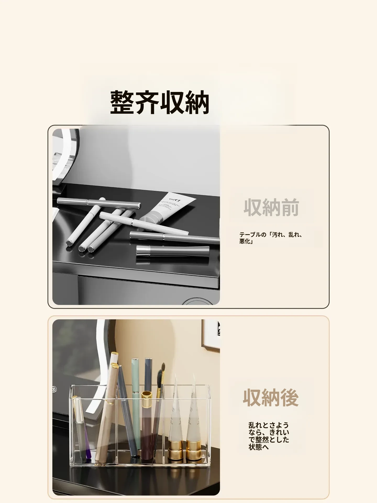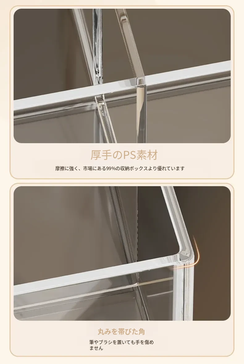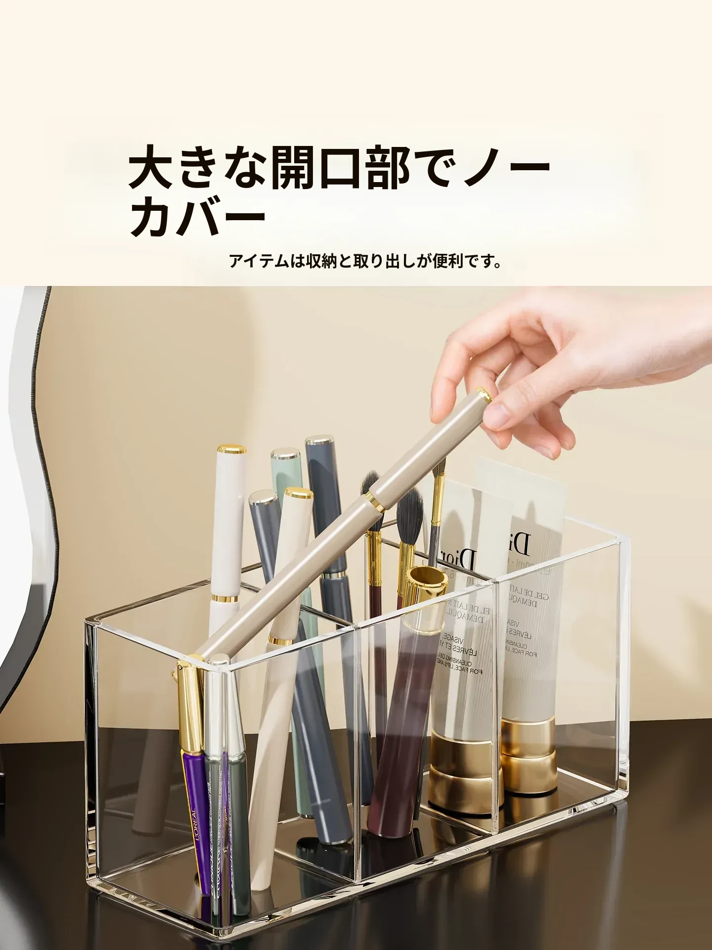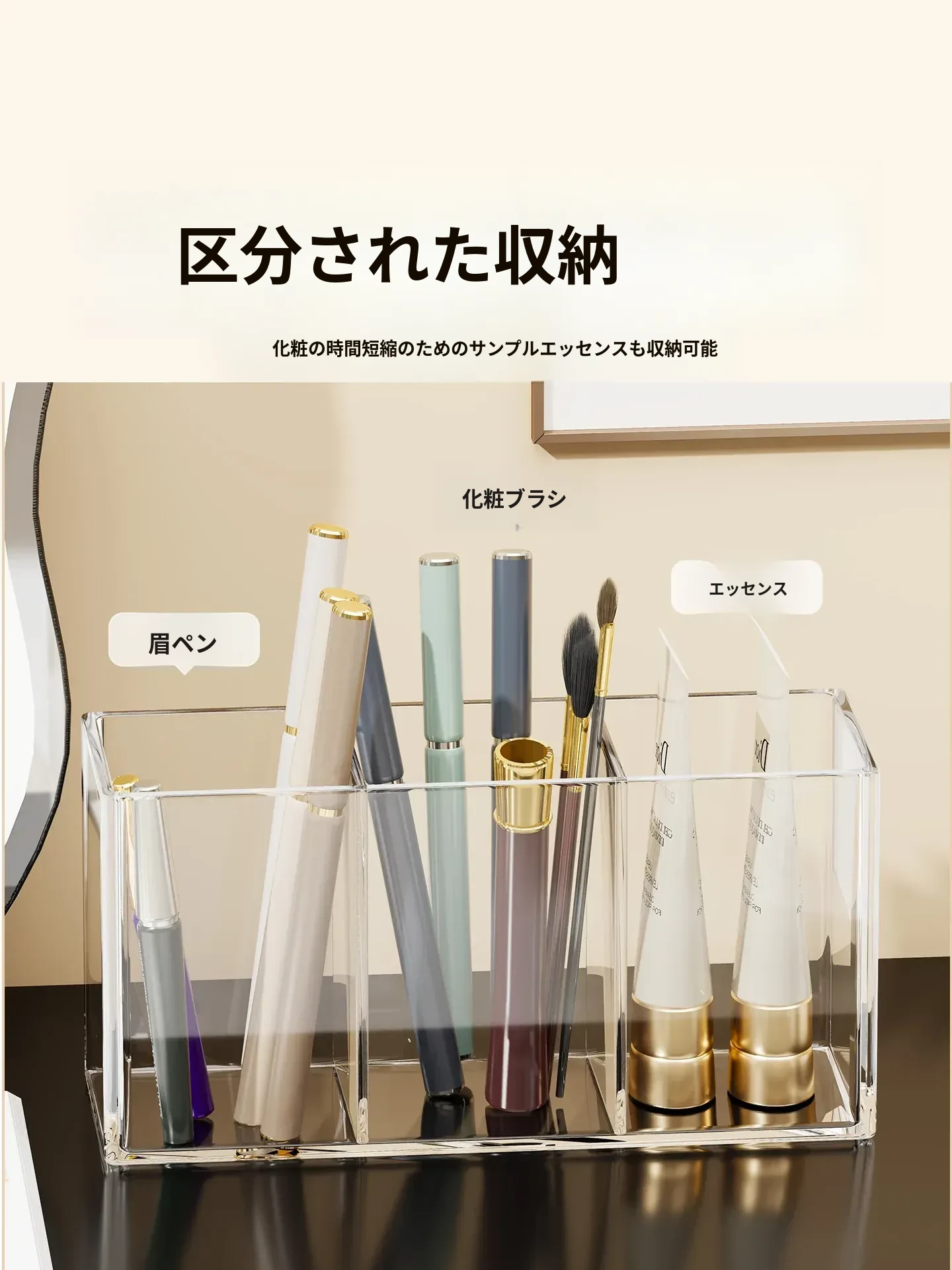 メイクブラシ収納筒 - デスクトップ用仕切り付き化粧品ラック!透明デザインで口紅やアイブロウペンシルも整理整頓。使いやすさ抜群のコーム整理バケツ、あなたのメイク環境を美しく整えます!