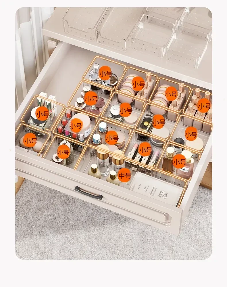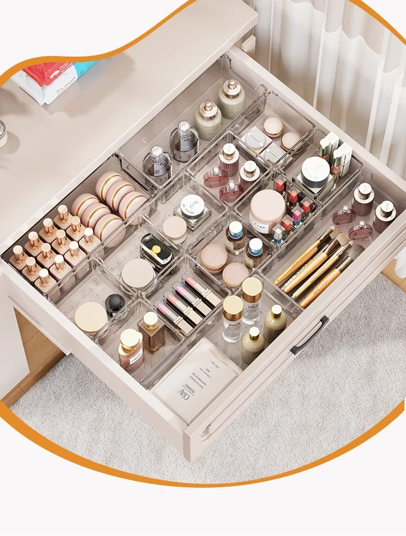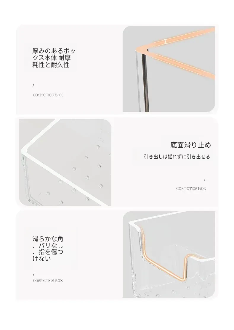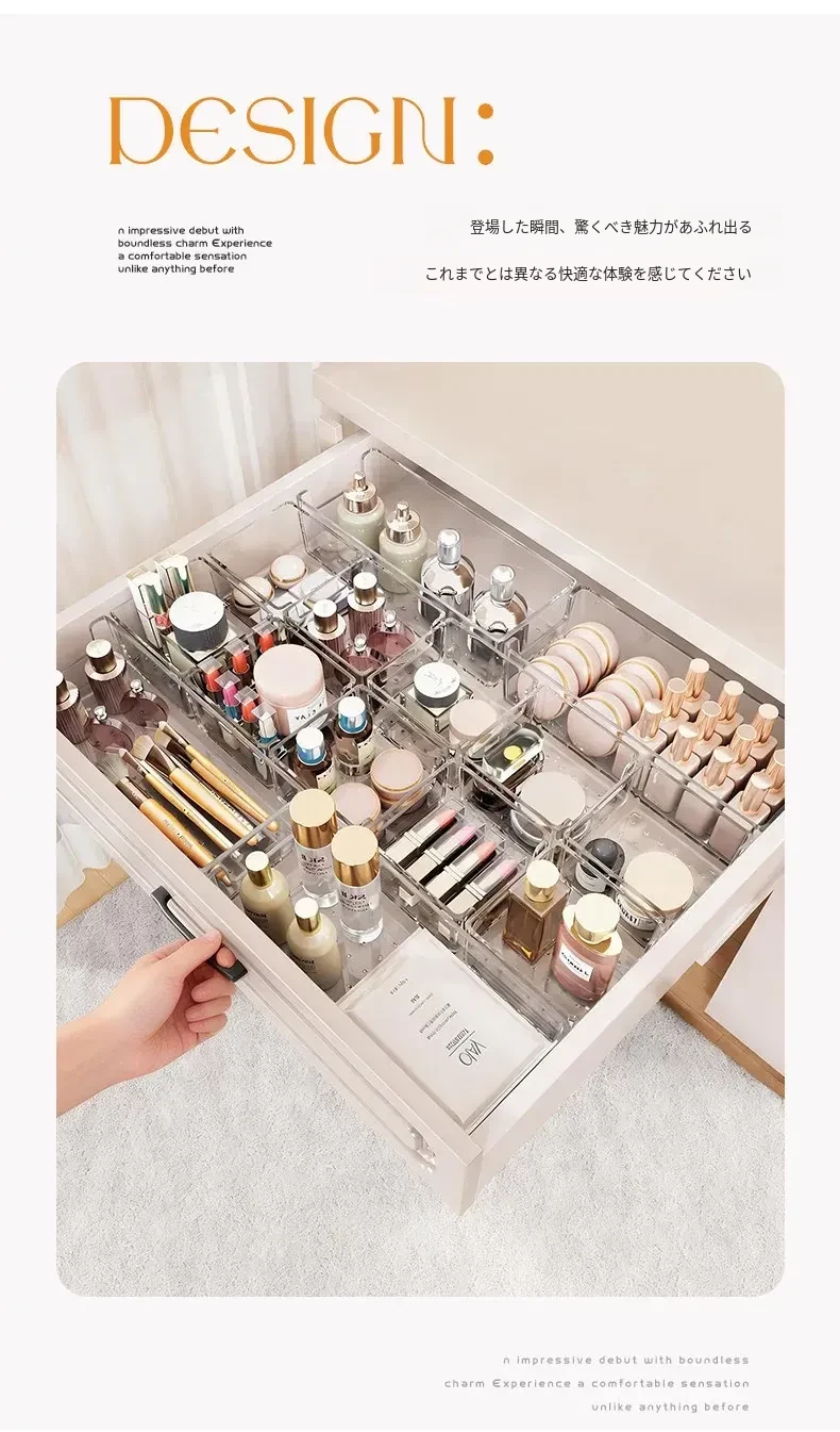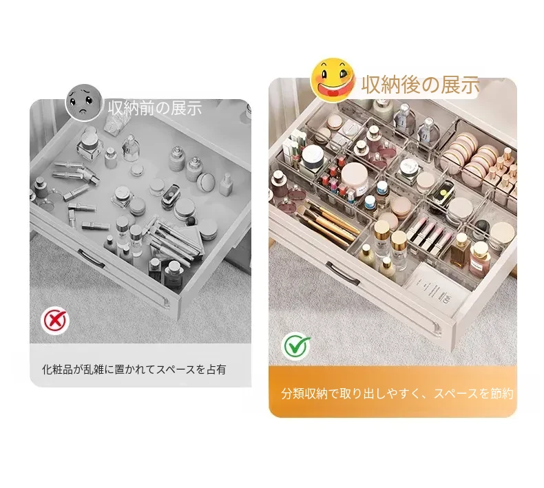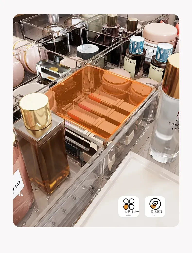 透明化粧品収納ボックス|メイク台用引き出し仕切り|化粧ブラシスタンド&リップ収納に最適!深いキャビネット用スペース活用ボックスで、あなたのメイク道具をすっきり整理!