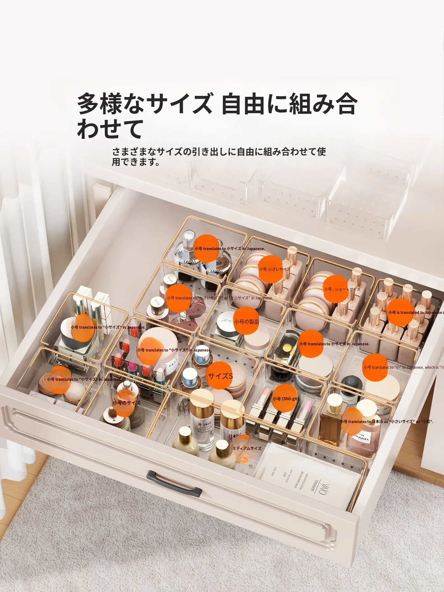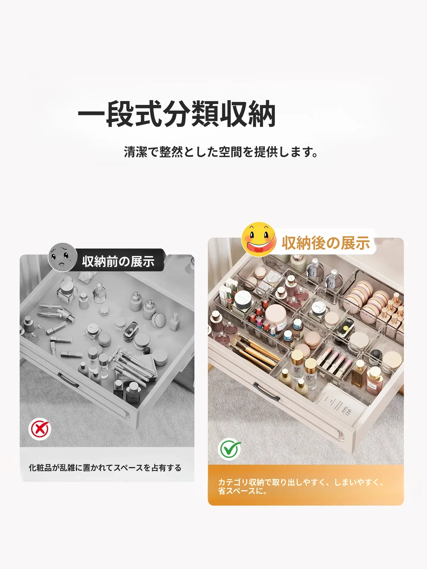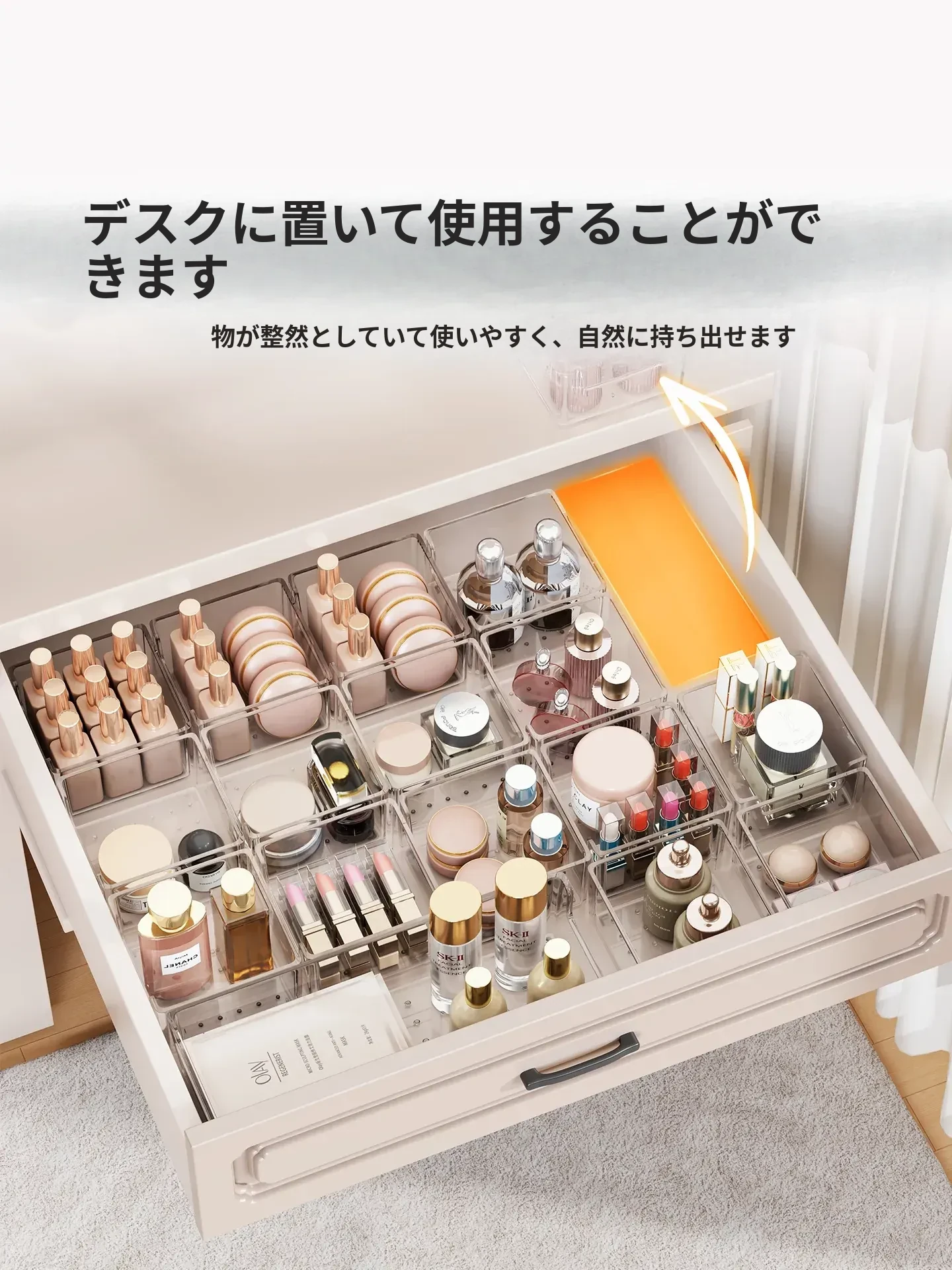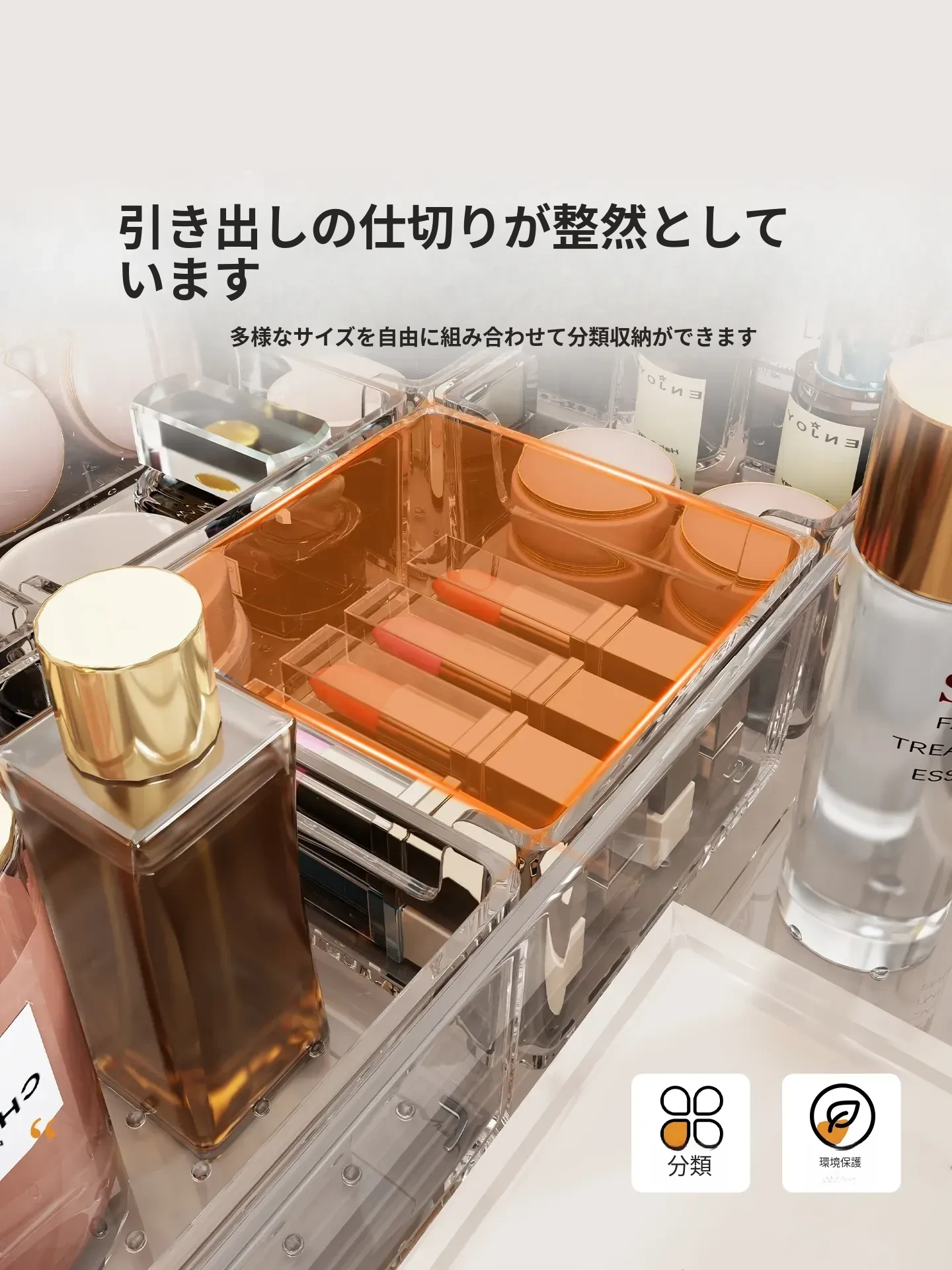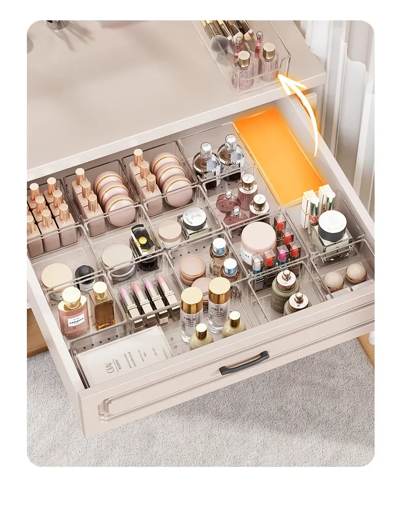 透明化粧品収納ボックス|メイク台用引き出し仕切り|化粧ブラシスタンド&リップ収納に最適!深いキャビネット用スペース活用ボックスで、あなたのメイク道具をすっきり整理!
