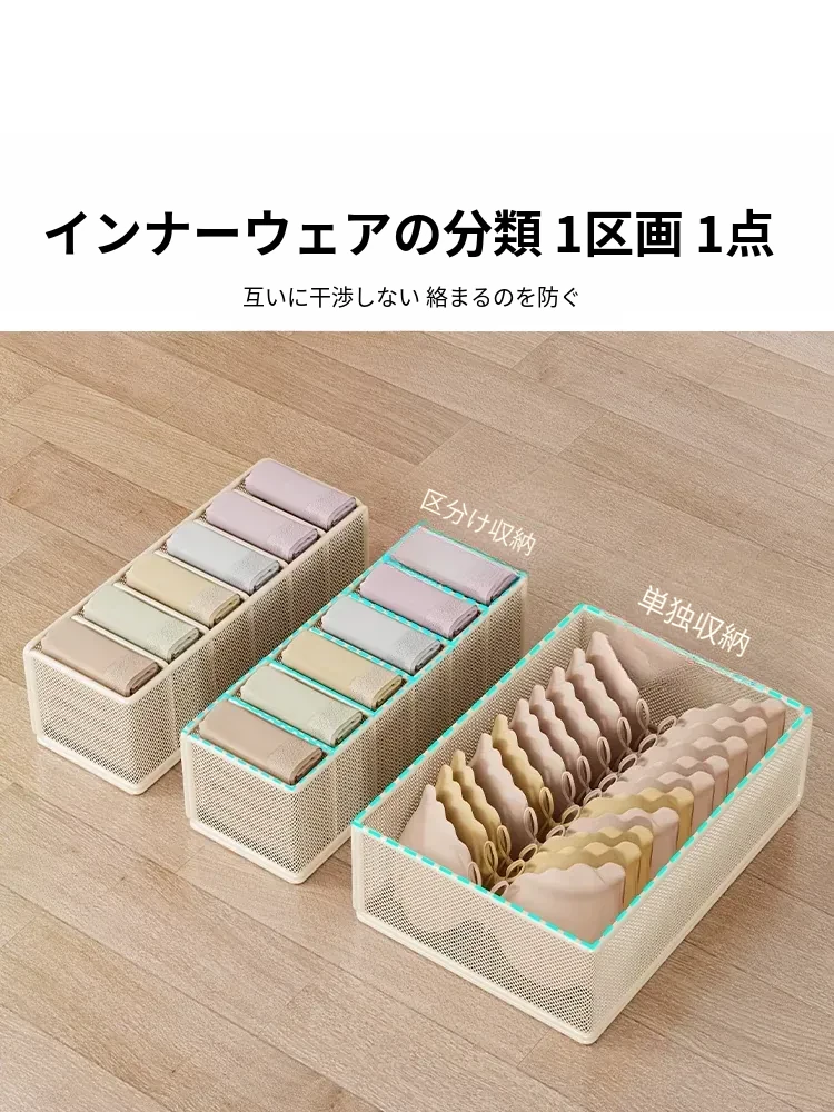 家用インナー収納ボックス|ブラジャー・靴下・下着をスッキリ整理!引き出しやクローゼットに最適な仕分け収納バスケットで、毎日のコーディネートをもっと快適に!