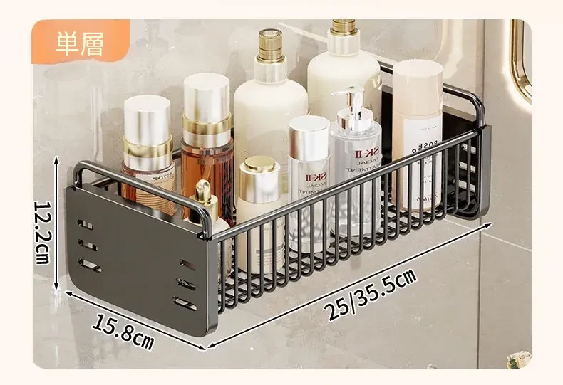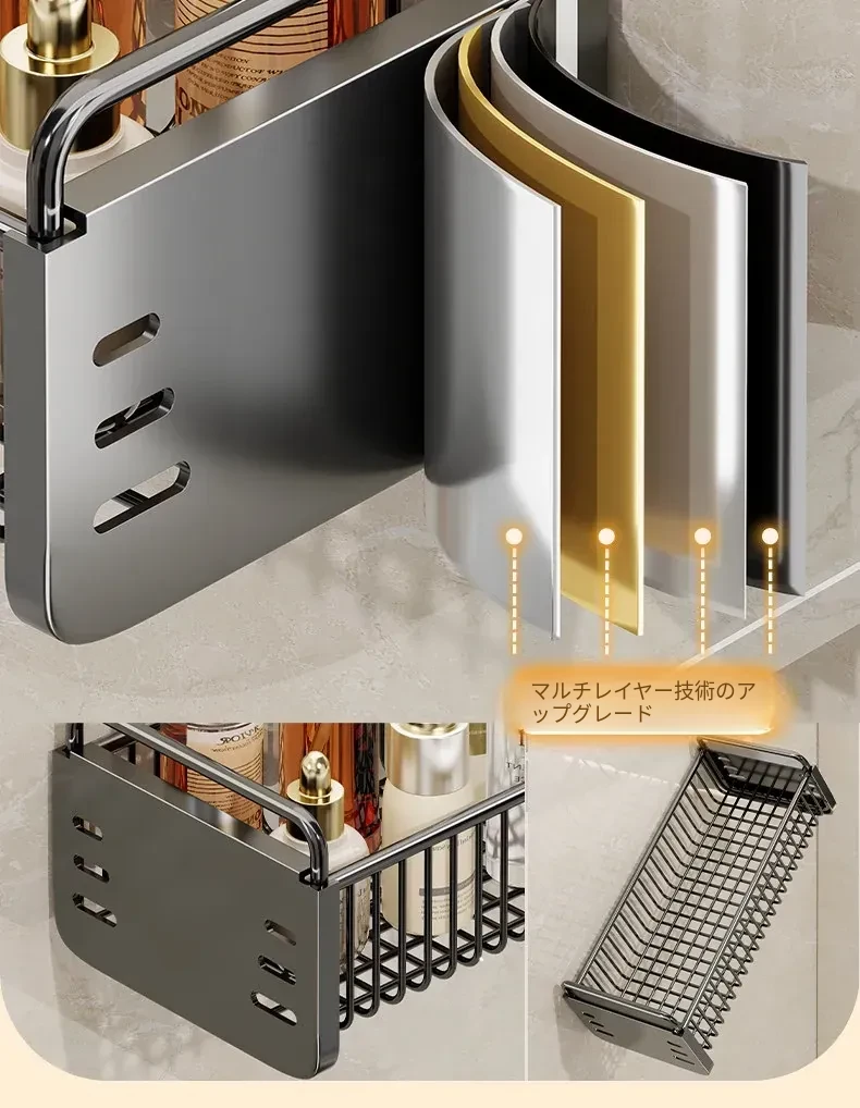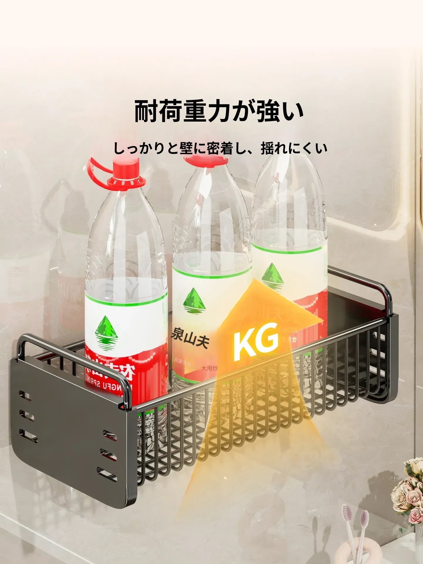 壁掛け収納棚 トイレ・洗面台用 穴あけ不要!洗面料・フェイスマスクもスッキリ収納できる壁面収納ラックで、スッキリとしたバスルームを実現!