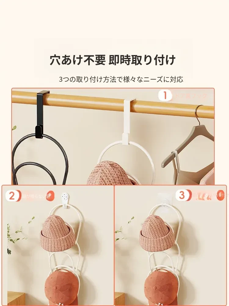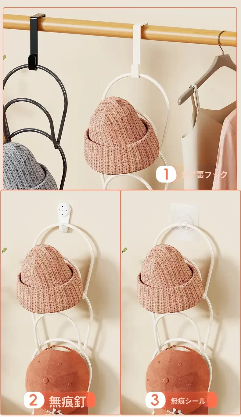 壁掛け帽子収納フック - スタイリッシュな家用キャップラック、キャップやバッグのディスプレイに最適!スペースを有効活用し、整理整頓を実現します。おしゃれで実用的な収納ソリューション!
