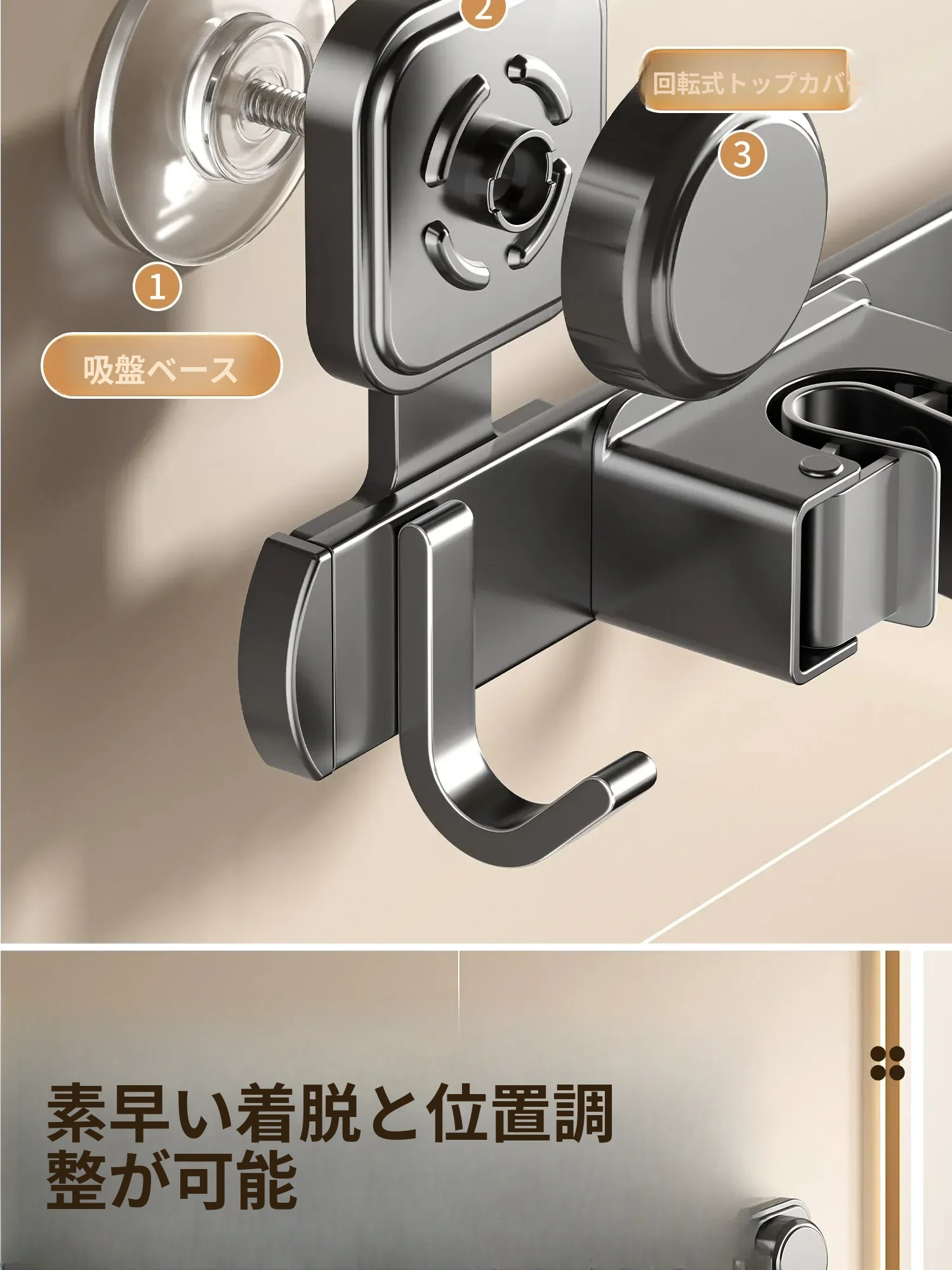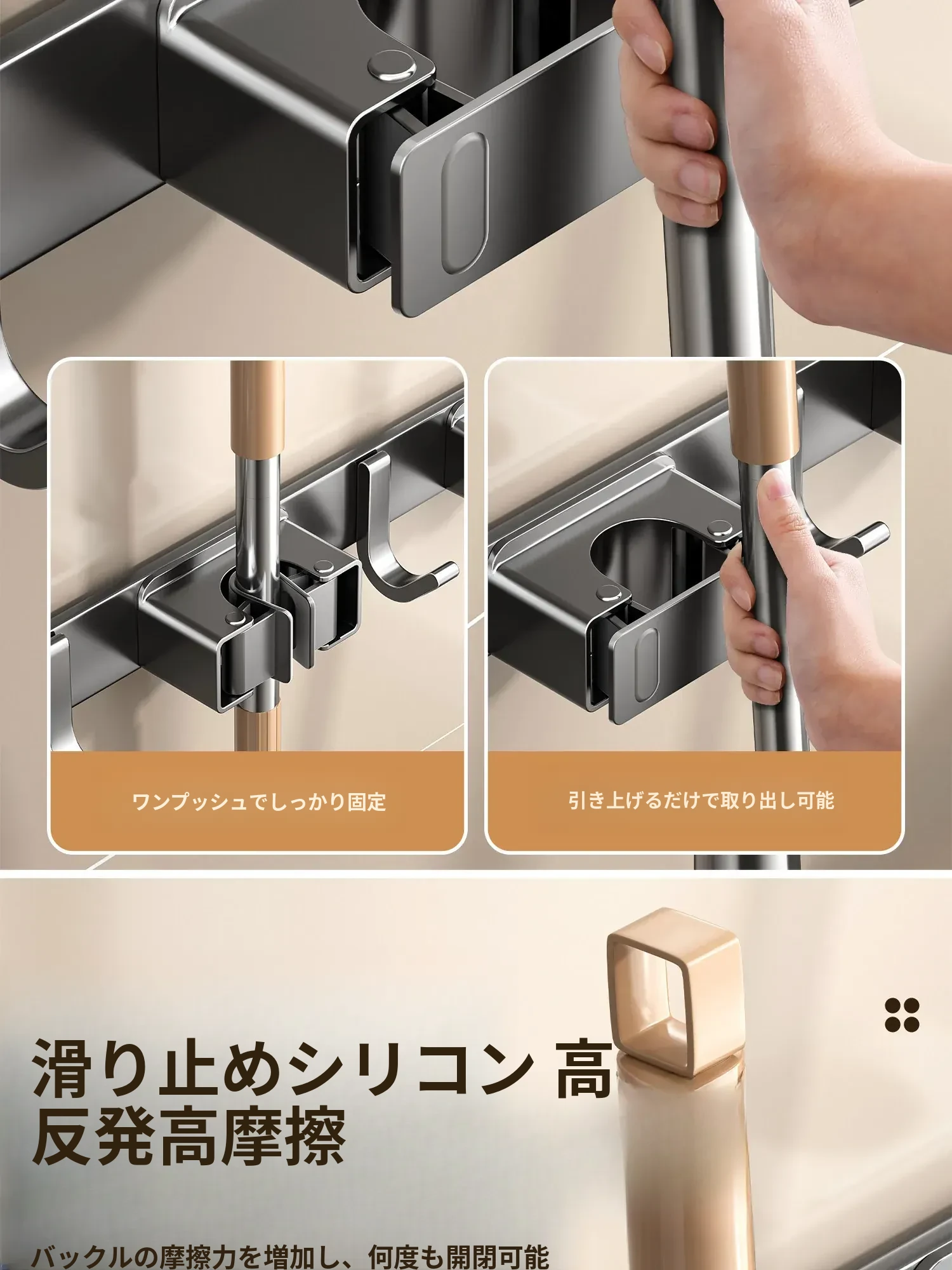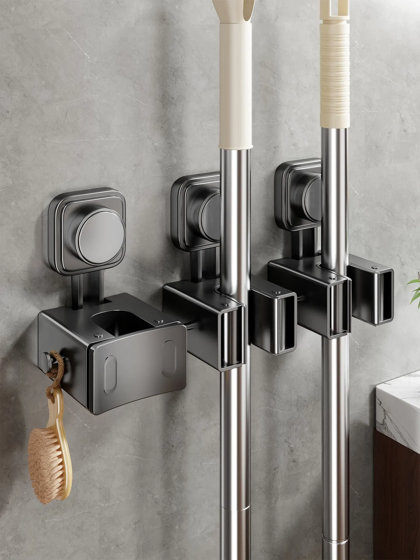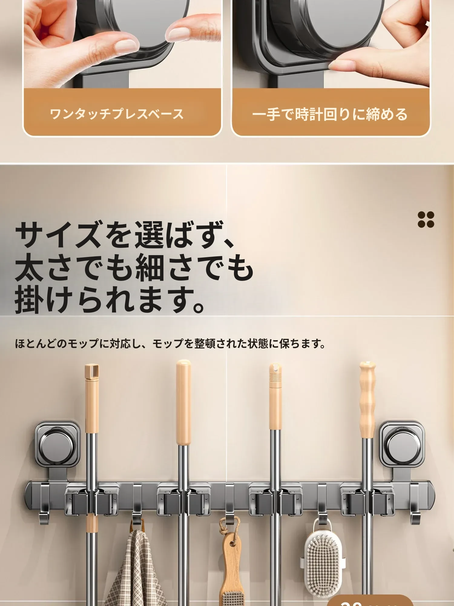 壁掛けモップクリップ 強力吸盤フック 取付不要の便利グッズ!トイレ掃除やバルコニーの衣類掛けに最適な掃除道具固定アイテム!