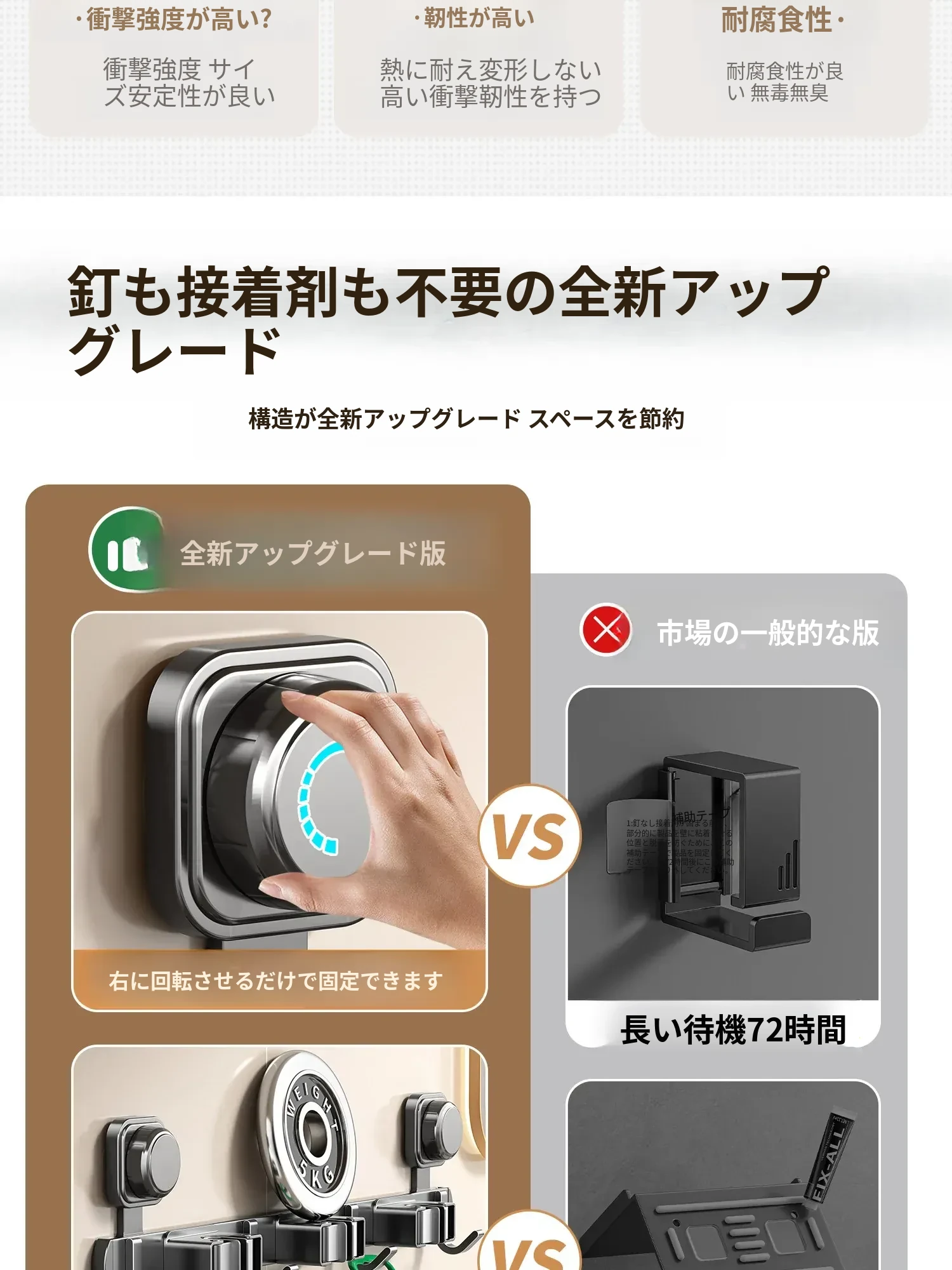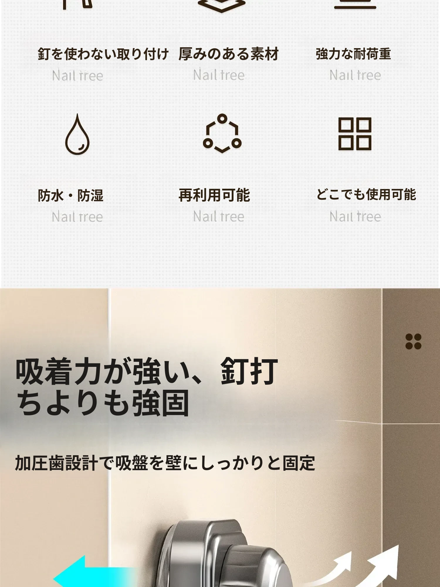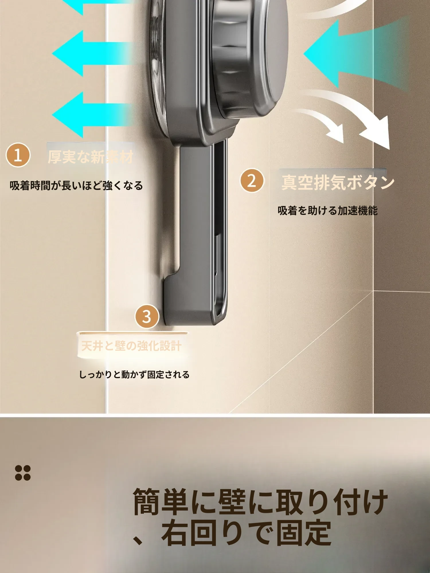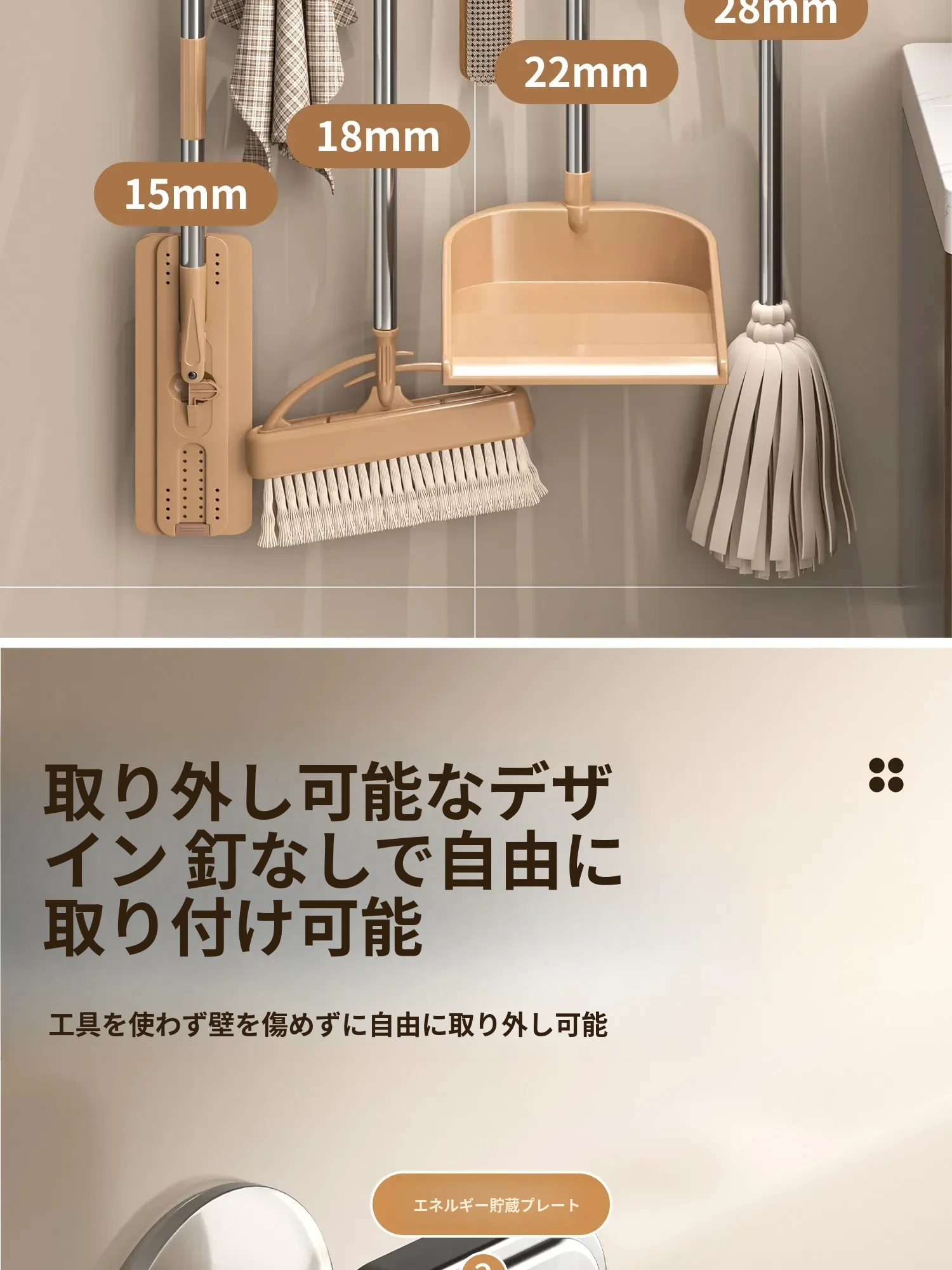 壁掛けモップクリップ 強力吸盤フック 取付不要の便利グッズ!トイレ掃除やバルコニーの衣類掛けに最適な掃除道具固定アイテム!