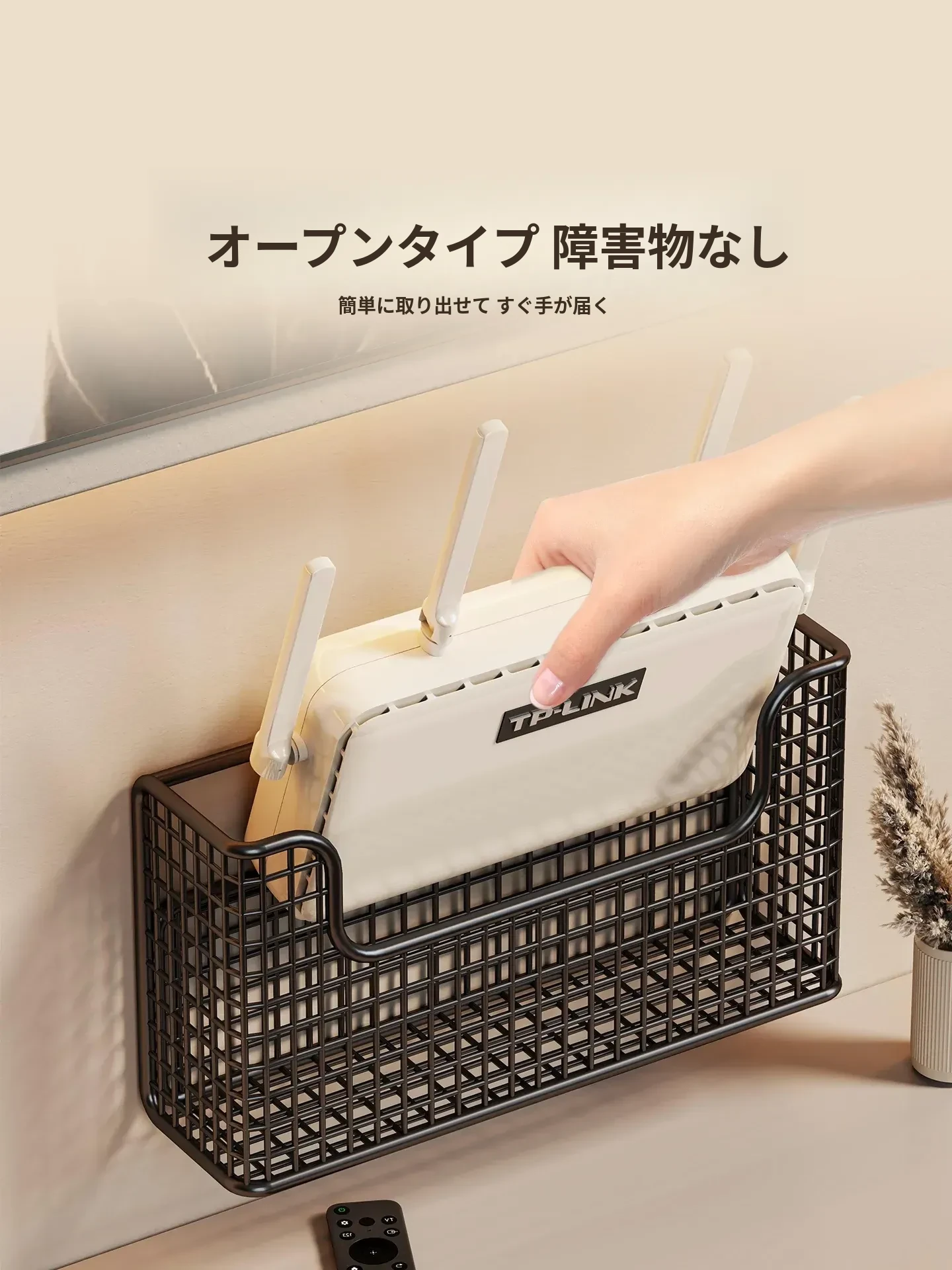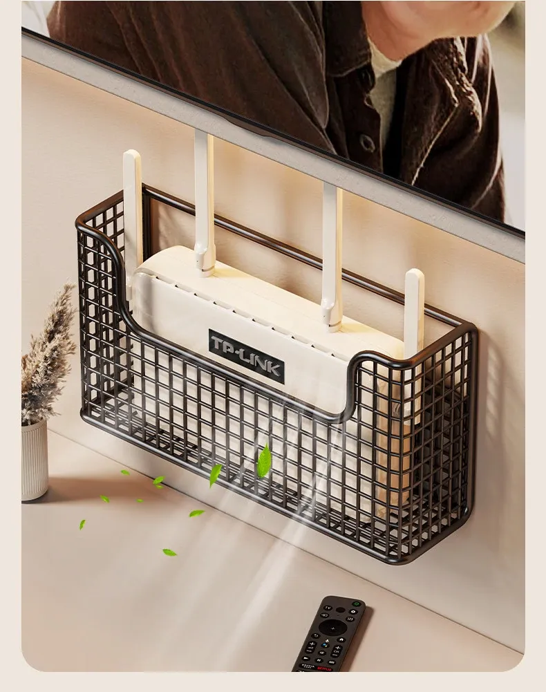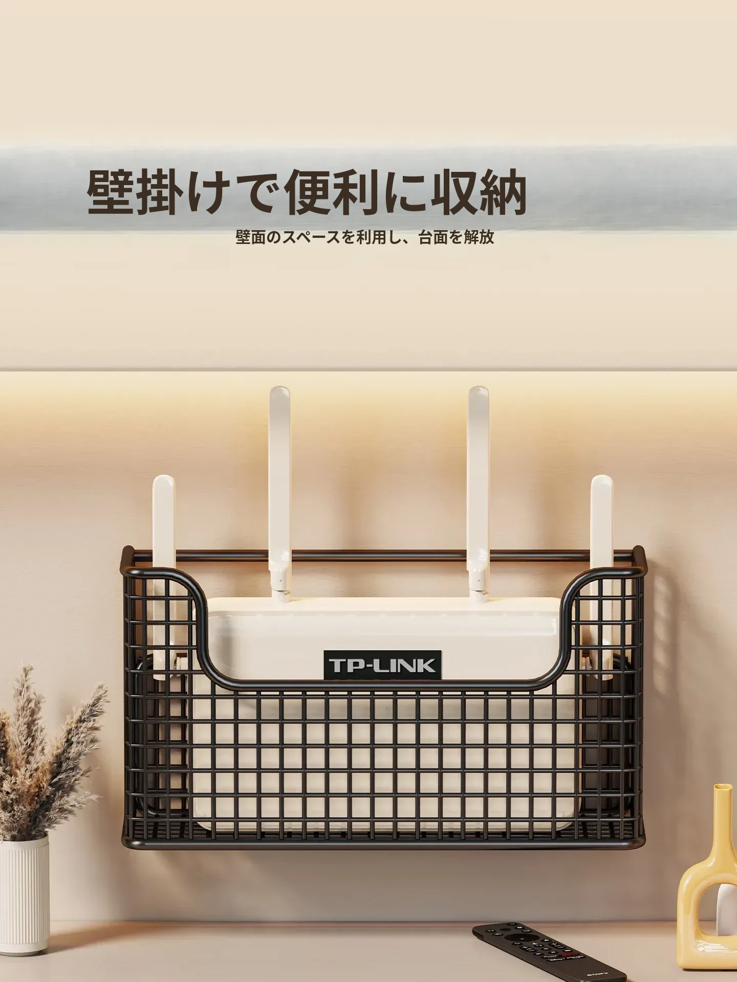 壁掛け収納ルーターケース | 工事不要で簡単設置!Wi-Fi固定器と光ファイバー・セットトップボックス用の整理棚 | スッキリしたリビング空間を実現!