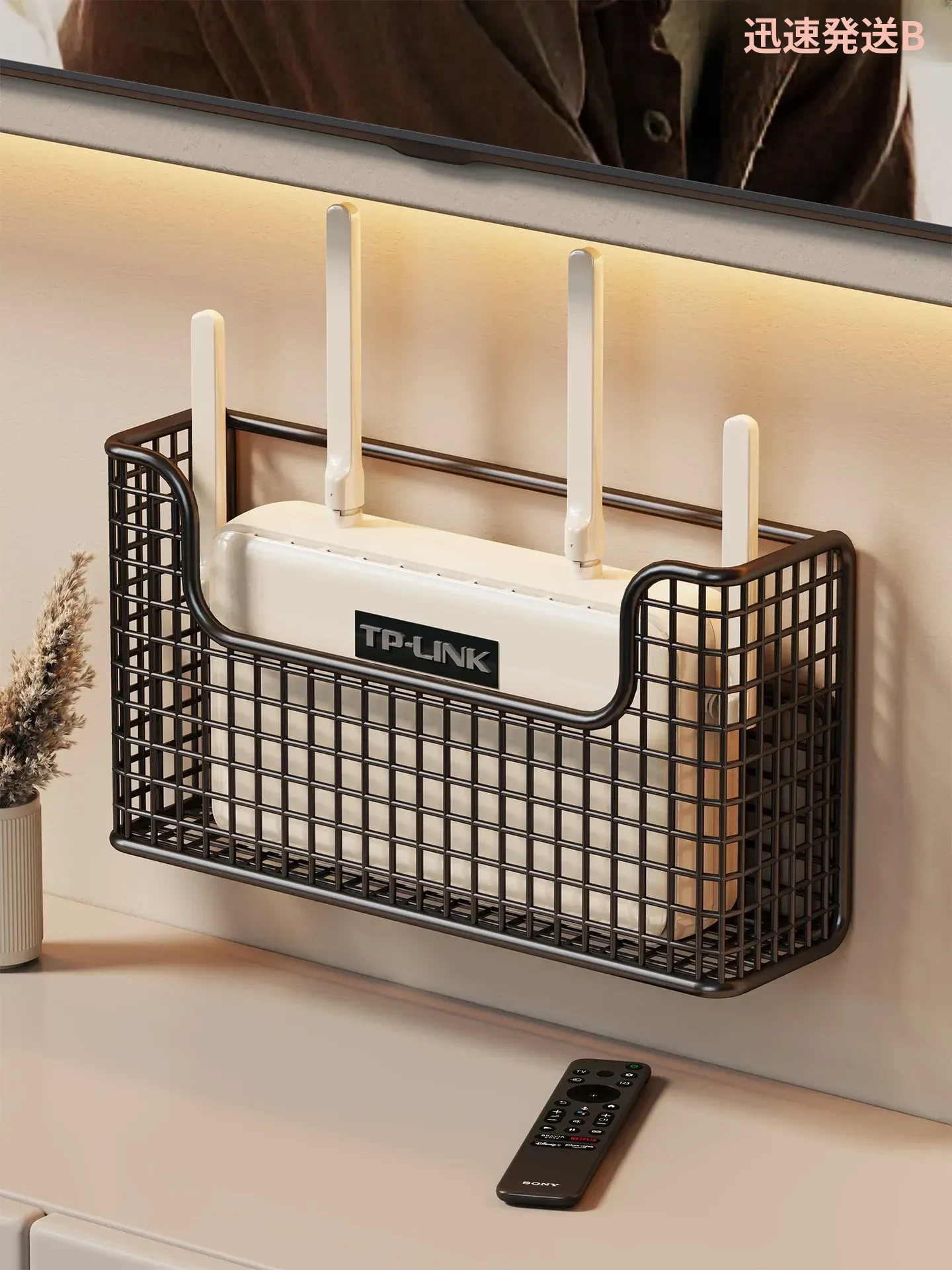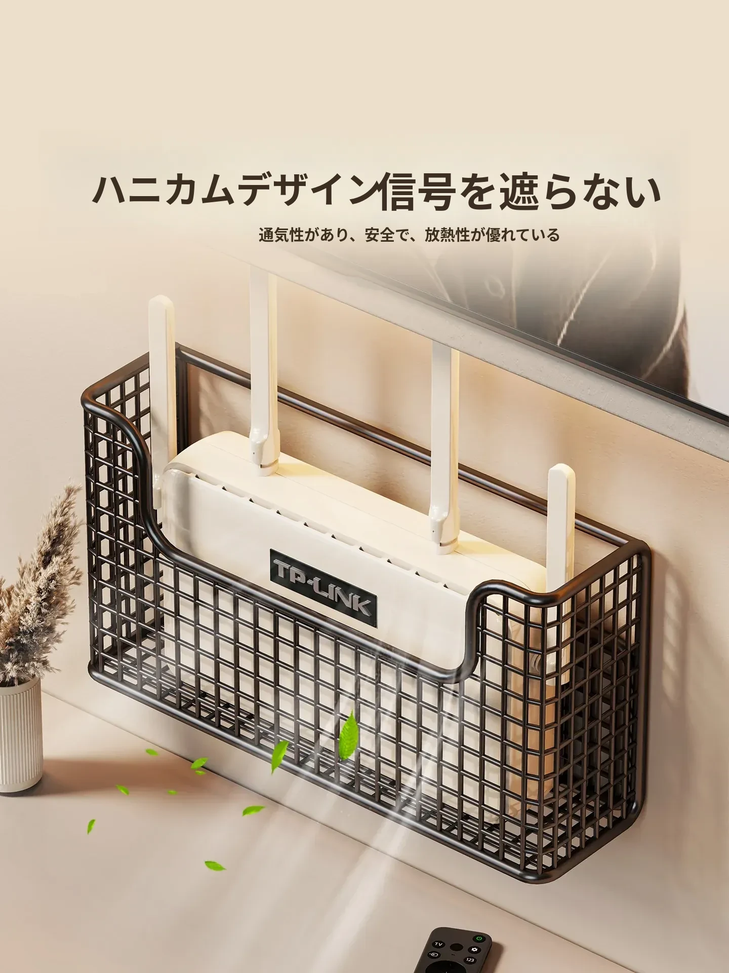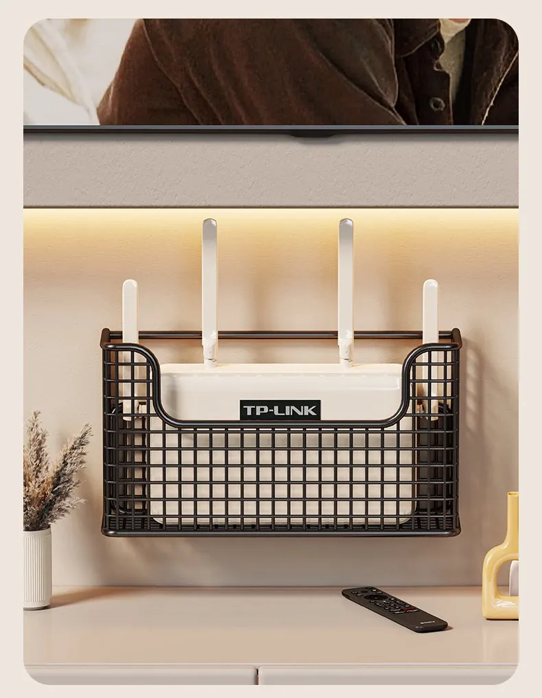壁掛け収納ルーターケース | 工事不要で簡単設置!Wi-Fi固定器と光ファイバー・セットトップボックス用の整理棚 | スッキリしたリビング空間を実現!