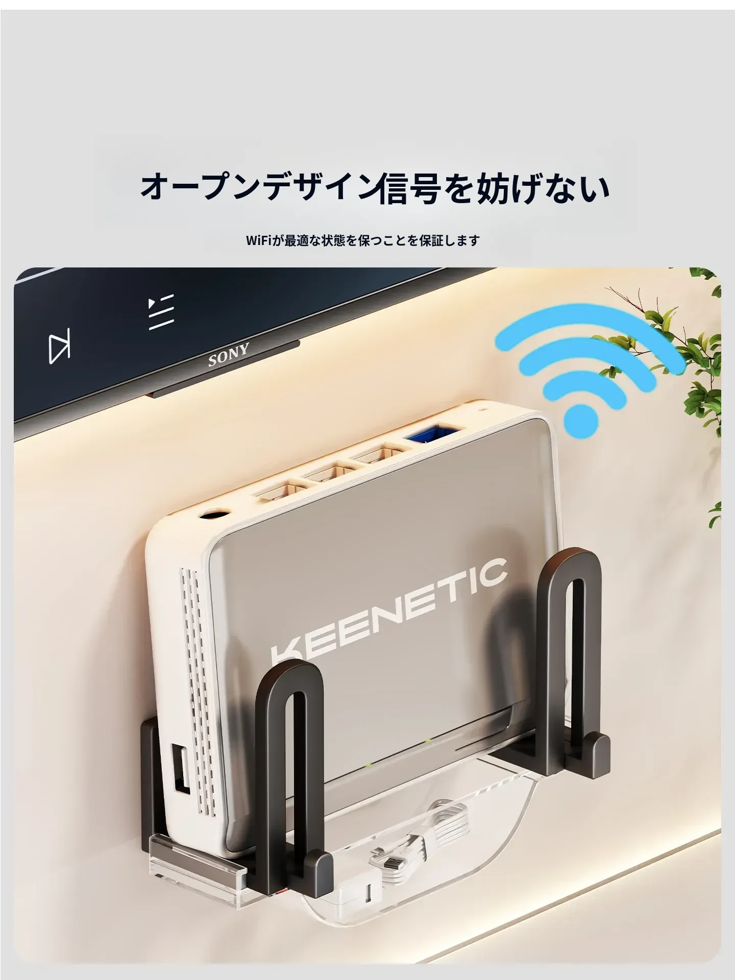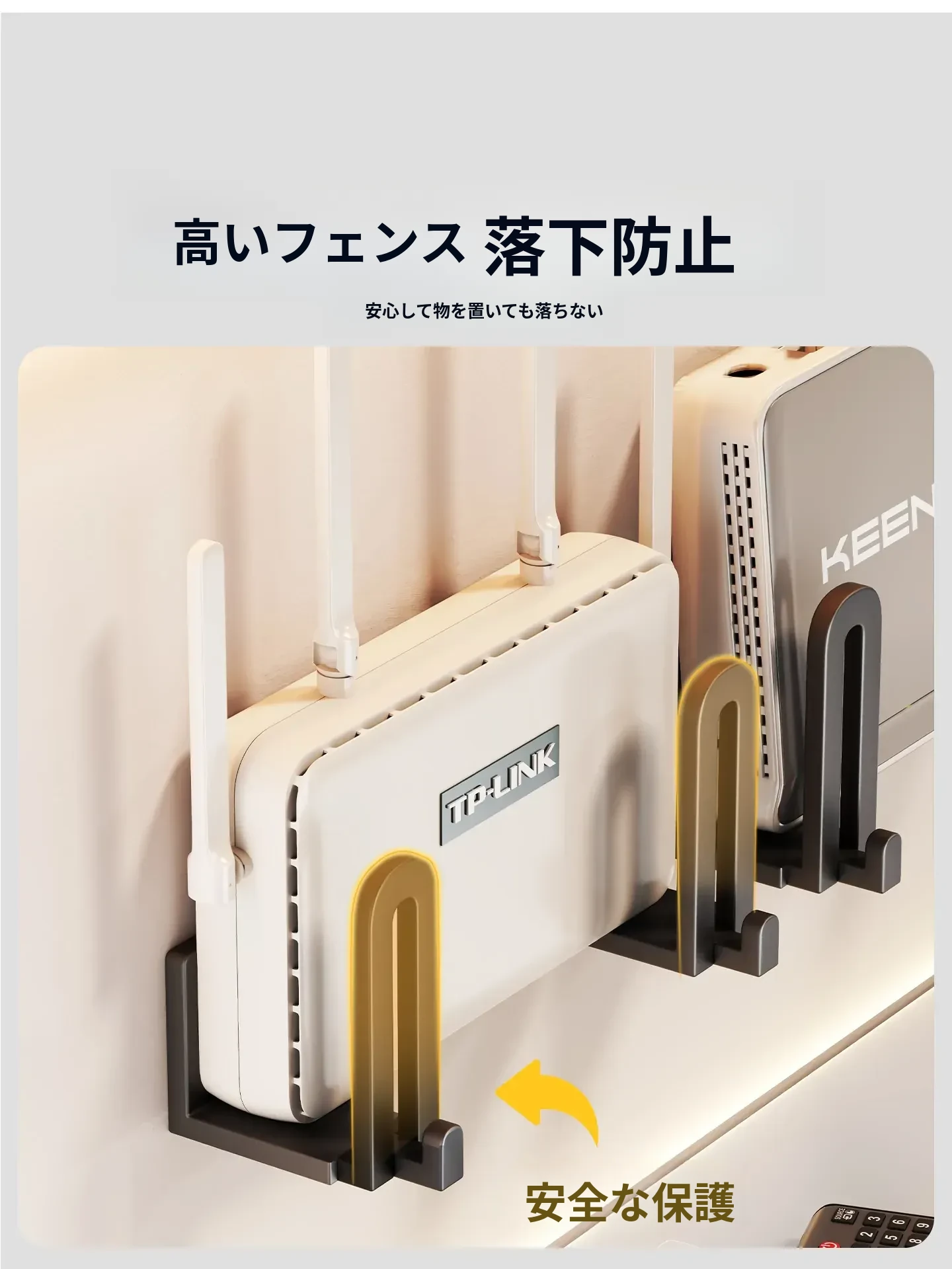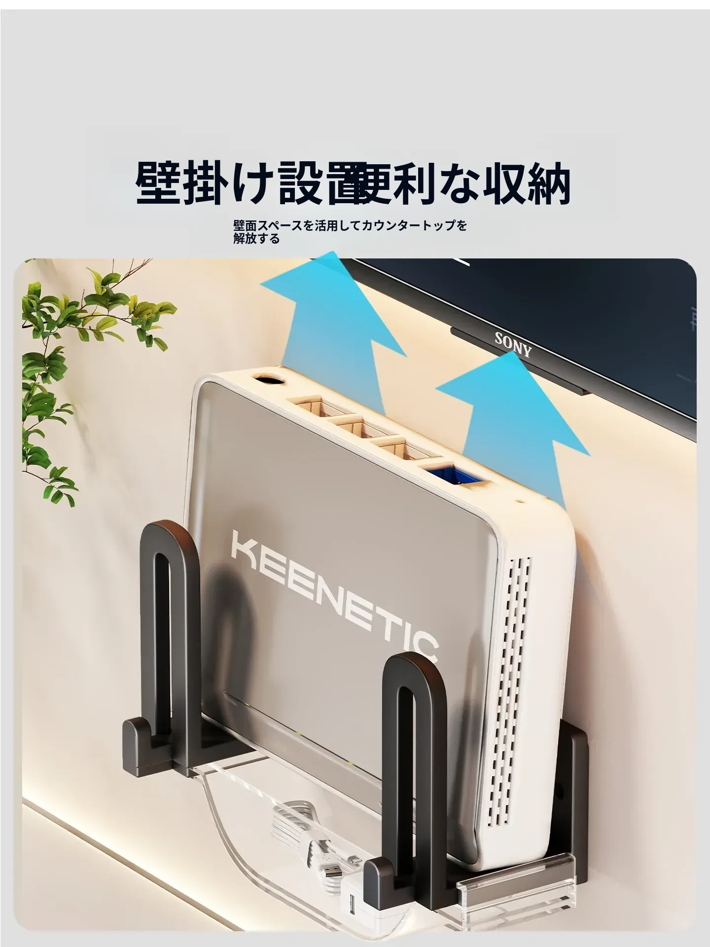 壁掛けルーター収納ラック - ネジ不要で簡単取り付け!セットトップボックスや光モデムにも最適なWi-Fi収納スタンド。お部屋をスッキリ整理整頓し、快適なネット環境を実現!