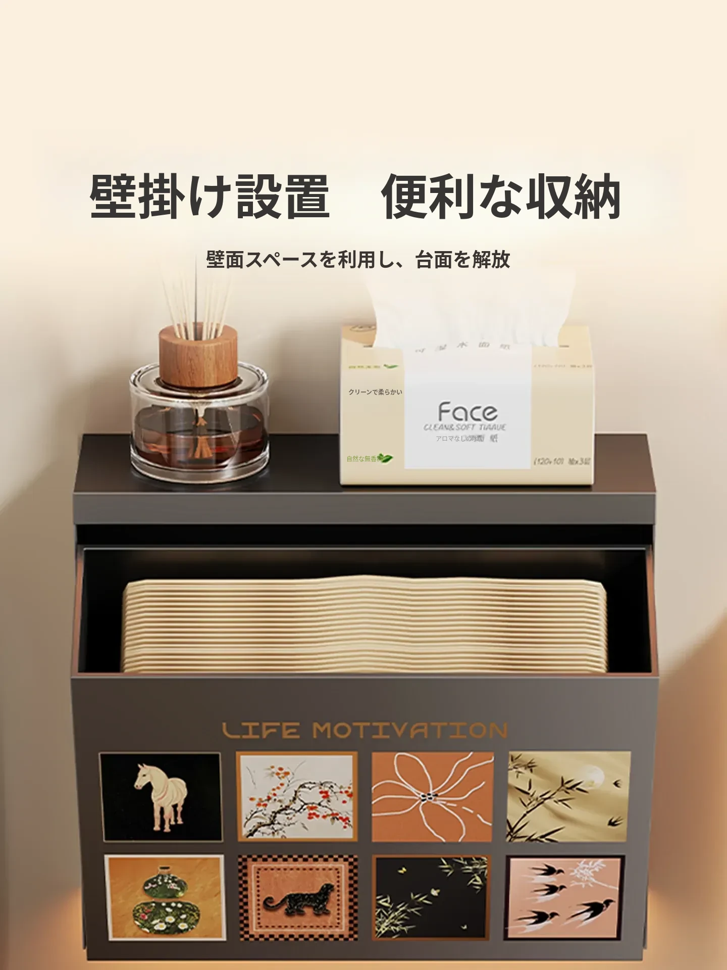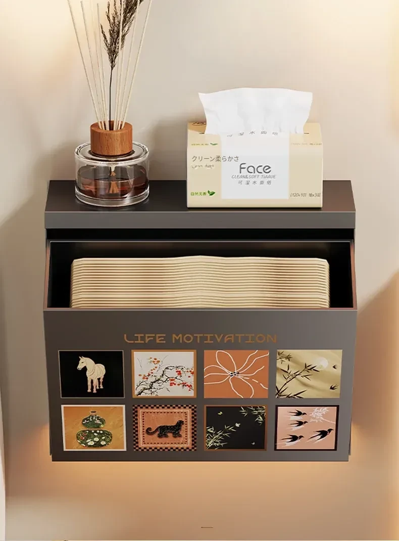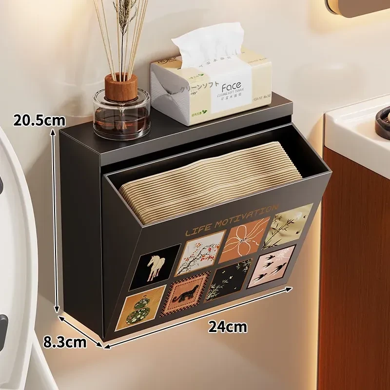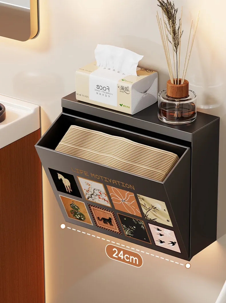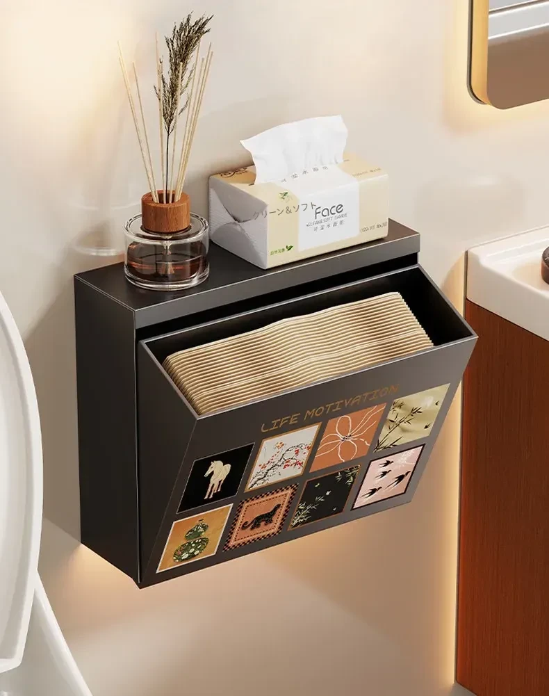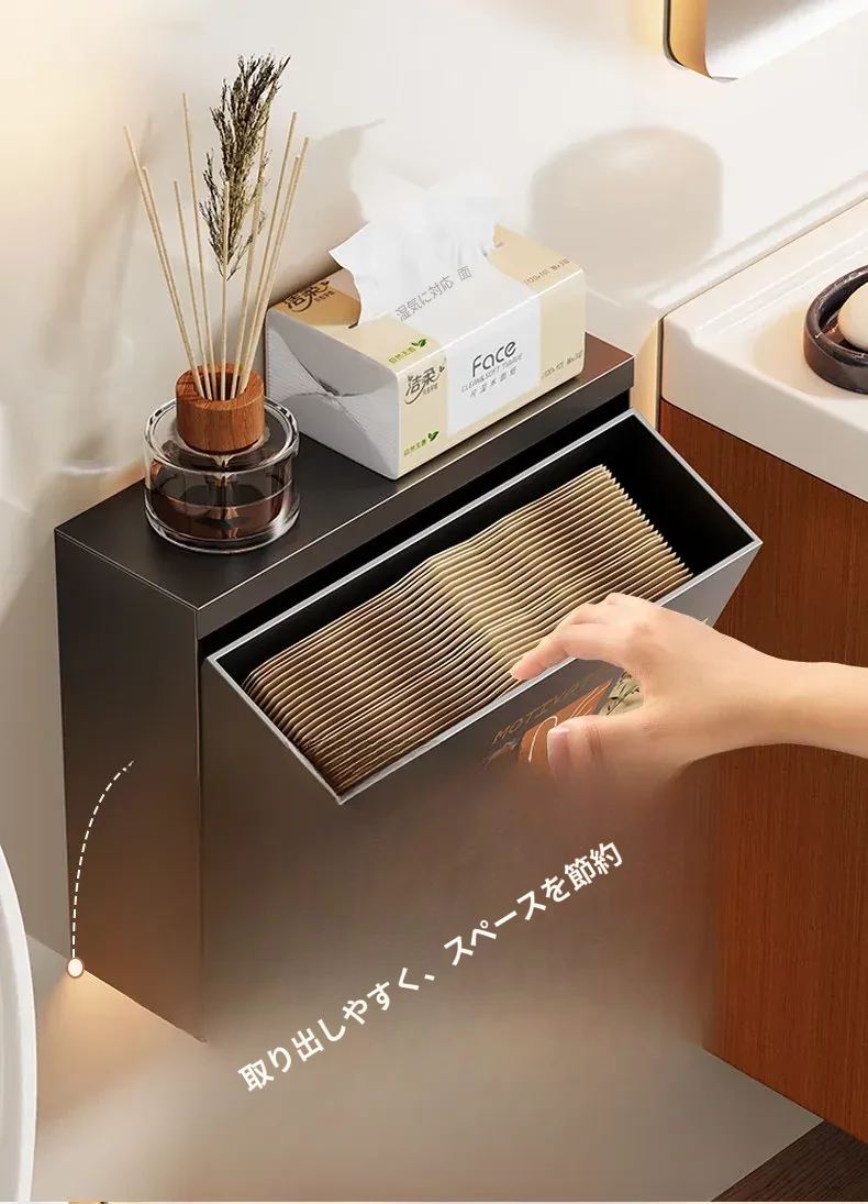 壁掛け収納ボックス - 穴を開けずに取り付け可能!バスルームの壁にぴったりな防水・防湿のティッシュ整理ボックスで、スッキリとした空間を実現!使いやすさ抜群で、あなたの生活をもっと便利にします。