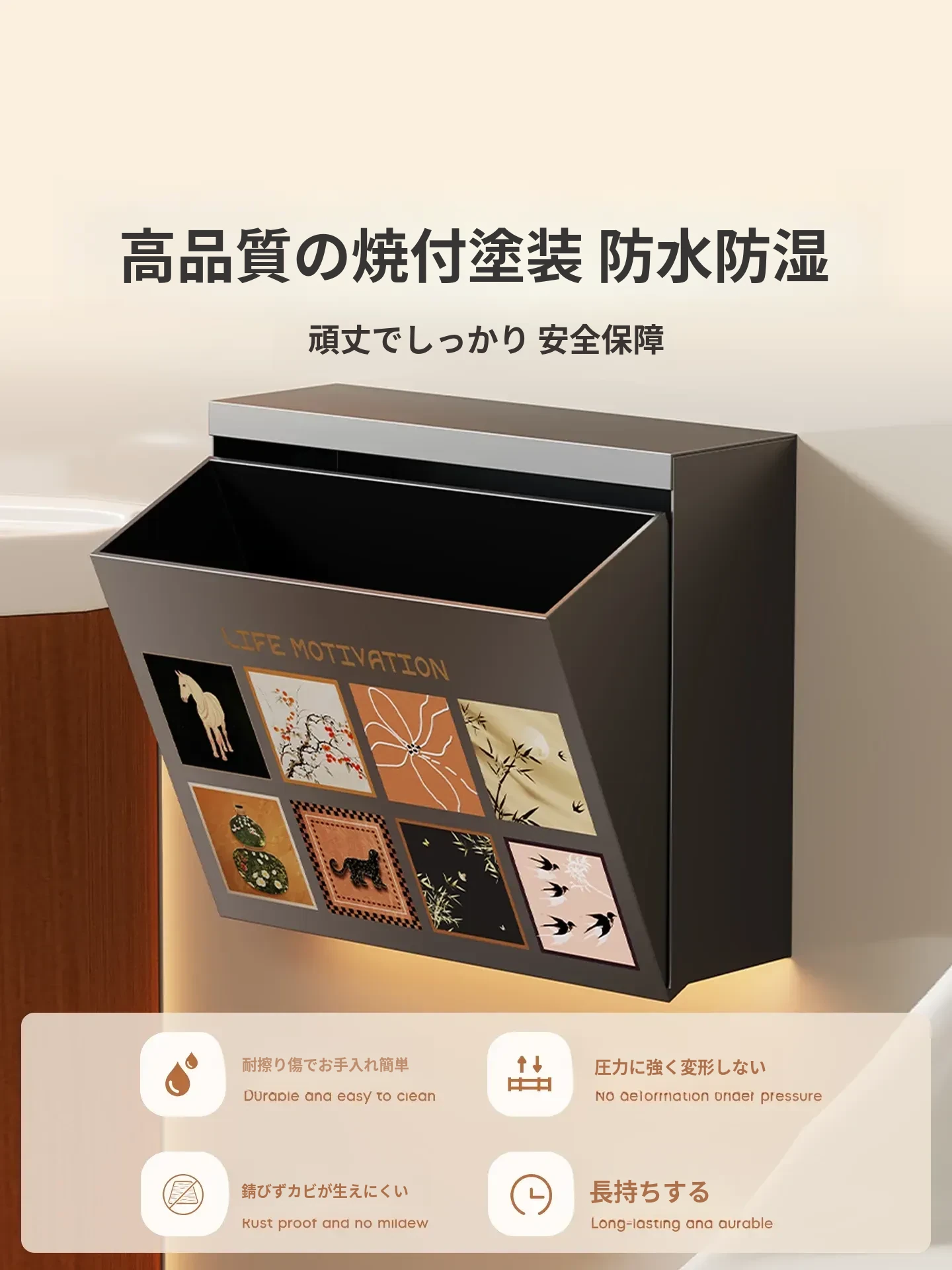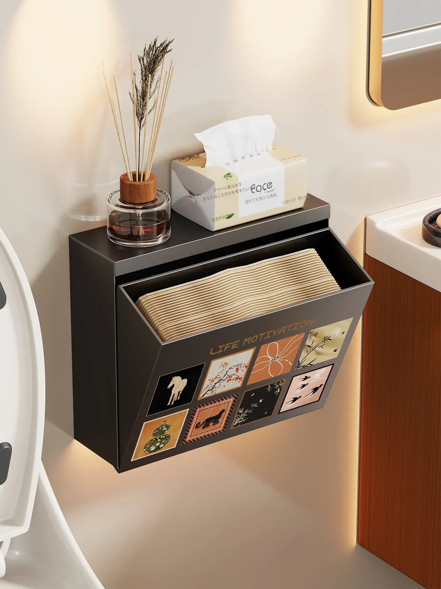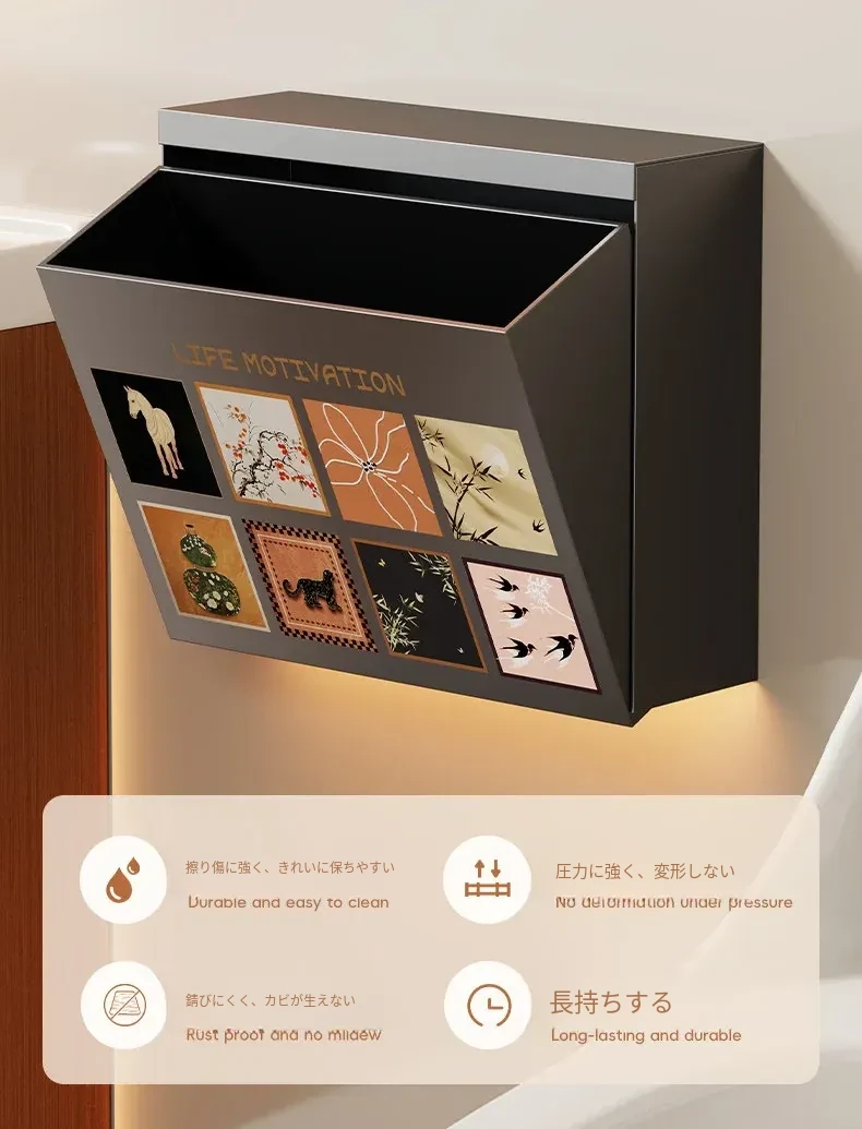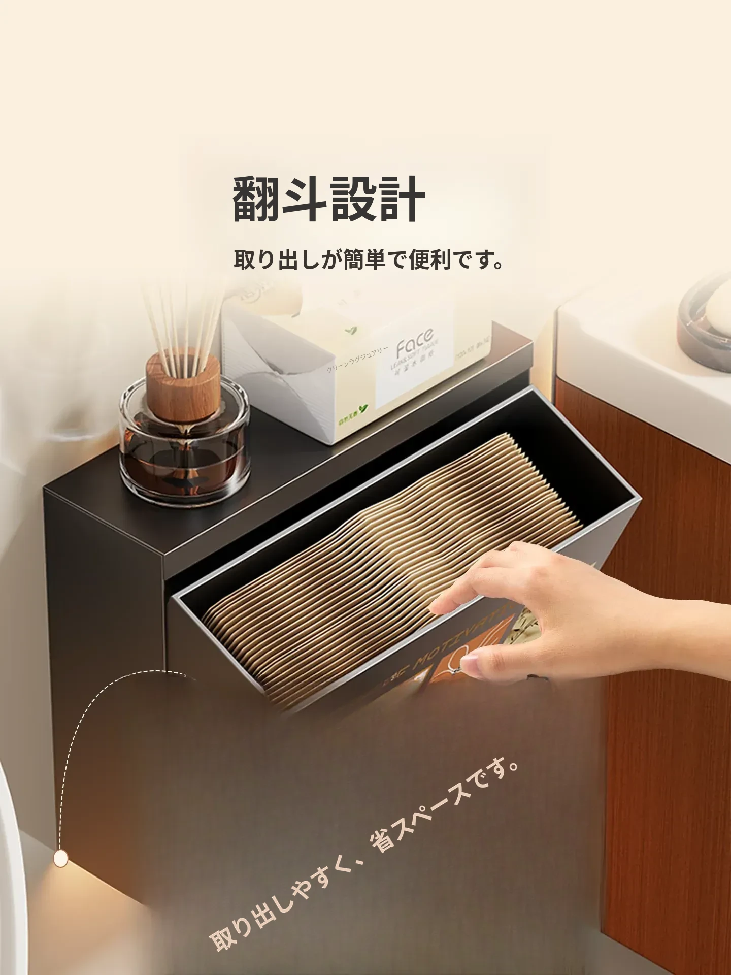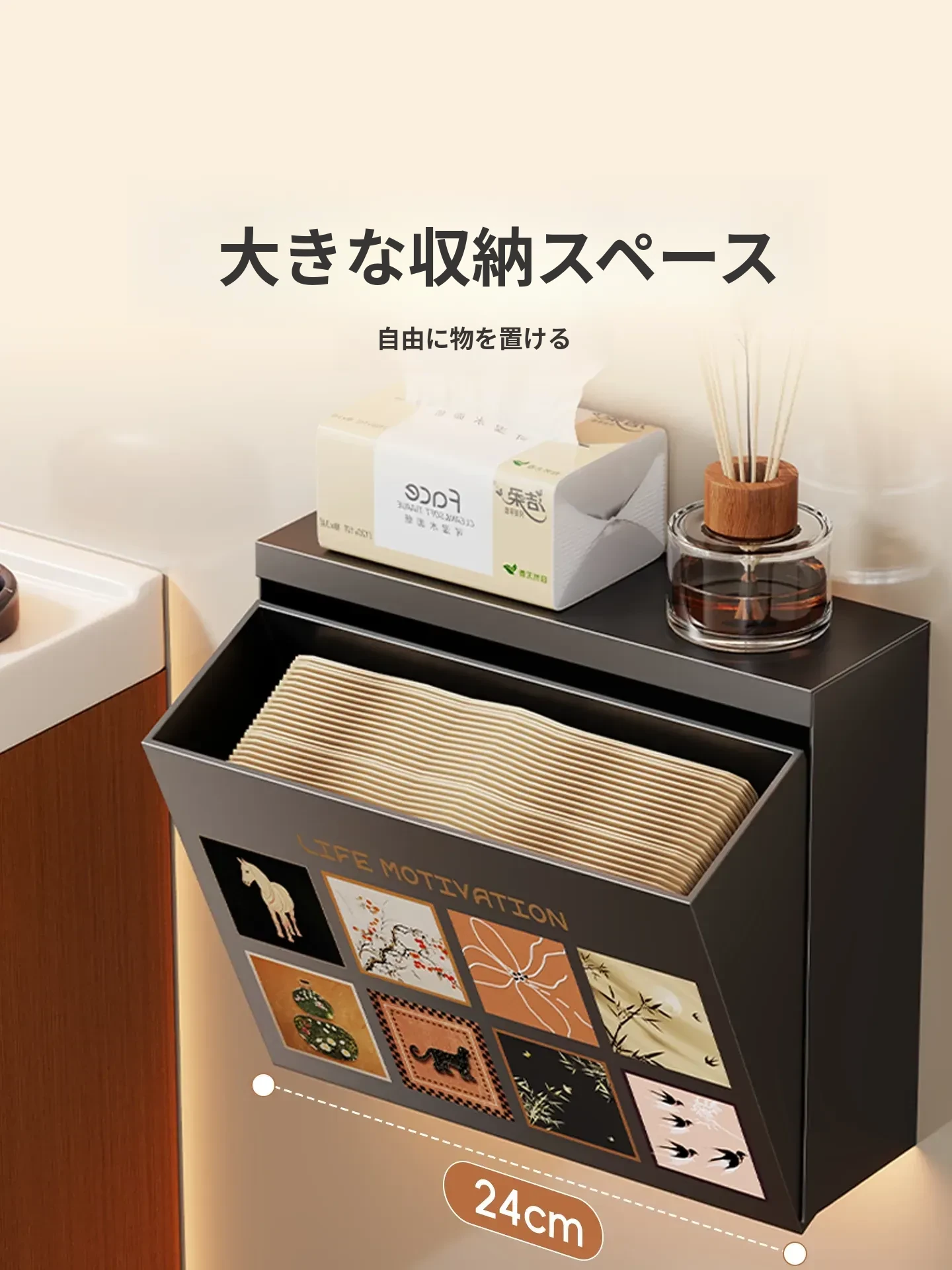 壁掛け収納ボックス - 穴を開けずに取り付け可能!バスルームの壁にぴったりな防水・防湿のティッシュ整理ボックスで、スッキリとした空間を実現!使いやすさ抜群で、あなたの生活をもっと便利にします。