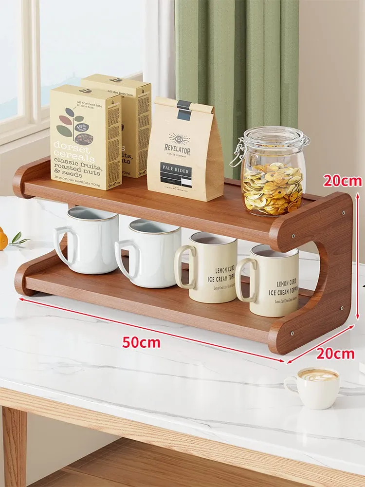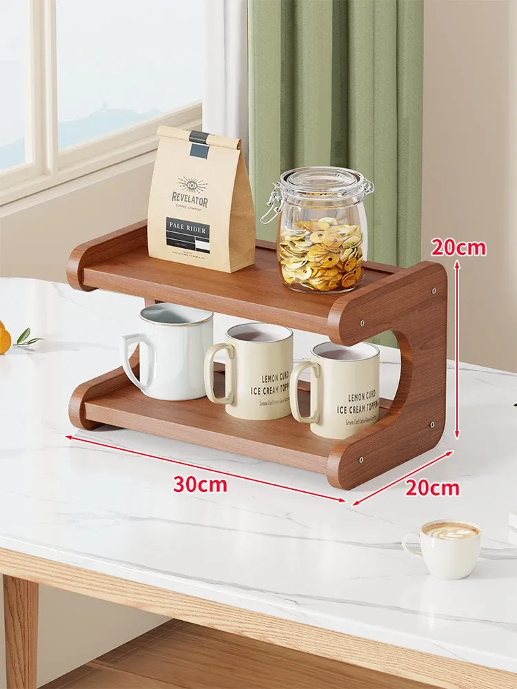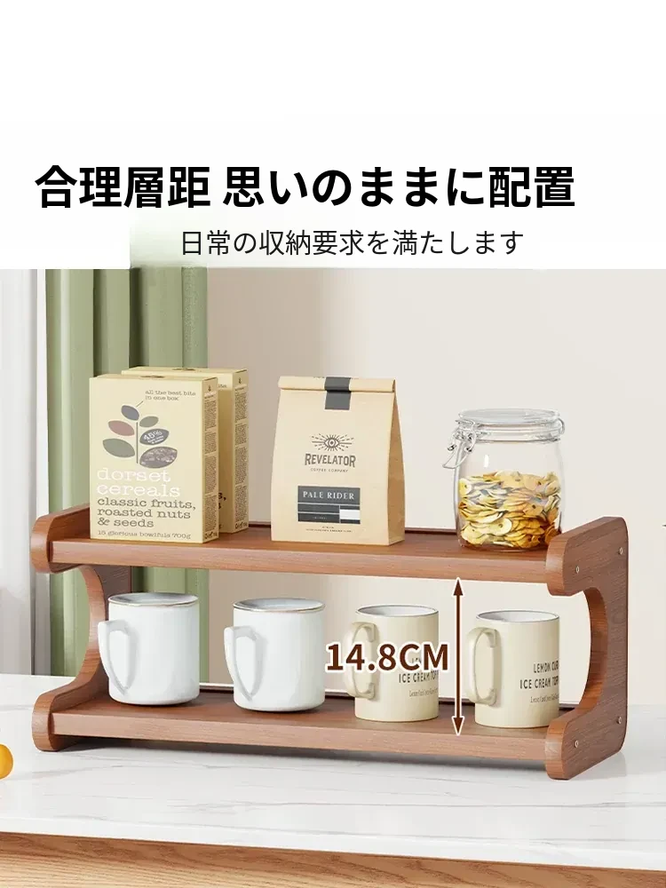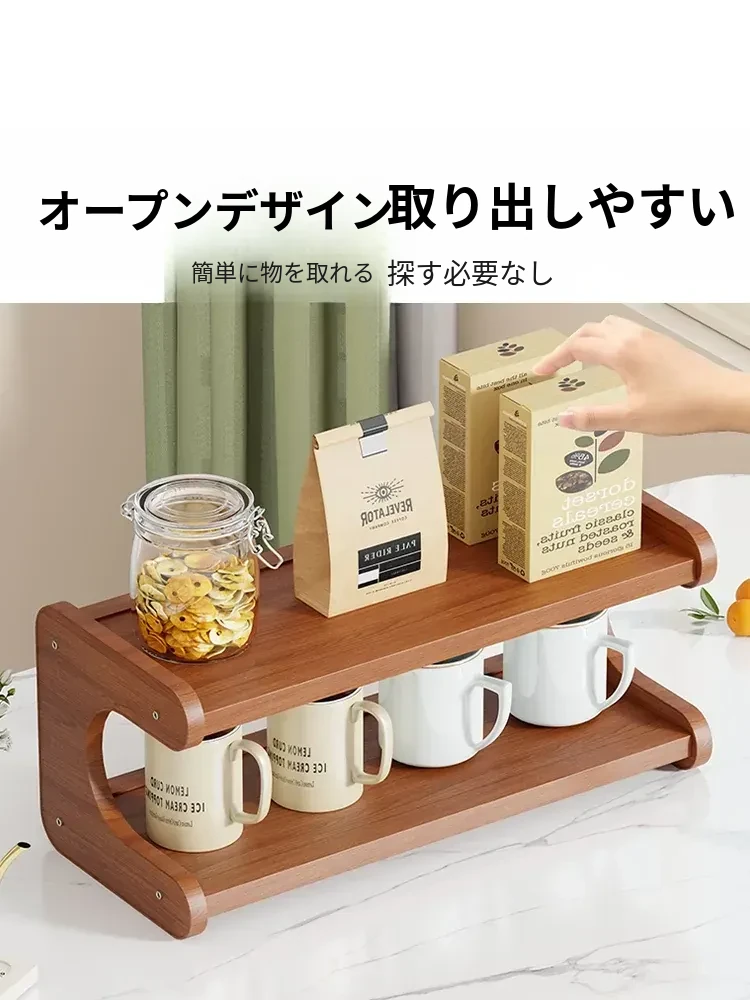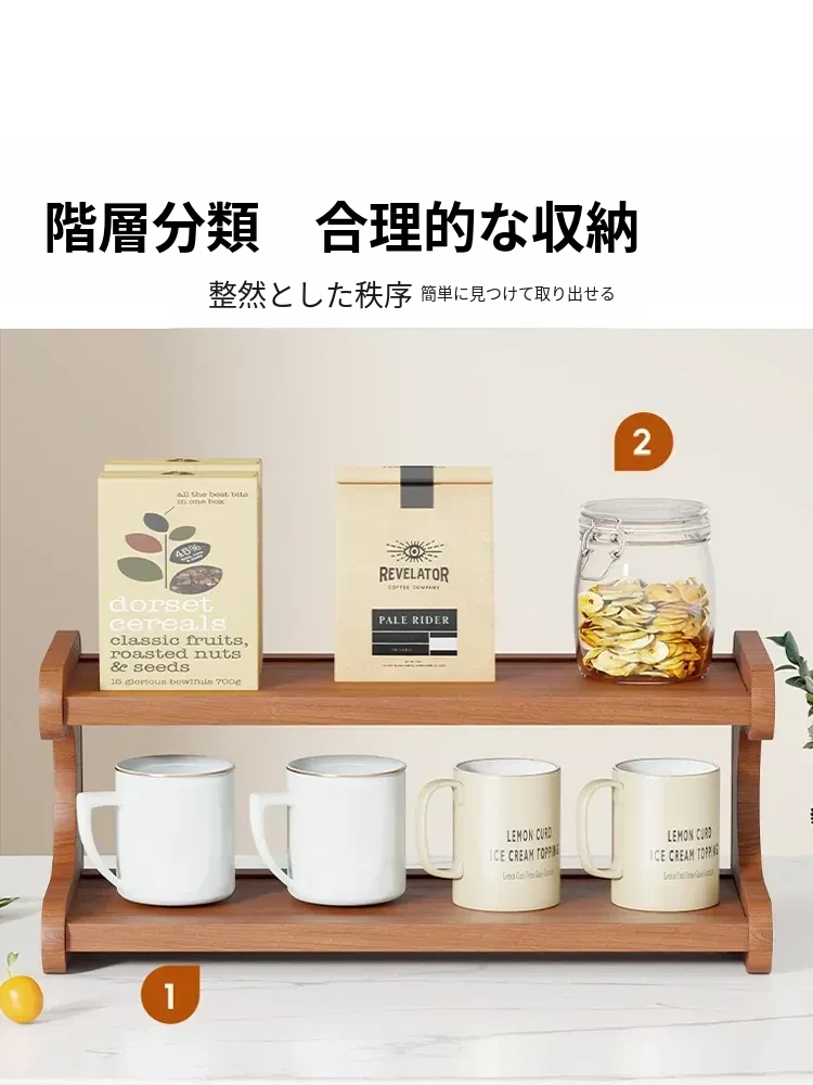 木製デスクオーガナイザー - おしゃれな多層収納ラック!家庭用テーブル上に最適なティーカップディスプレイ&キッチン調味料整理棚。スペースを有効活用して、スタイリッシュな空間を演出します!