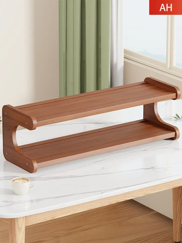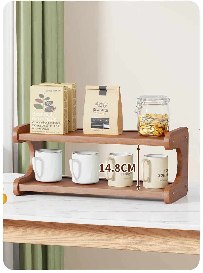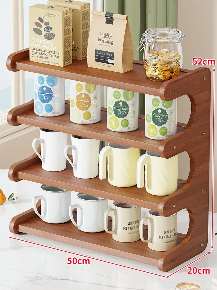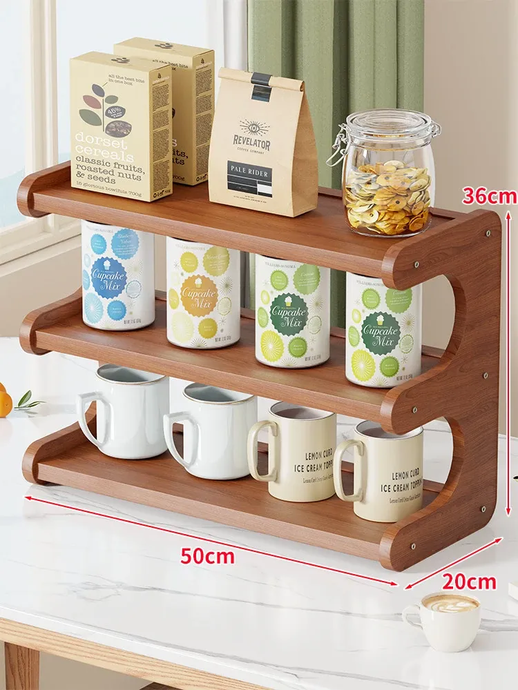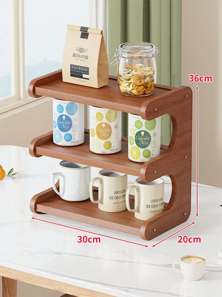 木製デスクオーガナイザー - おしゃれな多層収納ラック!家庭用テーブル上に最適なティーカップディスプレイ&キッチン調味料整理棚。スペースを有効活用して、スタイリッシュな空間を演出します!