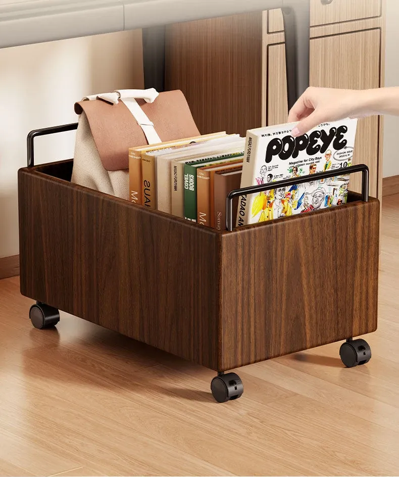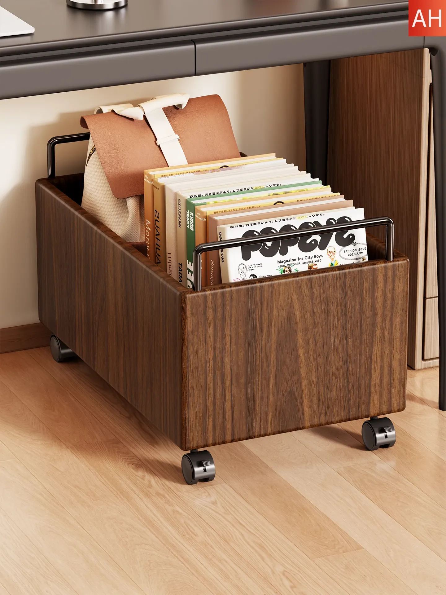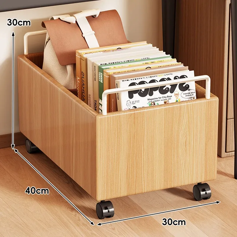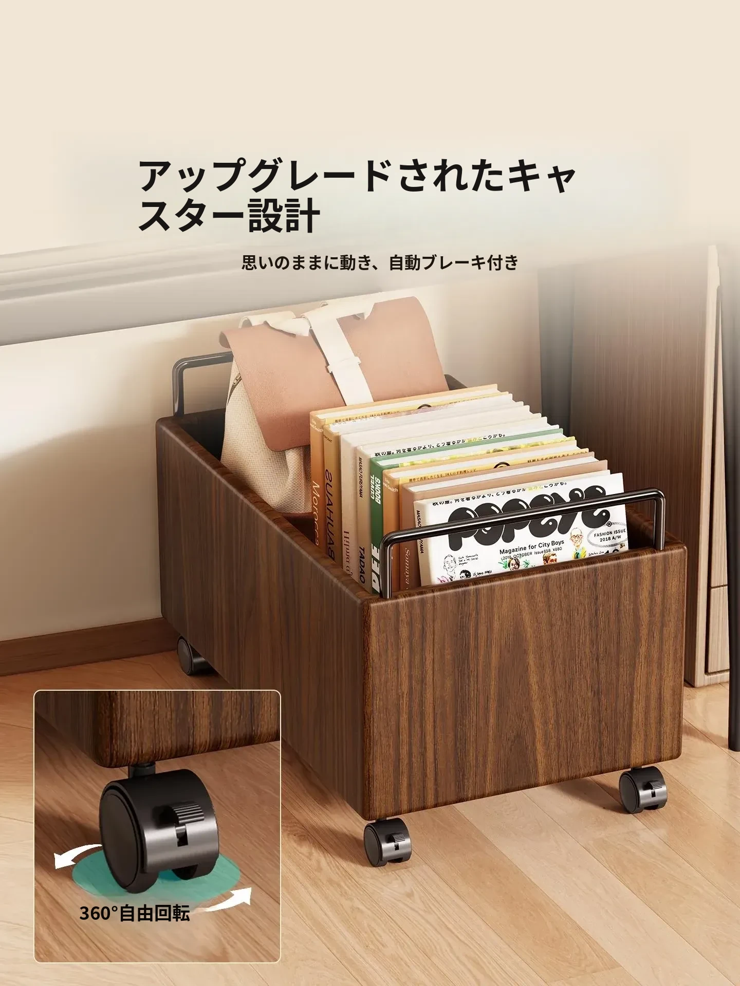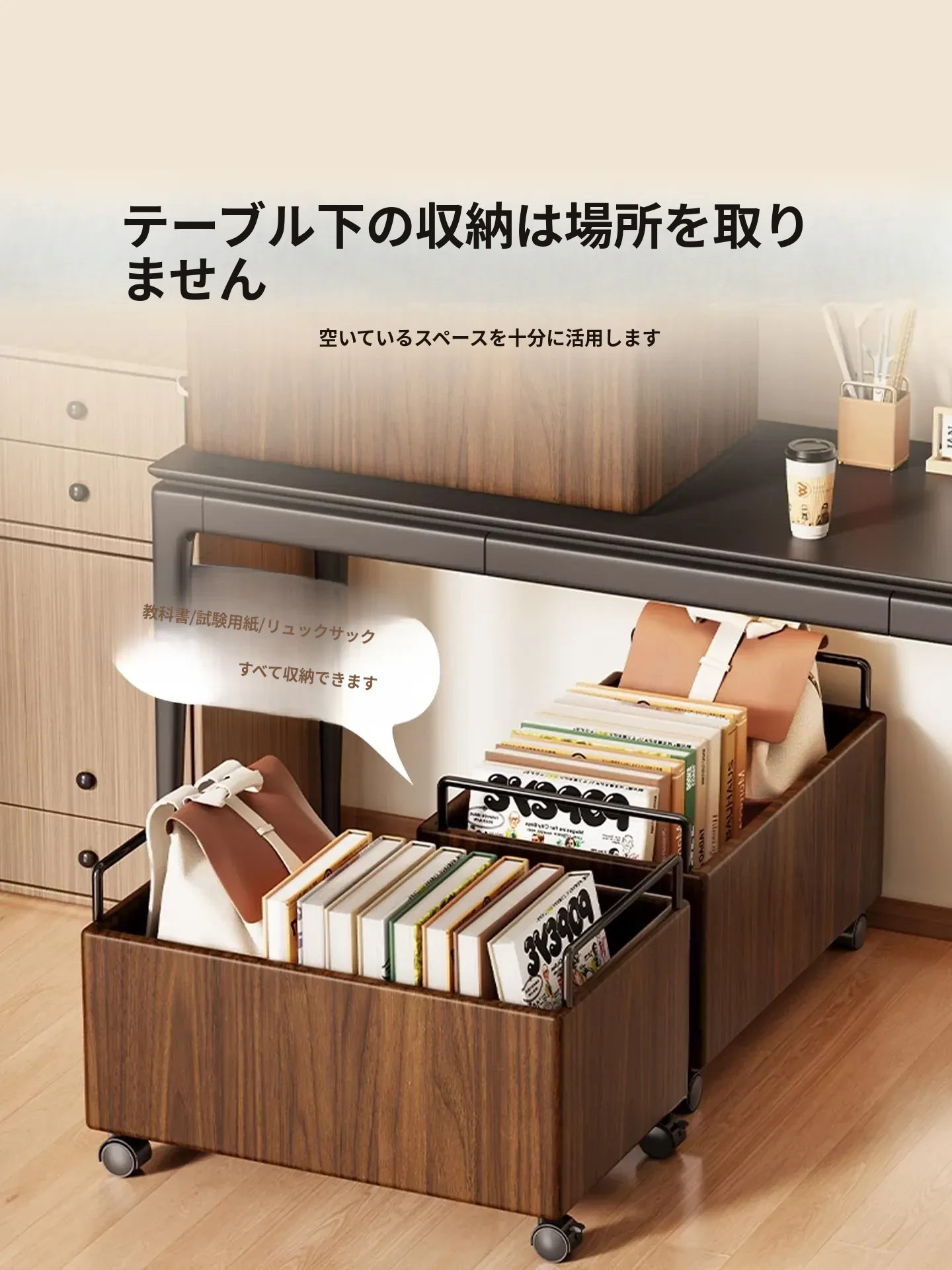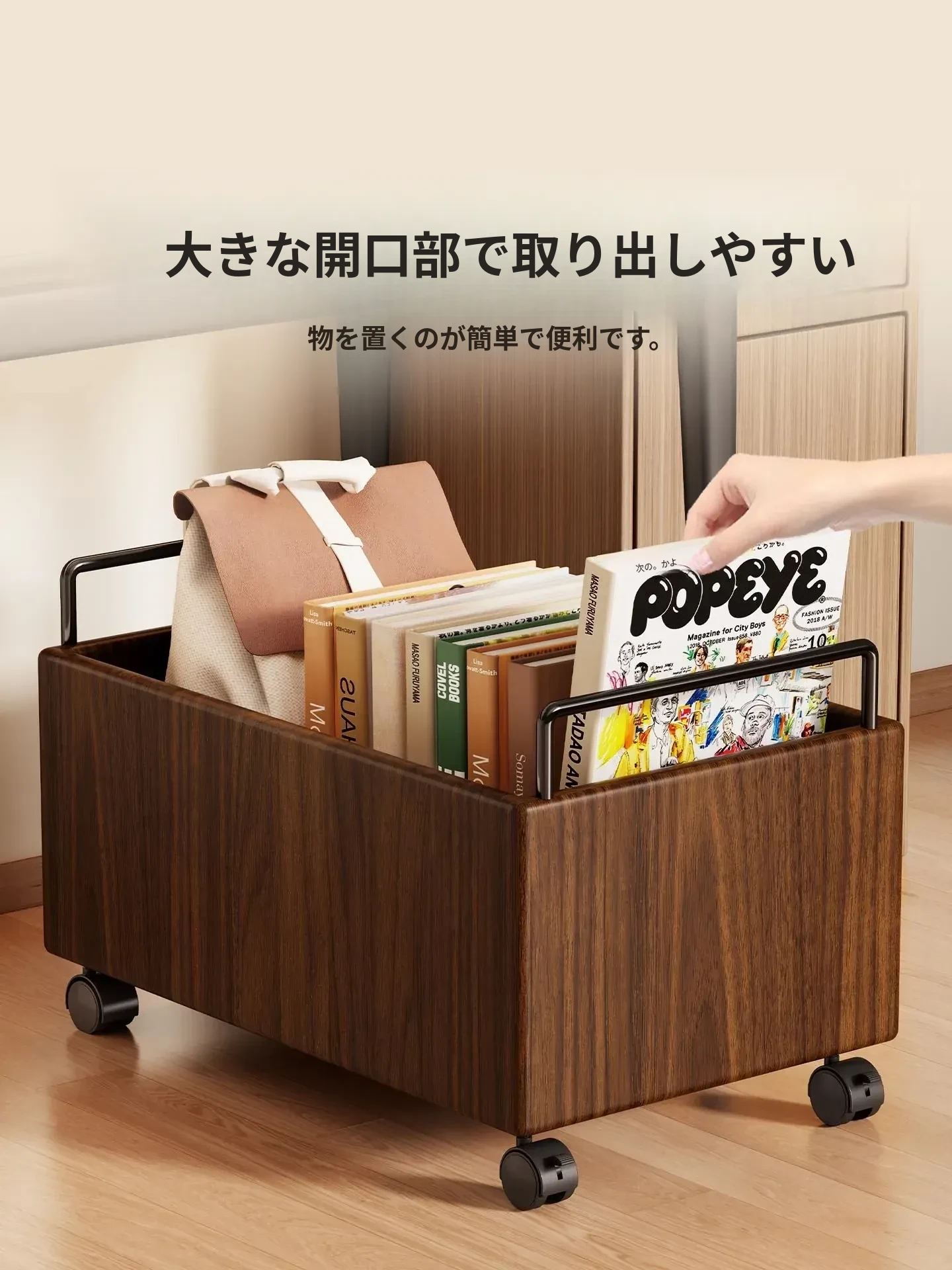 実木製の書籍収納ラック付き小型キャリー、学生寮のデスク下にぴったり!移動が簡単なキャスター付きで、教科書やお菓子の整理整頓に最適なシンプルな収納ソリューション!
