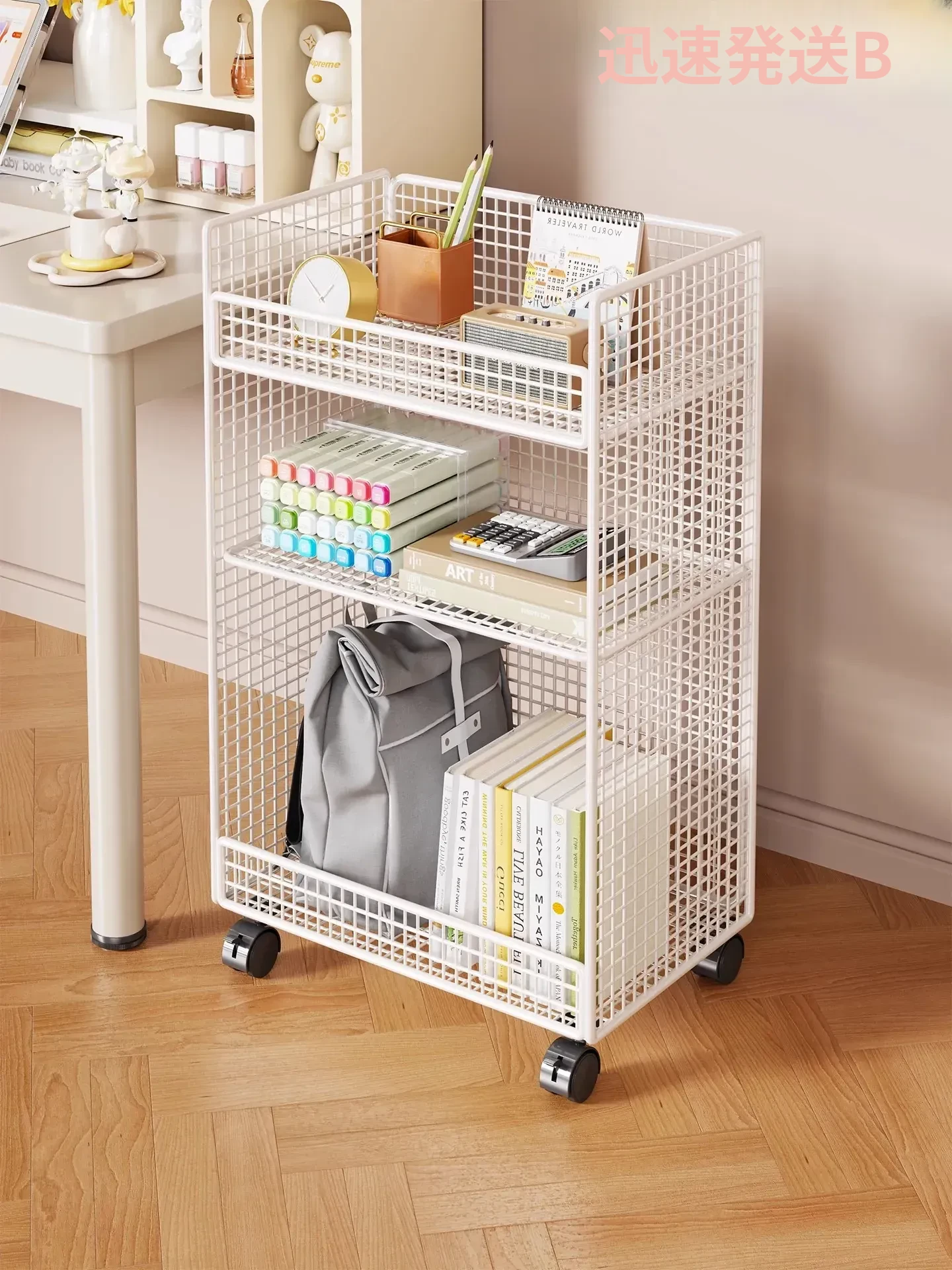 キャスター付きデスク下収納ラック - 学生向けのフロアブックシェルフ、教室整理に最適な多層本収納ラック!スペースを有効活用し、すっきりとした学習環境を実現します!