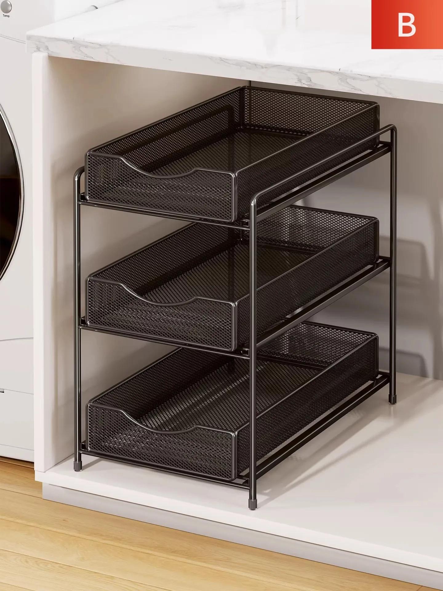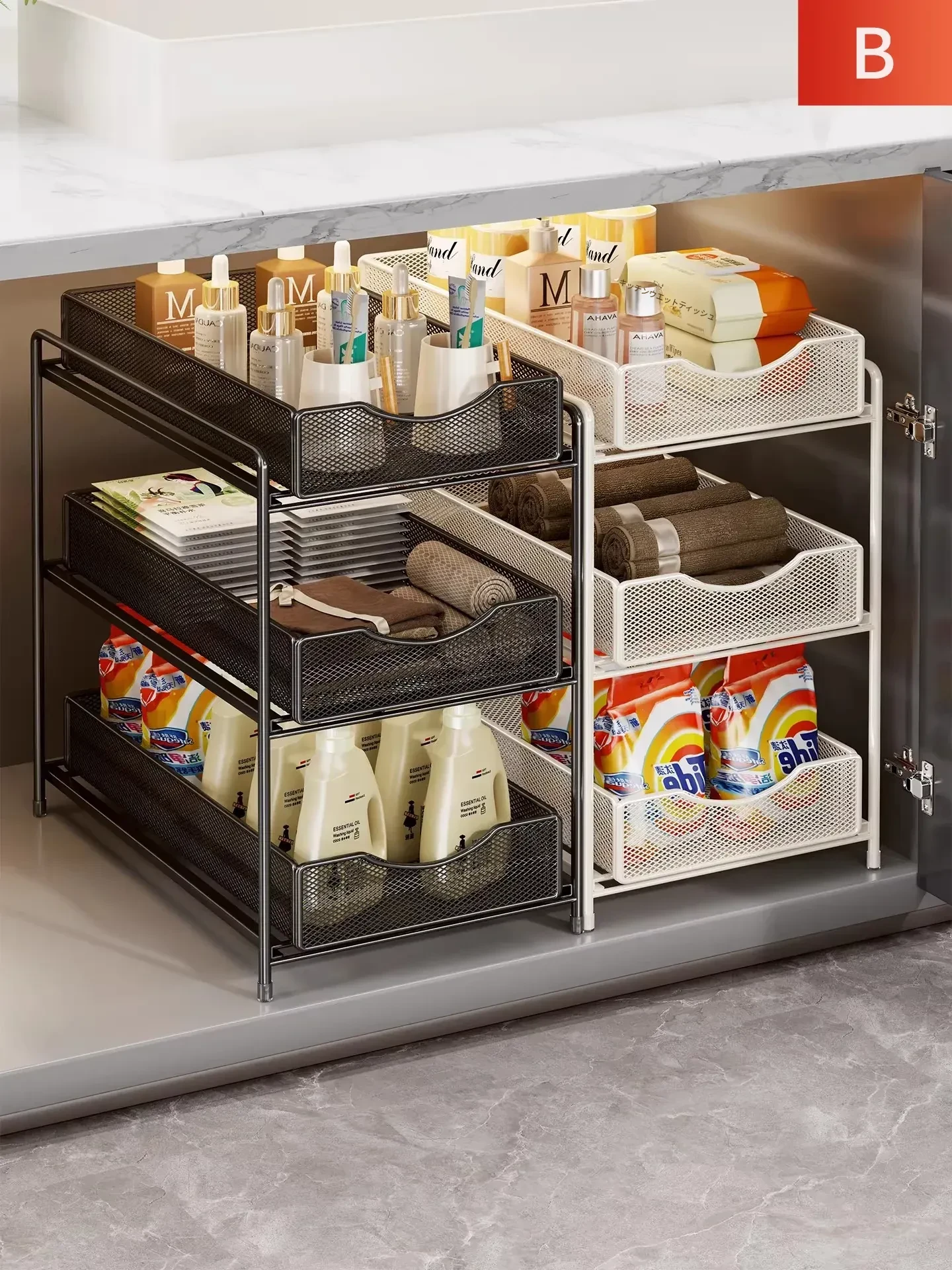下水槽用収納ラック|バスルームやトイレに最適な洗面台収納|便利なバスケット&スライドバスケット|スペースを有効活用するマルチ収納棚