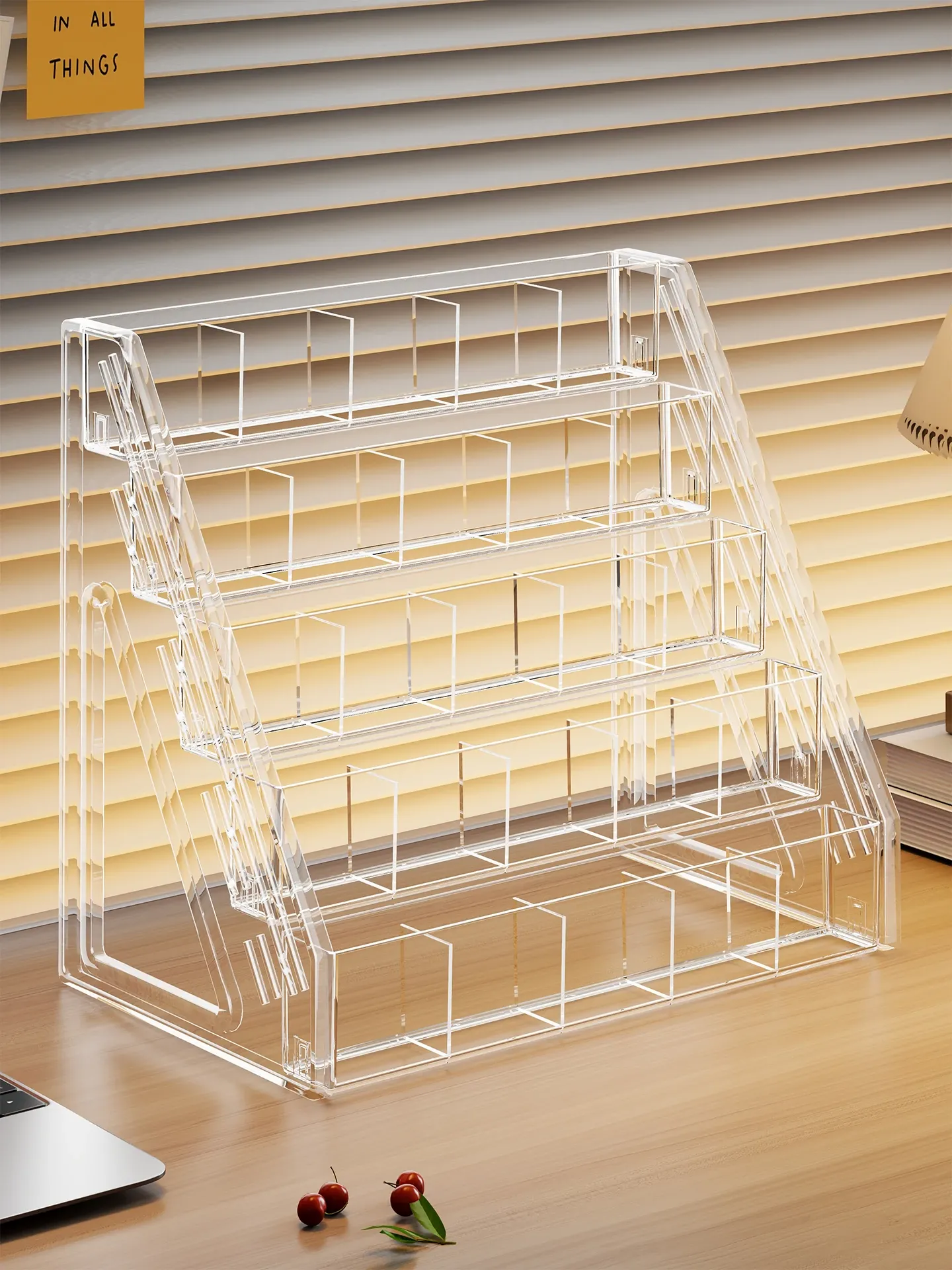玄関用アクリルカップスタンド - テーブル上のコーヒーカップや化粧品の整理に最適!おしゃれで機能的なデザインで、どんなインテリアにもマッチします。あなたの生活空間をスッキリと美しく演出!