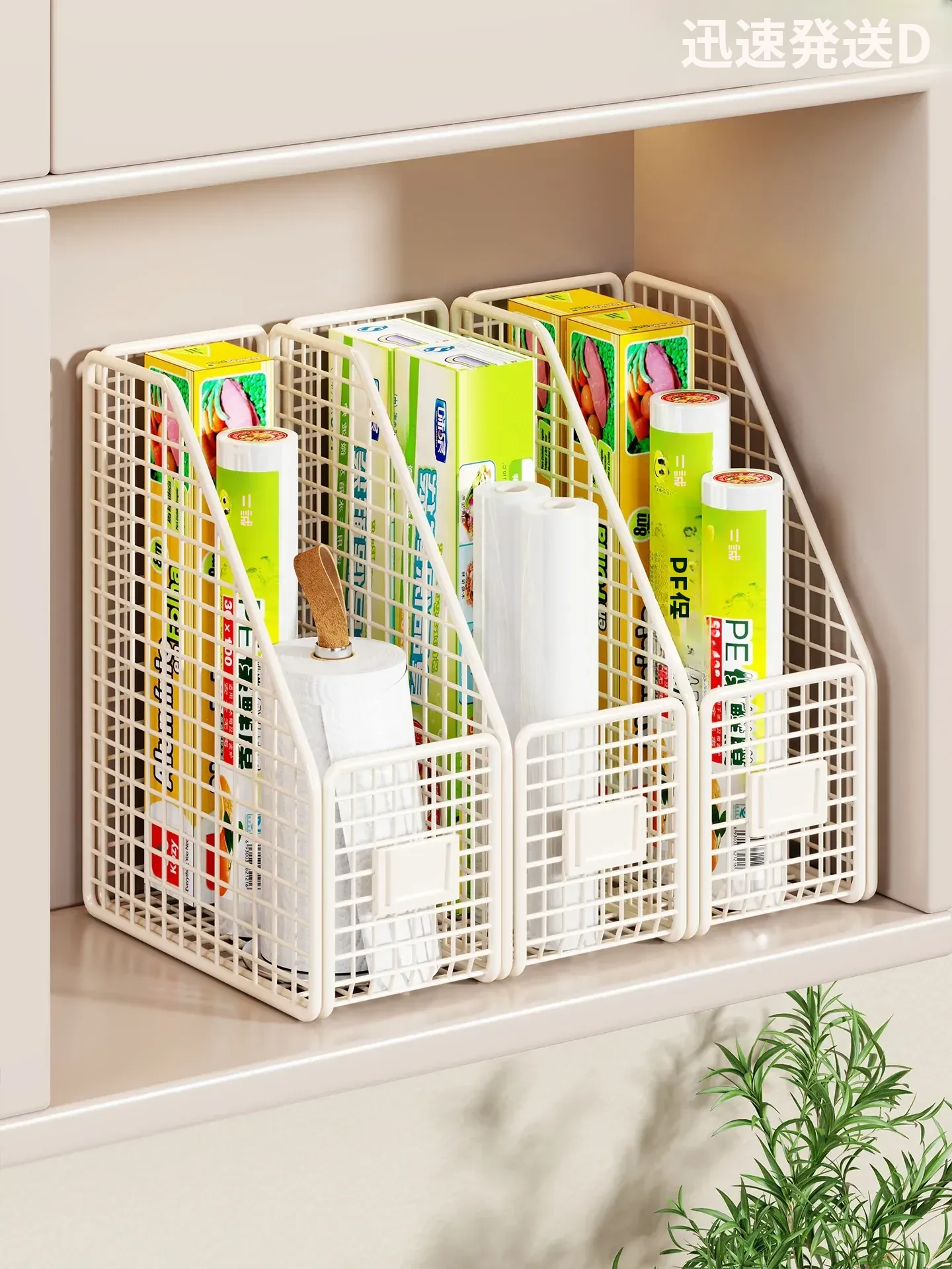 キッチン整理に最適!保鮮フィルム収納ラック - 家庭用キャビネットや台所のためのプラスチック袋整理の必需品!ネット状のデザインで、保鮮袋もすっきり収納できます。