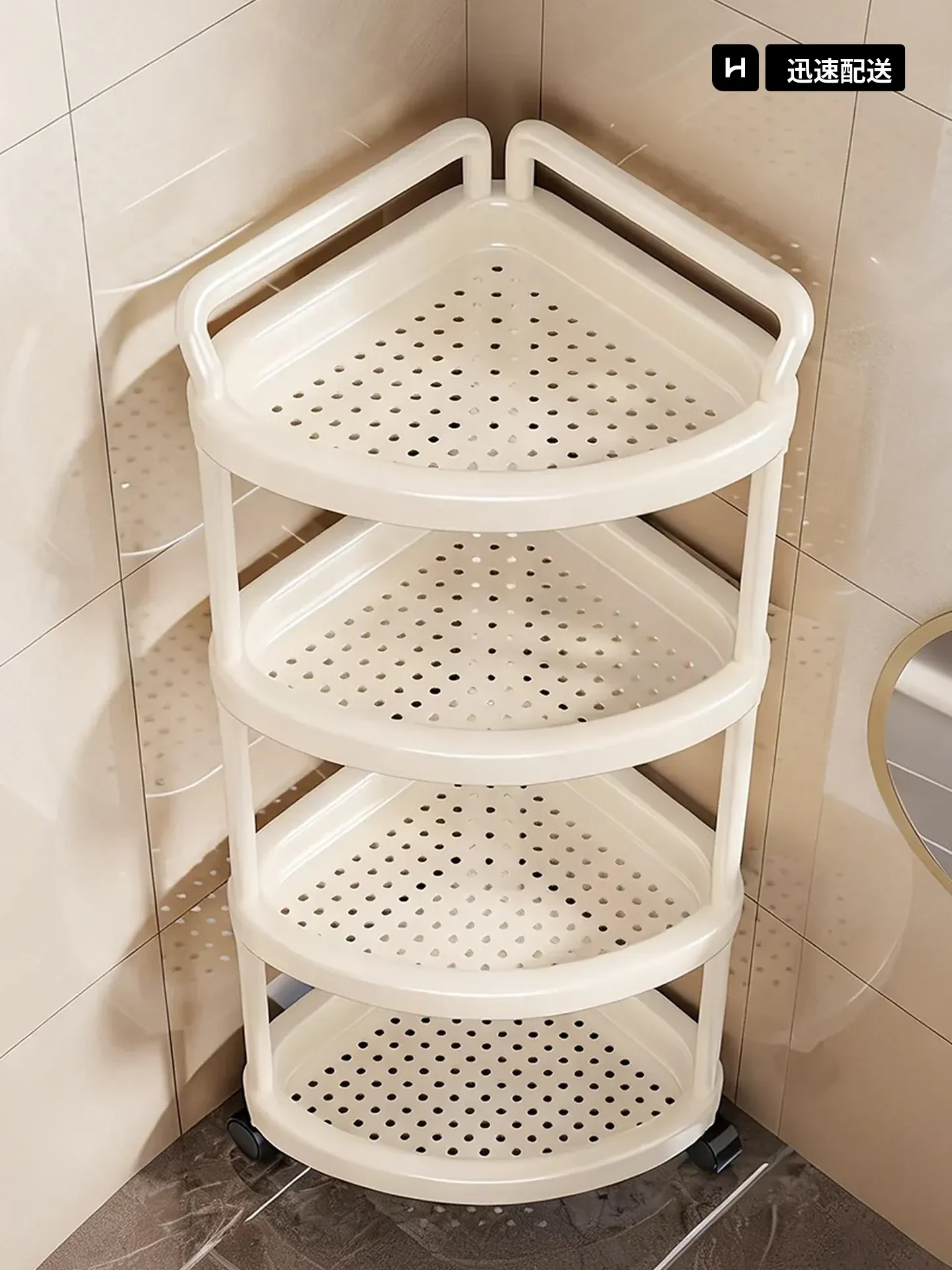 バスルーム用三角形マルチレイヤー移動式コーナーラック - 洗面所やトイレのスペースを有効活用!お風呂場での収納に最適なスタイリッシュなデザイン!